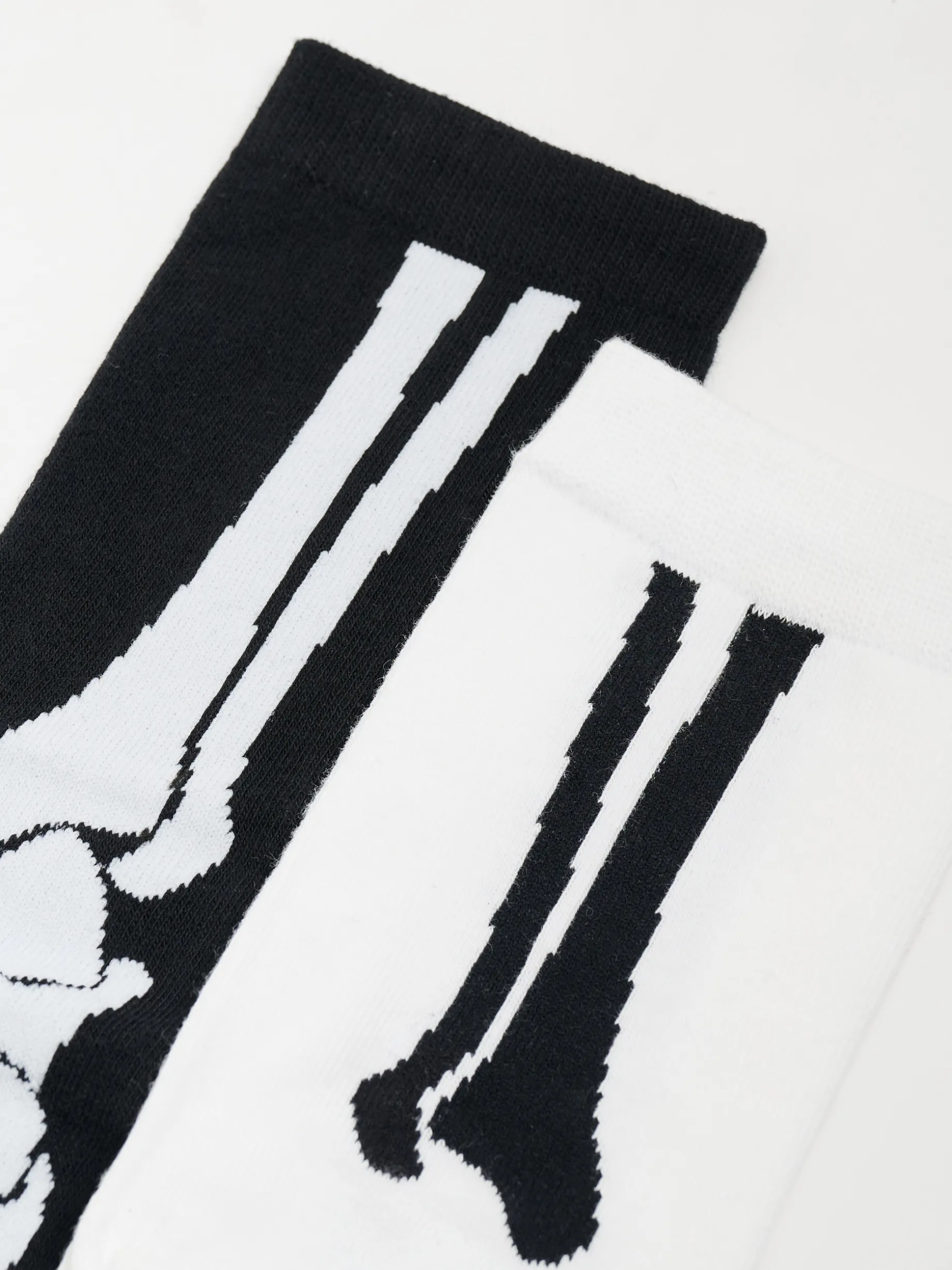 Zestaw dwóch par męskich skarpet uszytych z mieszanki dzianin z kontrastową grafiką przypominającą rentgena stopy. dzianina z dodatkiem elastycznych włókien dłuższy, prosty krój nadruk z motywem Halloween