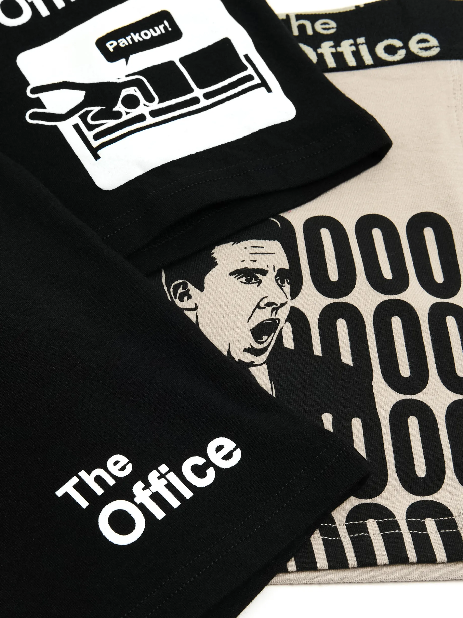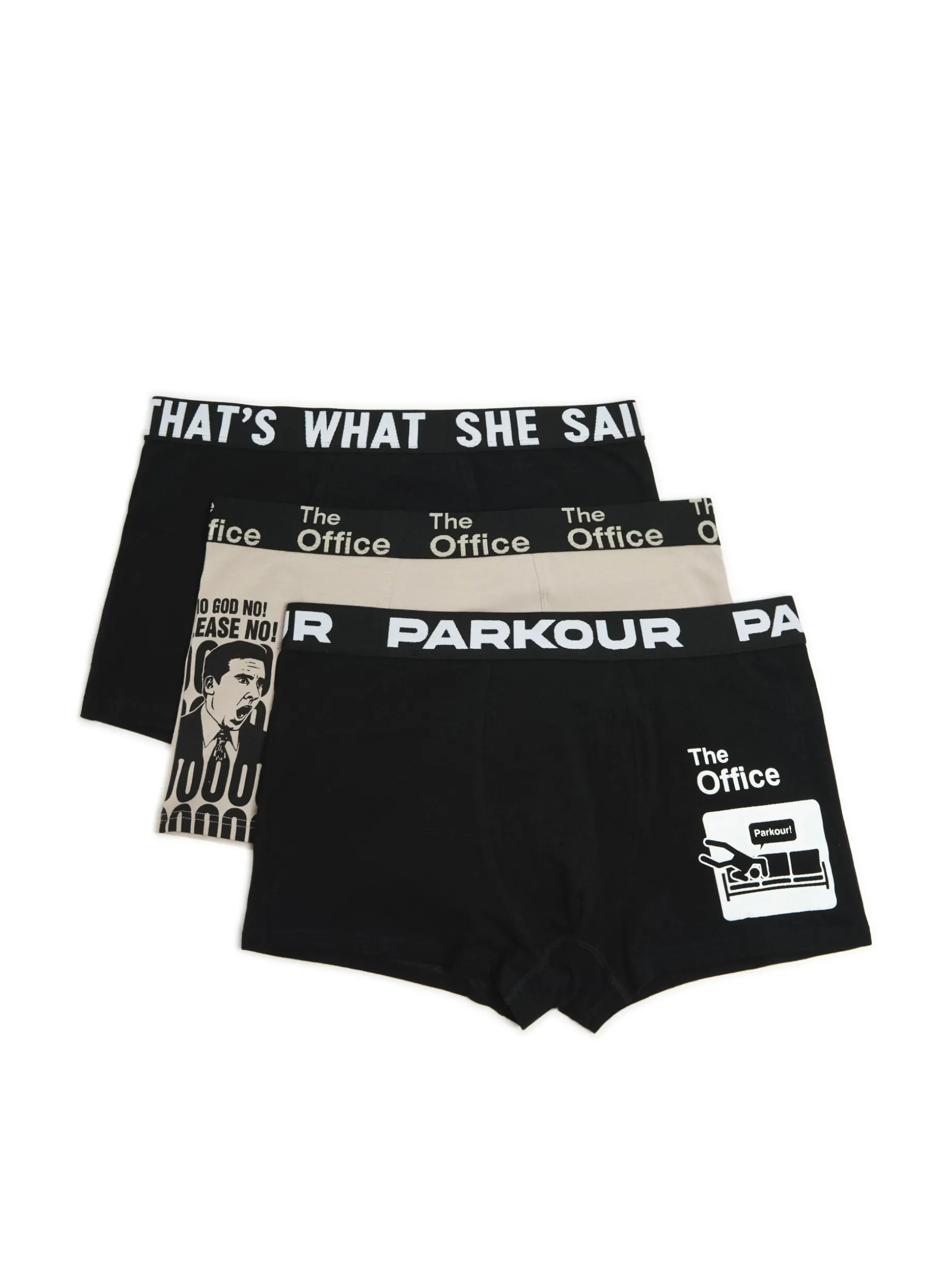 Trójpak majtek typu bokserki, uszytych z bawełnianego materiału z dodatkiem elastycznych włókien. Idealny zestaw dla fanów serialu The Office! bawełna z dodatkiem elastycznych włókien regularny stan oryginalny print © Universal Television LLC. All RIghts Reserved.