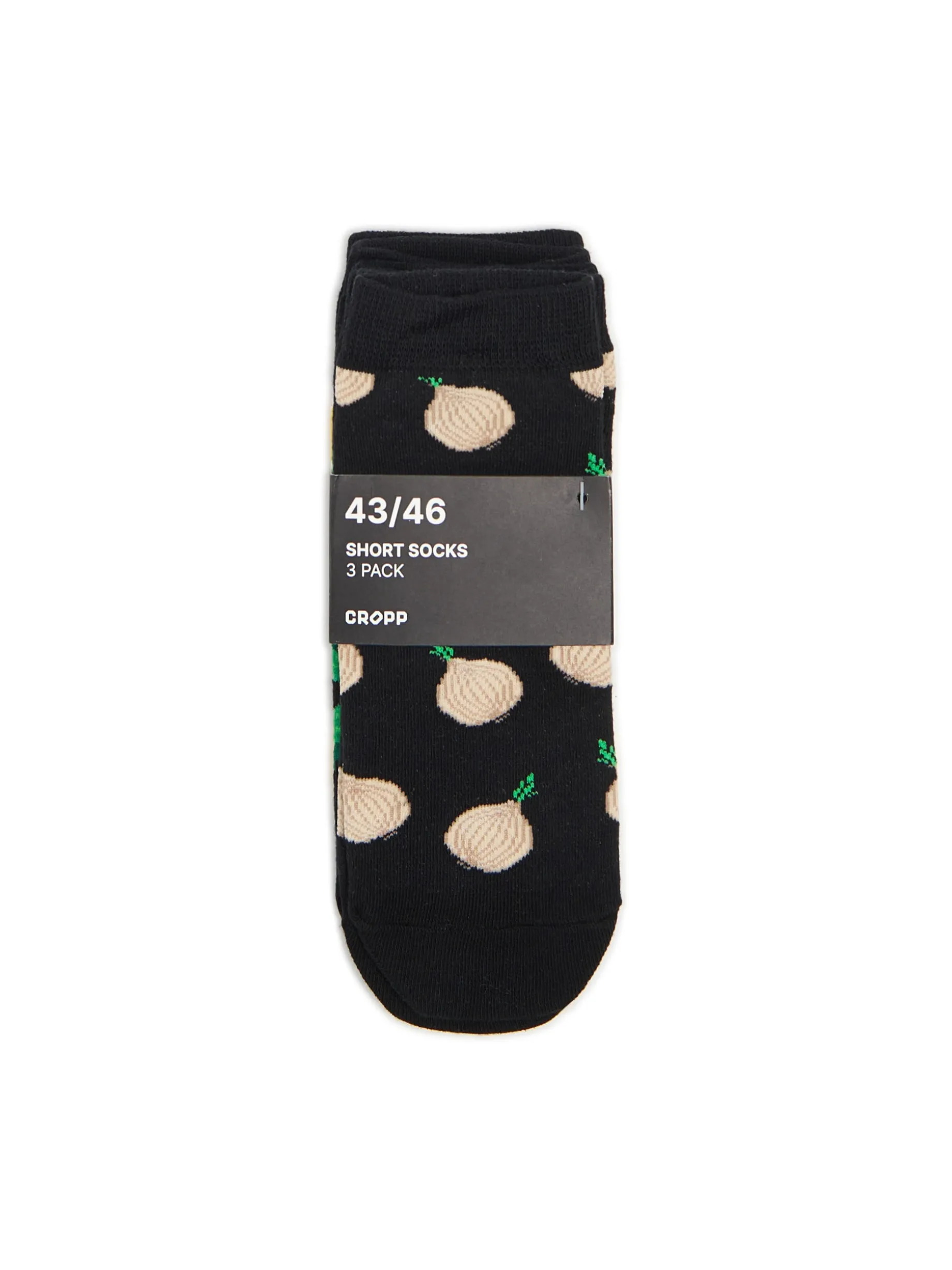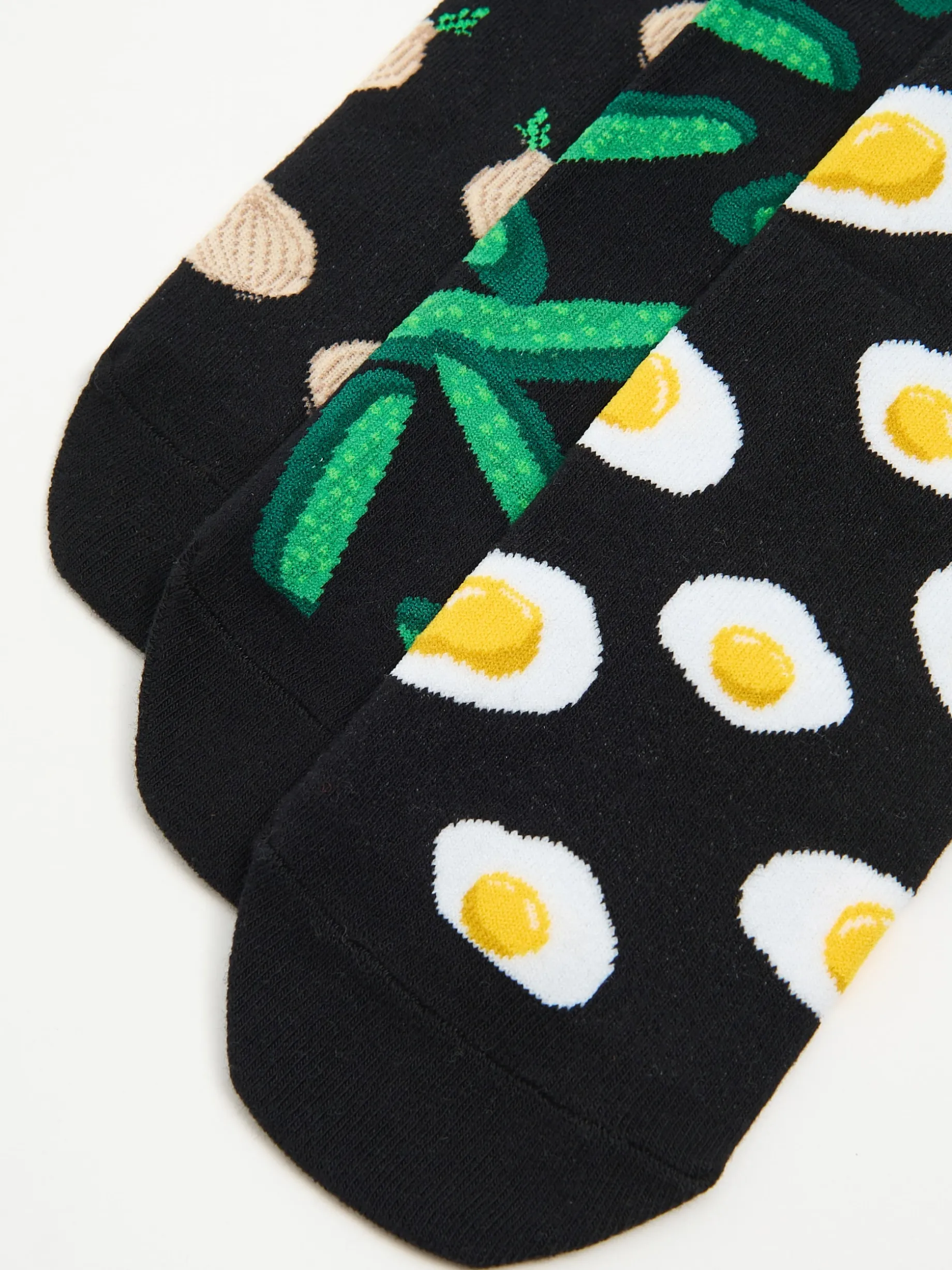 Zestaw 3 par męskich skarpet uszytych z mieszanki dzianin z bawełną w kolorze czarnym i oryginalnym printem dla prawdziwych foodies. dzianina z dodatkiem elastycznych włókien krótki krój nadruk all over