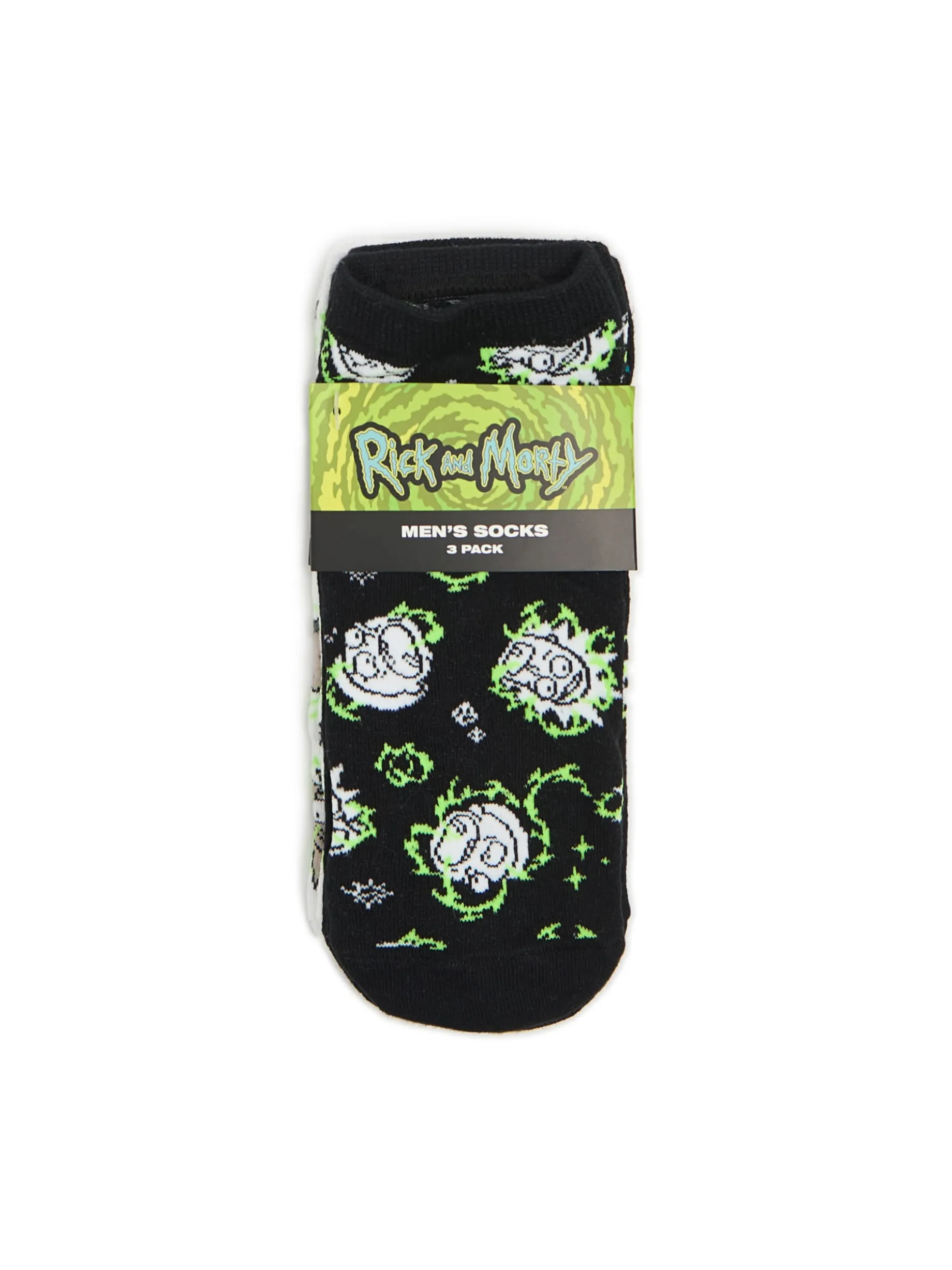 Zestaw 3 par męskich skarpet typu stopki, uszytych z mieszanki dzianin w stonowanych kolorach. Na każdej licencjonowany nadruk z serii Rick i Morty. Miksuj dowolnie! dzianinowy materiał z bawełną krótki krój nadruk z bohaterami serialu Rick and Morty RICK AND MORTY and all related characters and elements © & TM Cartoon Network. WB SHIELD: © & TM WBEI. (s24)