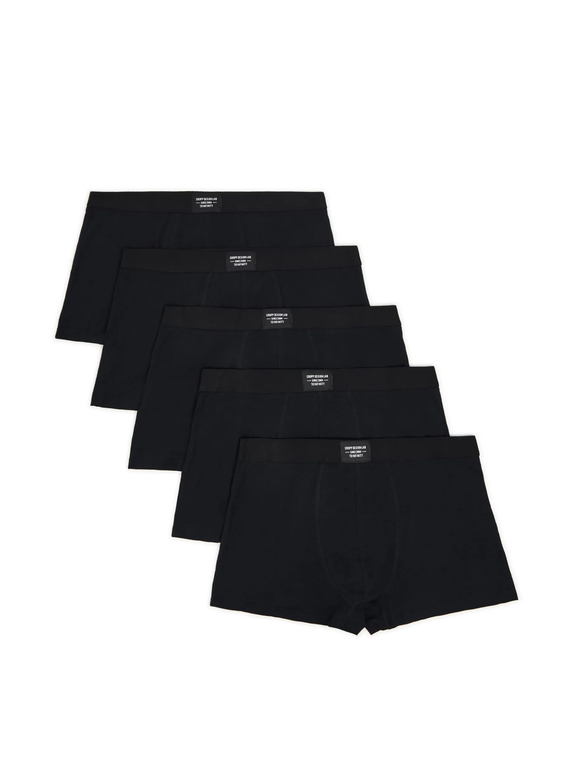 Pięciopak męskich bokserek, uszytych z dzianiny o bardzo wysokiej zawartości bawełny z dodatkiem elastycznych włókien.