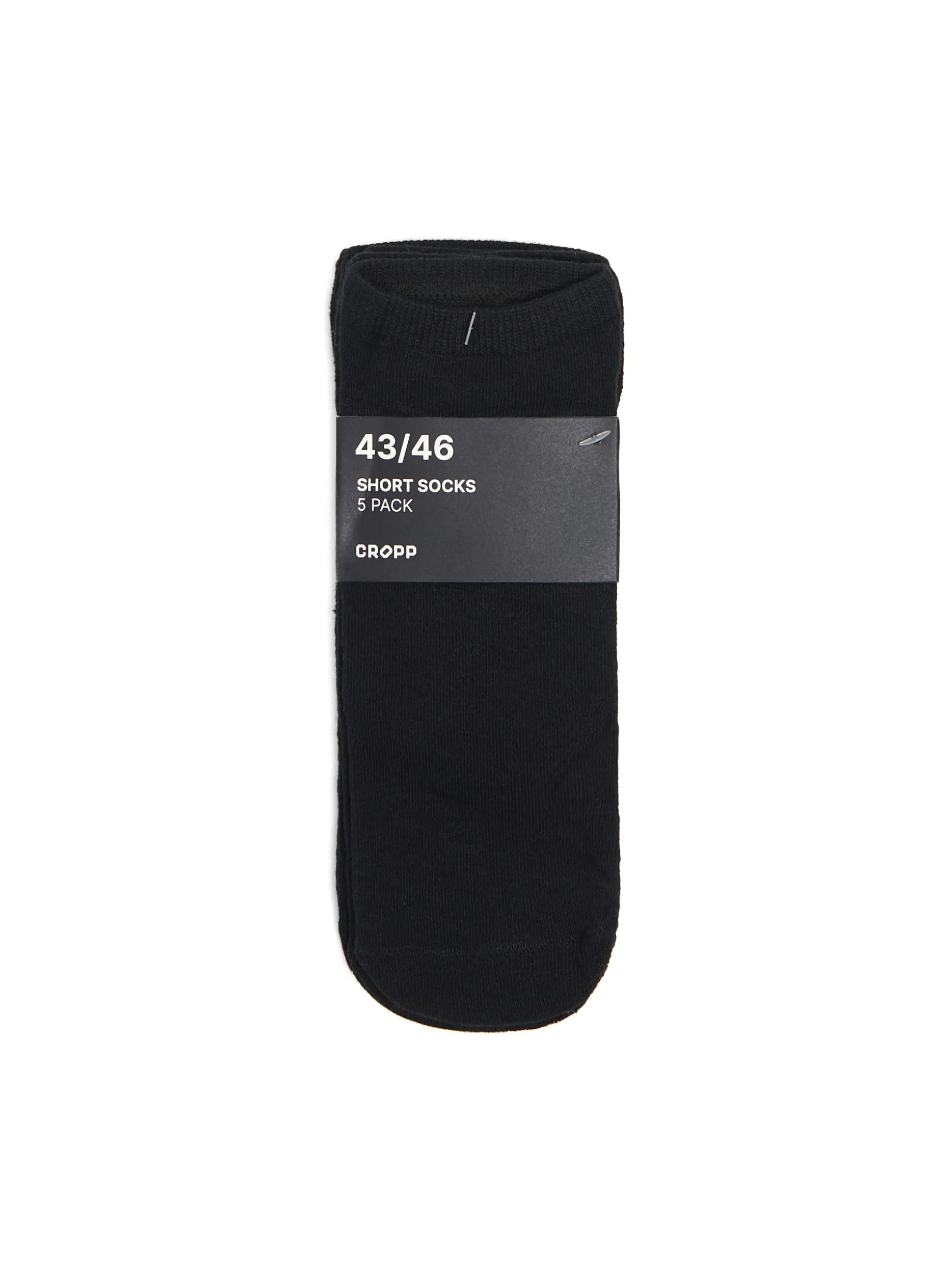 Pięciopak męskich krótkich skarpetek w kolorze czarnym. Uszyte z dzianiny o wysokiej zawartości bawełny.