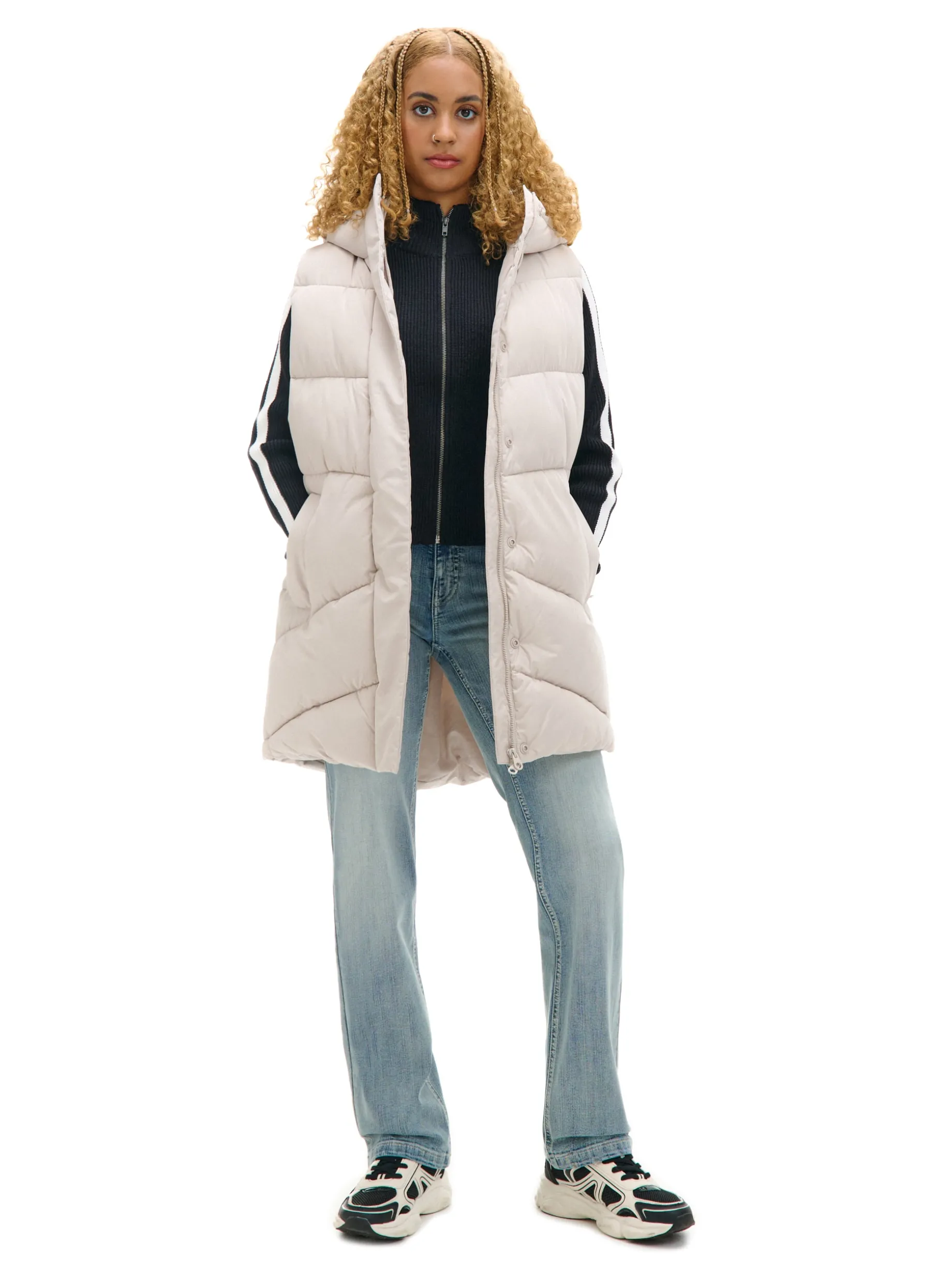 Kamizelka damska typu puffer uszyta z miękkiej i trwałej tkaniny. Lekkie ocieplenie wewnątrz otuli Cię w chłodne wieczory. Sprawdź! pikowana kamizelka o regularnym kroju uszyta z gładkiej tkaniny wewnątrz lekkie ocieplenie i podszewka zapięcie na zamek i zatrzaski ukryte pod listwą praktyczny kaptur, regulowany gumką ze stoperami wysoka stójka kieszenie boczne z zamkami