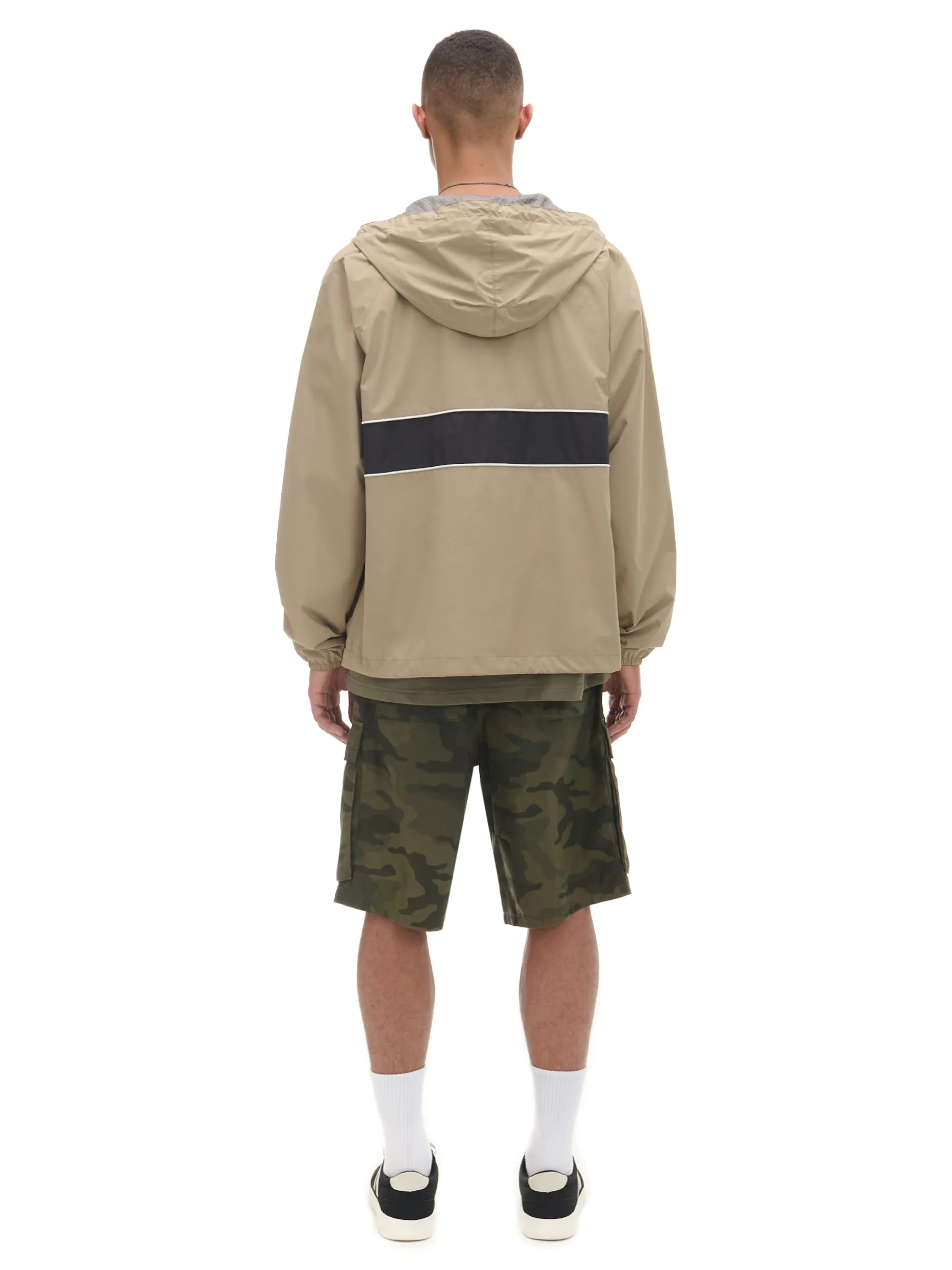 Męska lekka kurtka z kapturem, uszyta z gładkiej beżowek tkaniny. zapięcie na suwak kaptur regulowany za pomocą elastycznych gumek ze stoperami długie rękawy zakończone ściączem z wszytą elastyczną gumką mały nadruk na piersi dolny brzeg regulowany za pomocą elastycznych gumek ze stoperami dwie kieszenie zewnętrzne wewnętrzna kieszeń zapinana na rzep podszewka z lekkiej siateczki mesh Wzrost modela: 185 cm PROTECTION LEVEL 1rn rnKurtka uszyta z tkaniny, której właściwości zapewnią Ci ochronę przed wiatrem. Możesz ją nosić jako lekkie okrycie wierzchnie i łączyć z cieplejszymi ubraniami.
