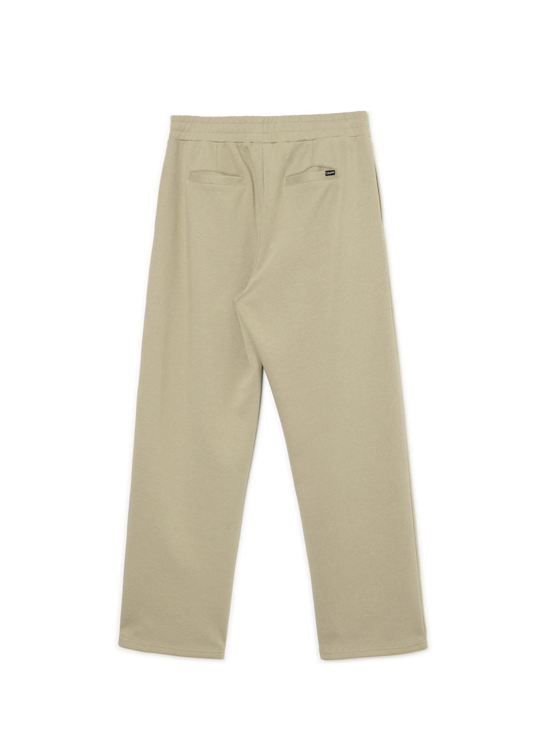 Męskie spodnie o kroju comfort, uszyte z dzianiny o wysokiej zawartości bawełny. Podwójny dżersej sprawia, że spodnie są trwałe i bardzo wygodne. Spróbuj! dzianinowy materiał z bawełną wygodny krój comfort elastyczna gumka w pasie dwie kieszenie po bokach listewkowe kieszenie z tyłu modelujące zakładki z przodu efekt sprania na całości