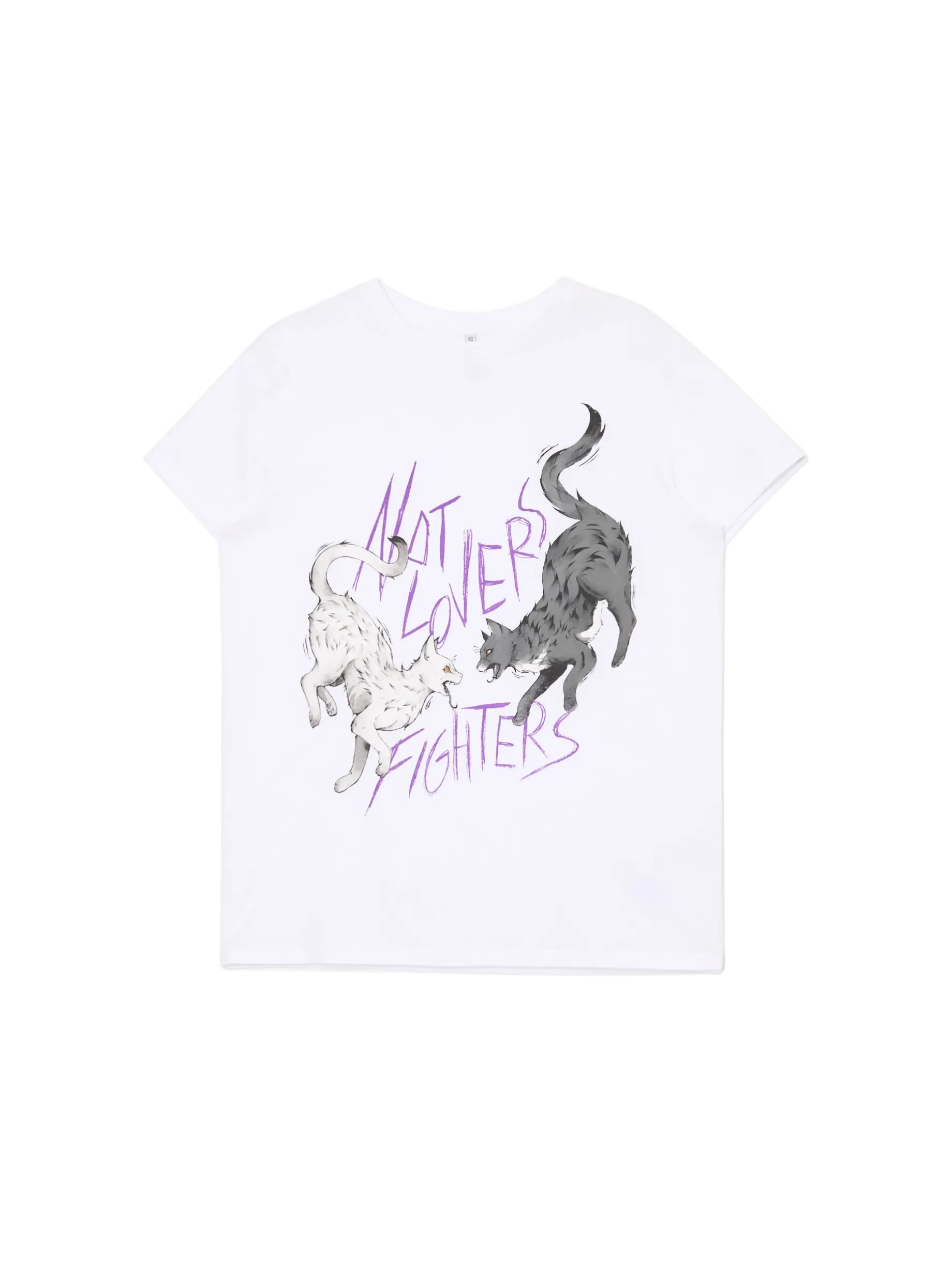 Damski T-shirt z krótkim rękawem, uszyty z bawełny w kolorze białym. Na przodzie unikatowy nadruk z kocim motywem. Nie tylko dla cat lovers! 100% bawełny krój oversize krótkie, swobodne rękawy nadruk z kotami z przodu