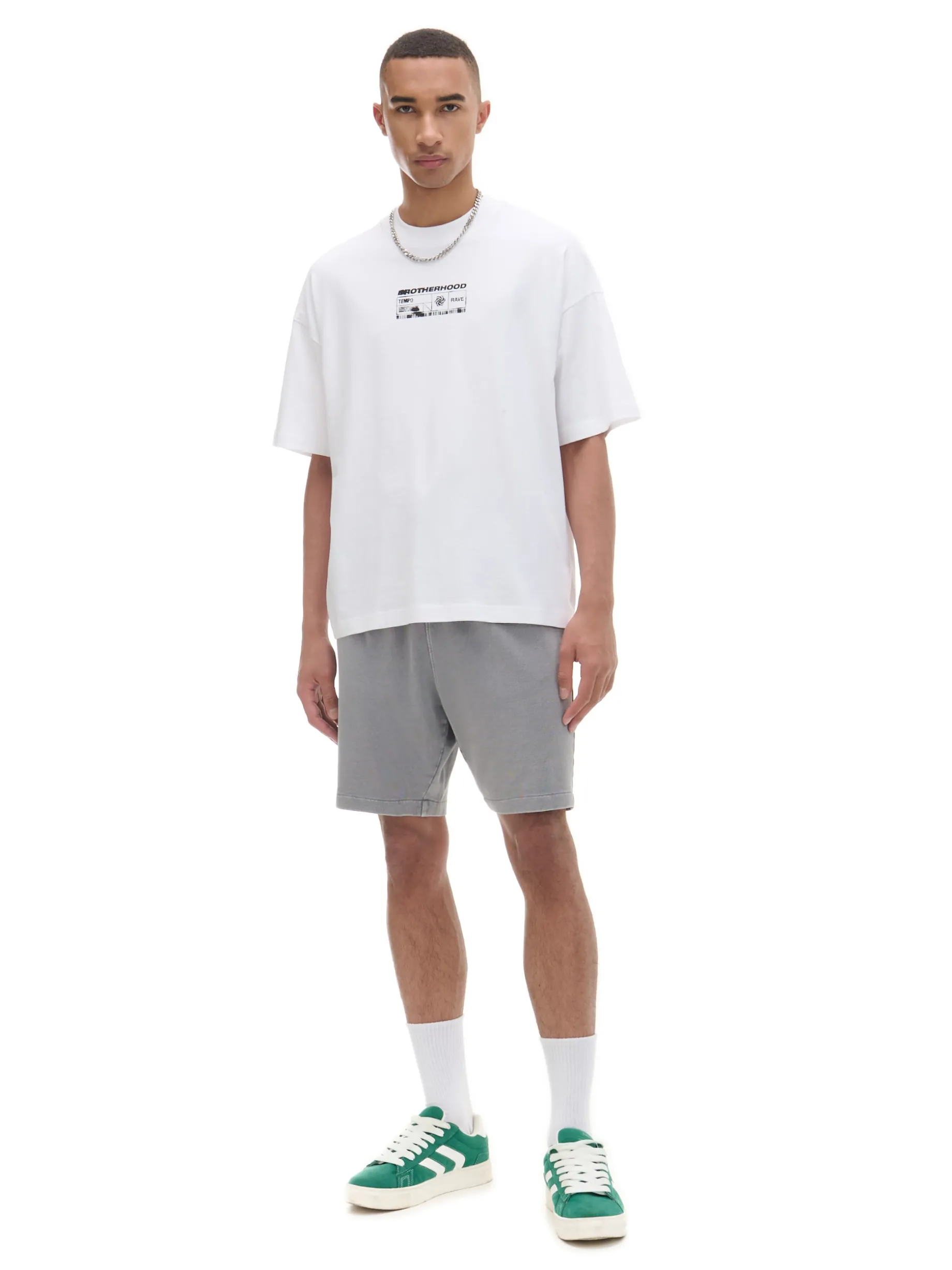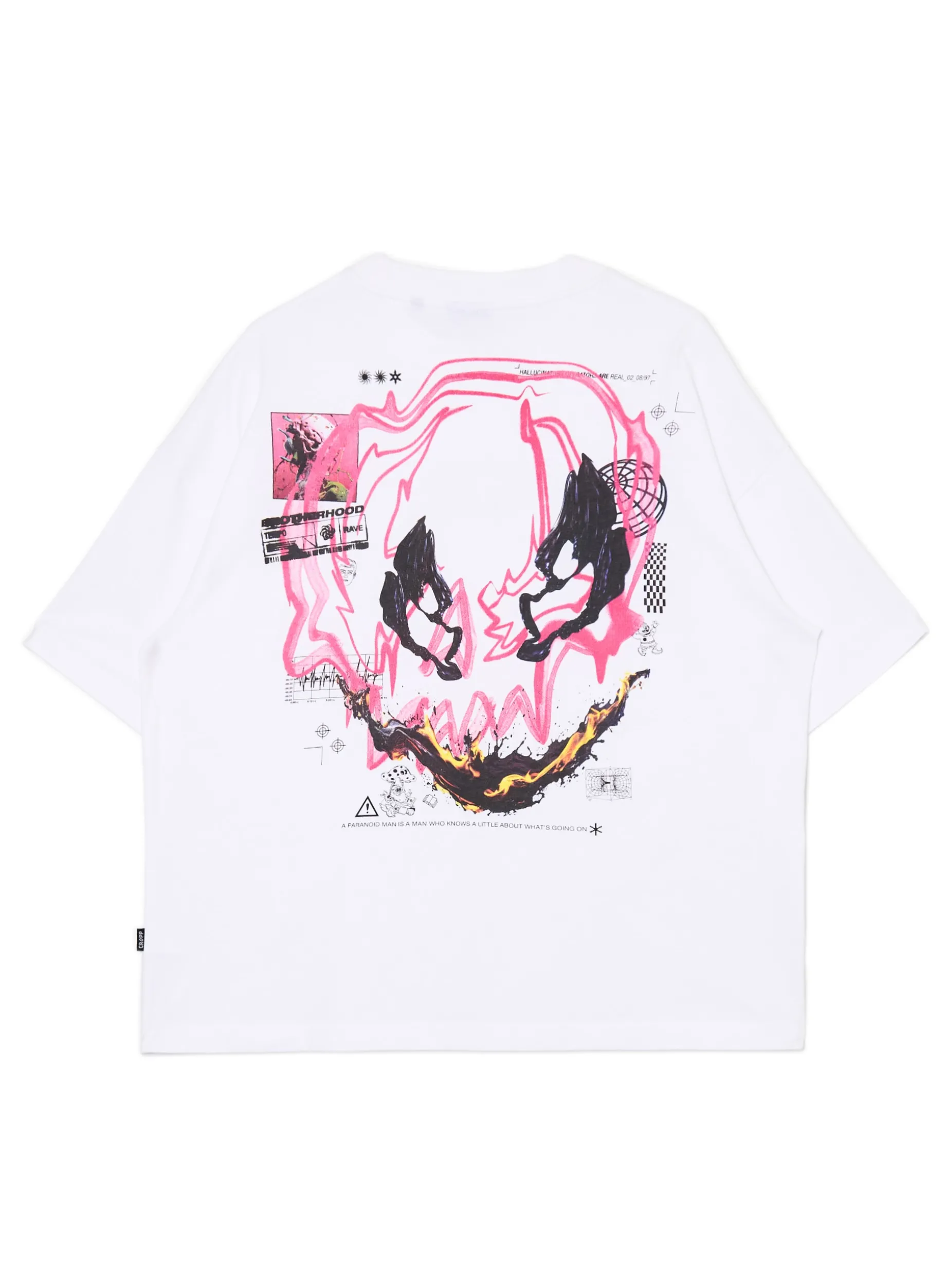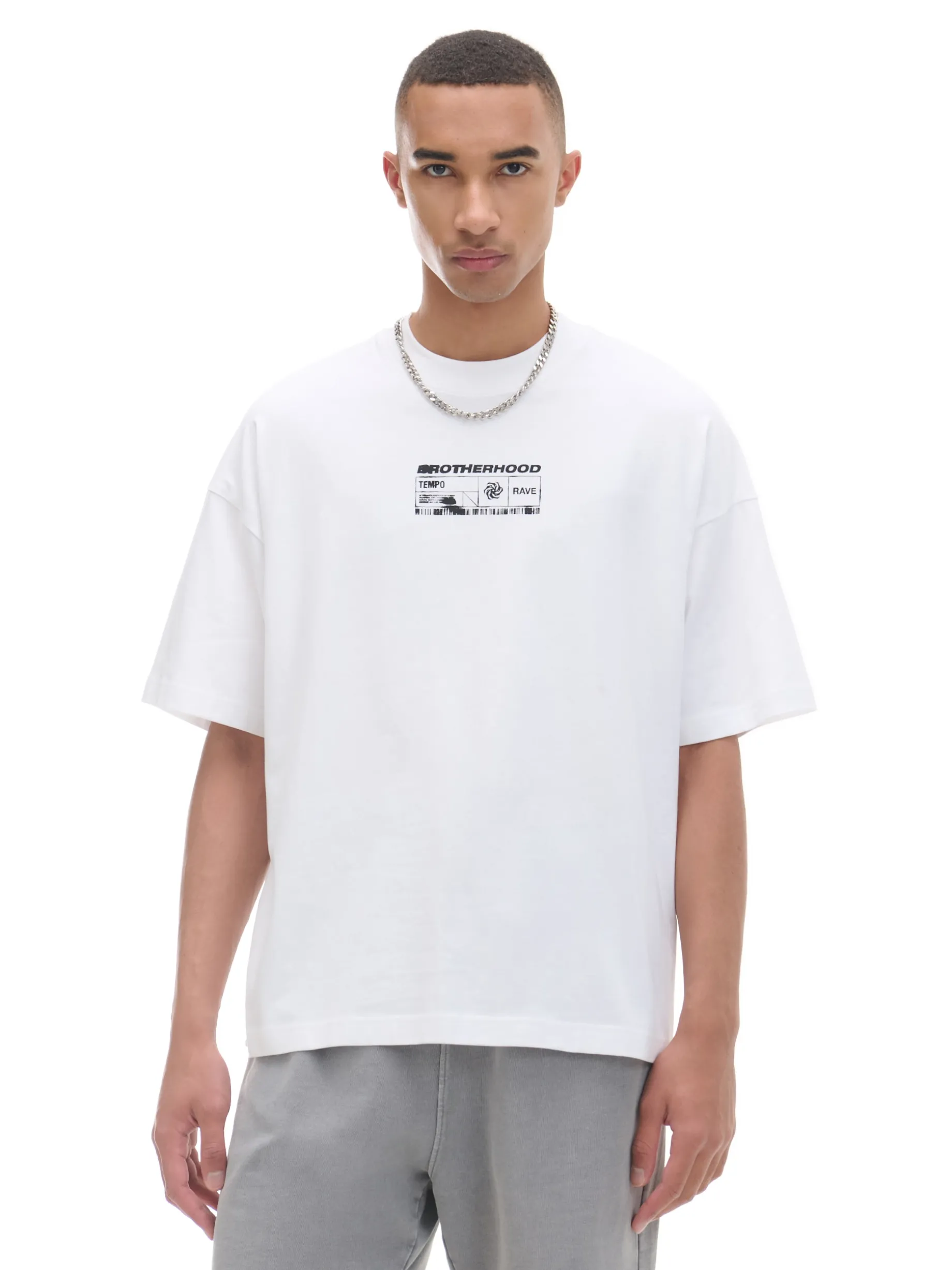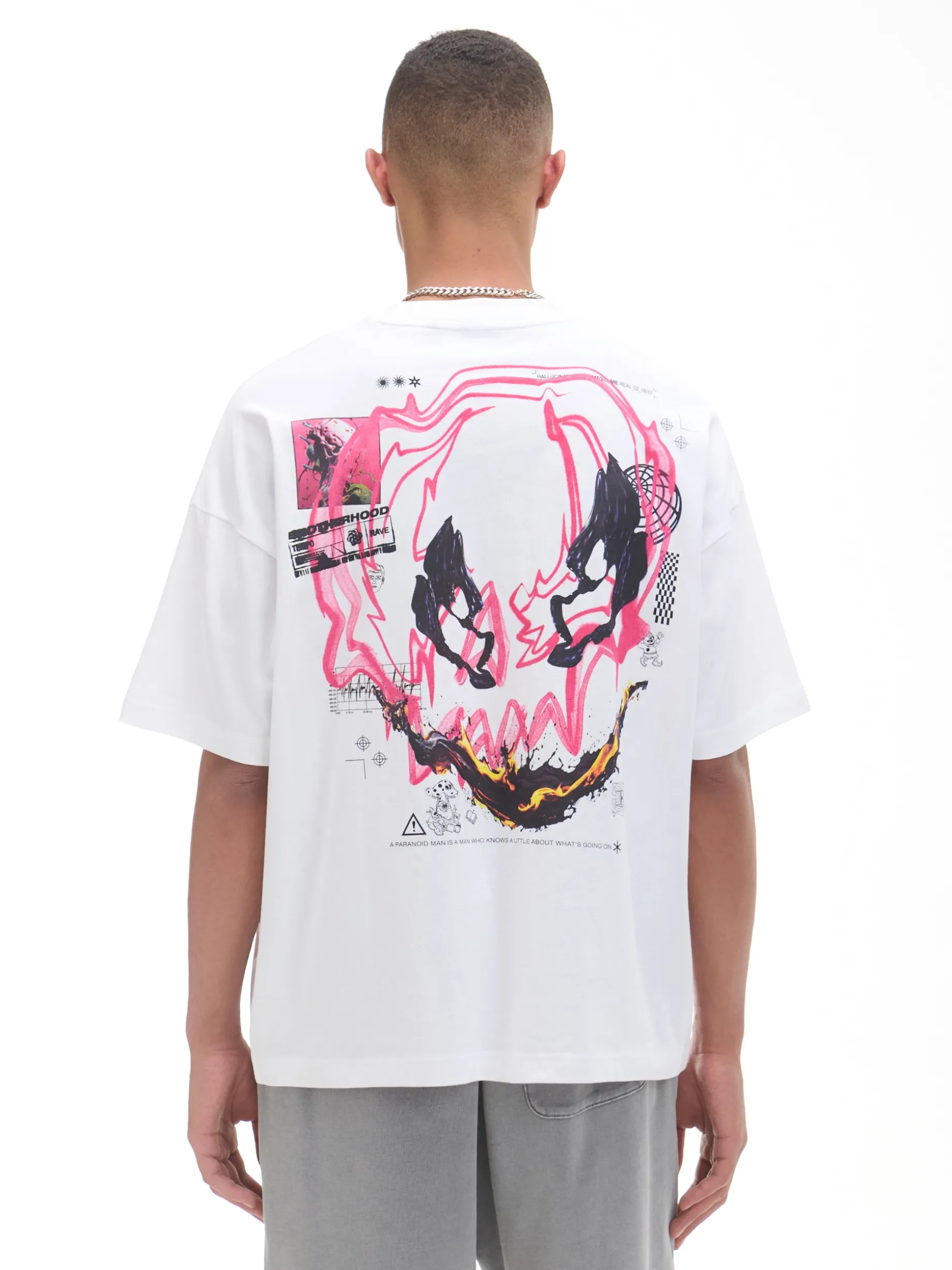 Męska bawełniana koszulka o kroju boxy z nadrukiem po obu stronach. 100% bawełny obszerny krój boxy krótkie rękawy delikatnie obniżona linia ramion Wzrost modela: 185 cm