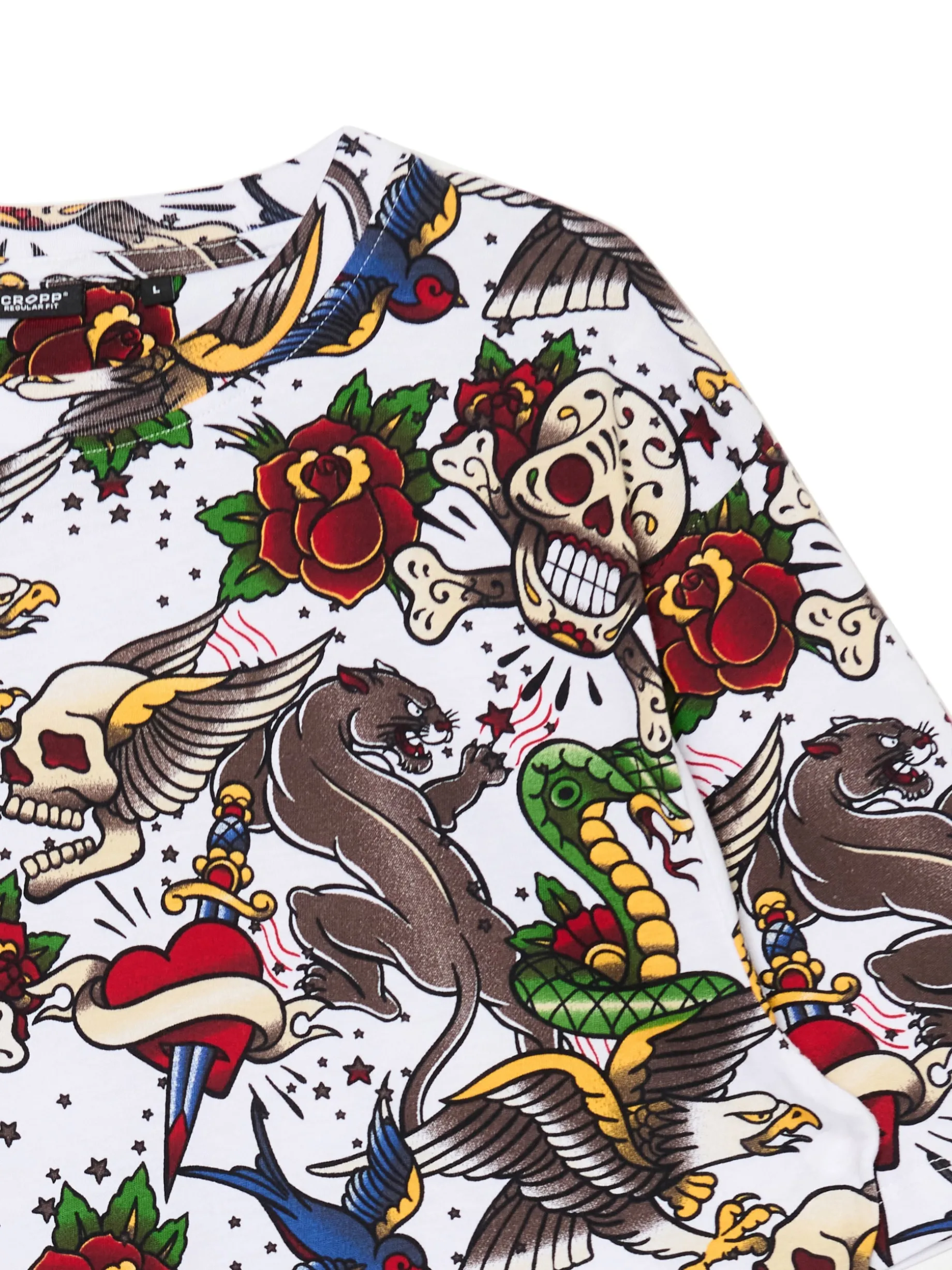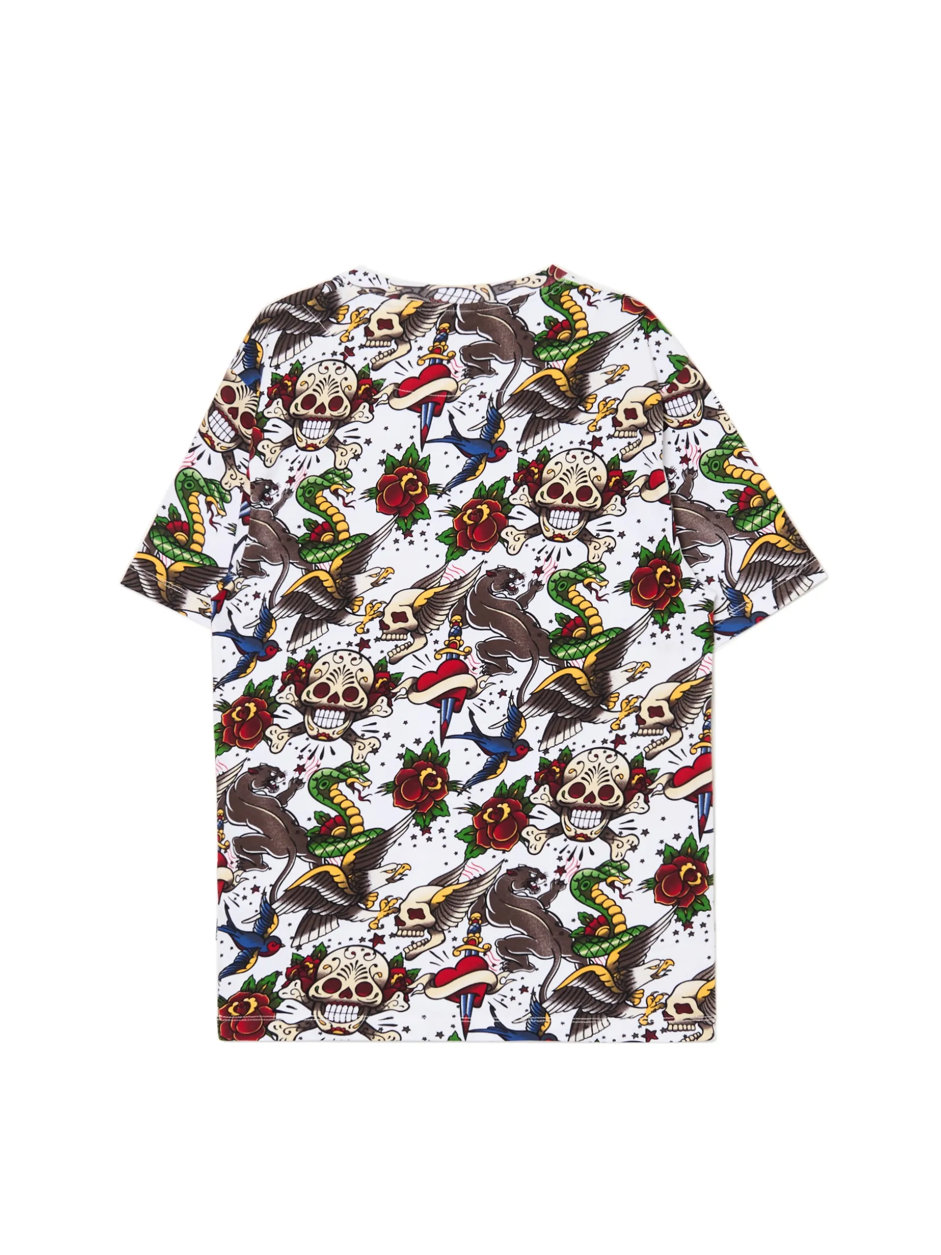 Męski T-shirt, uszyty z lekkiej bawełnianej dzianiny. Zakochasz się w tym oryginalnym nadrukiem w punkowym stylu! 100% bawełny regularny krój półokrągły dekolt krótkie, swobodne rękawy oryginalny print all over