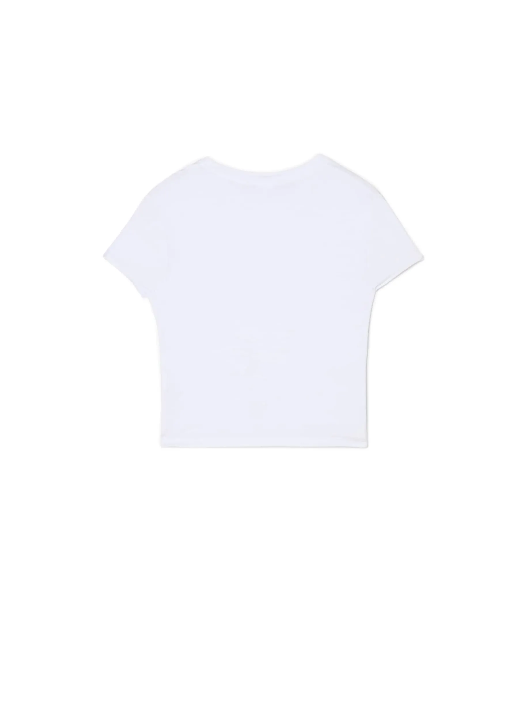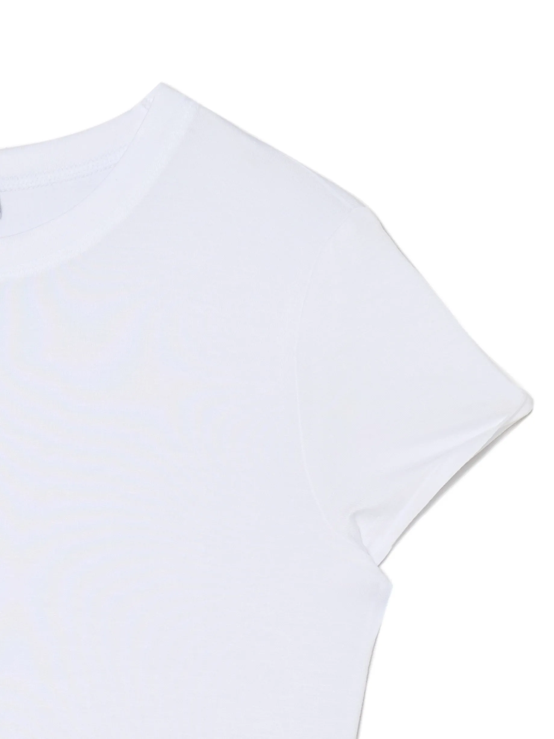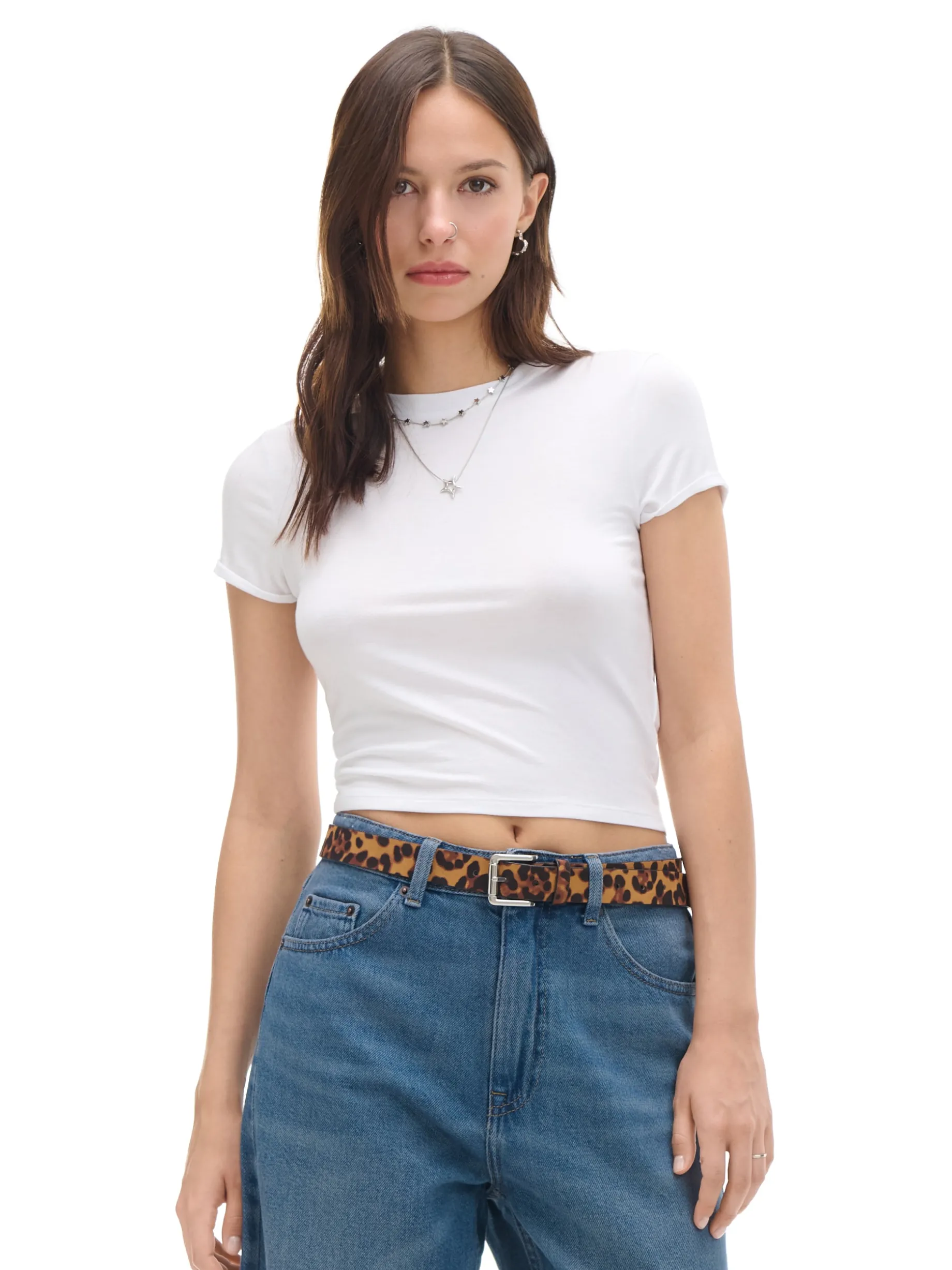 Damski T-shirt o dopasowanym kroju, uszyty z wiskozy z dodatkiem elastystycznych włókien. wiskoza z domieszką elastycznych włókien dopasowany krój podkreślający sylwetkę krótkie, ścięte rękawy półokrągły dekolt z lamówką