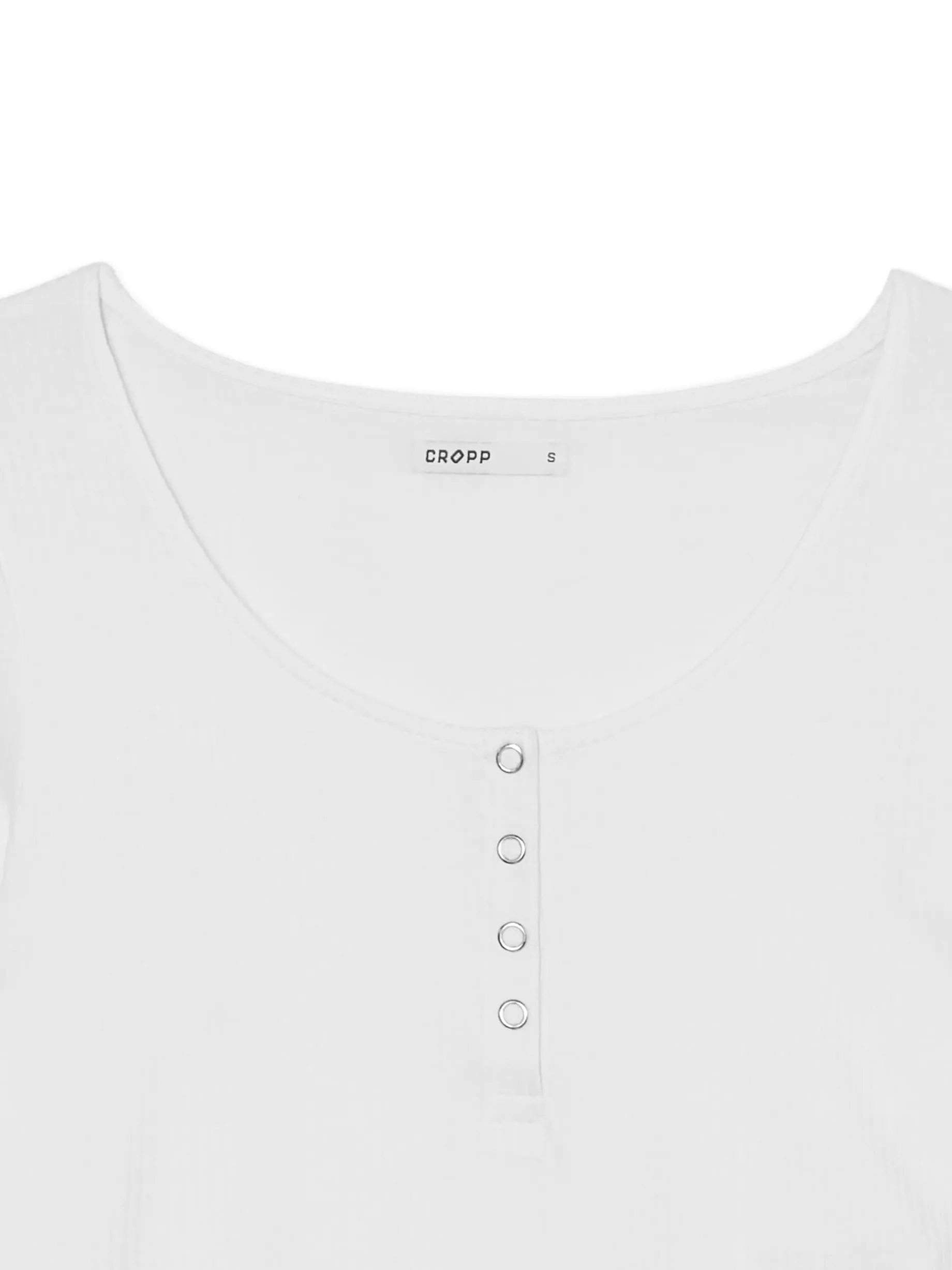 Damska biała bluzka, uszyta z mieszanki wiskozy i elastanu. Dobierz do niej oryginalne dodatki! dopasowany krój podkreślający sylwetkę długie, dopasowane rękawy góra zapinana na okrągłe zatrzaski okrągły dekolt z lamówką ciekawa, prążkowana faktura