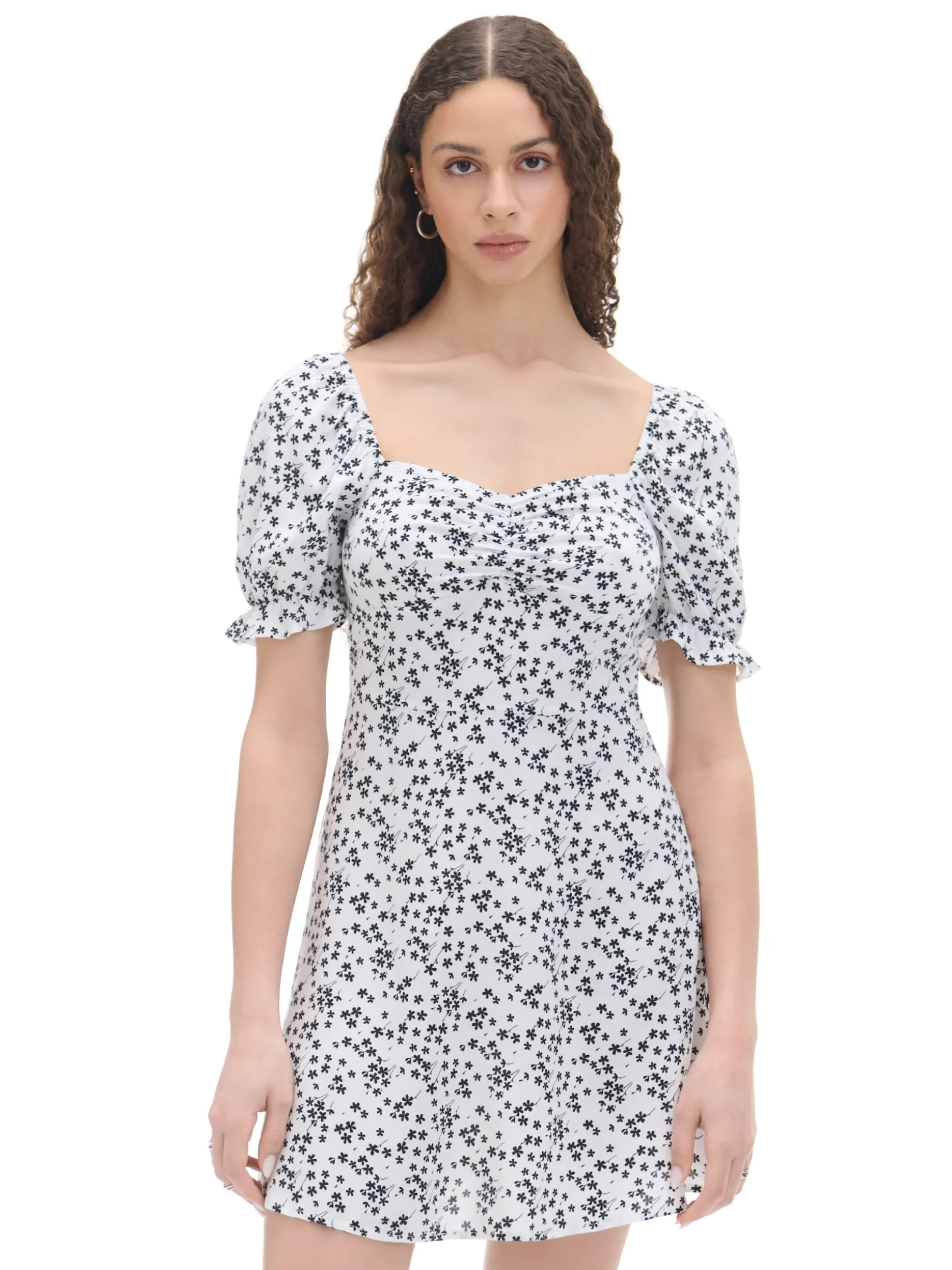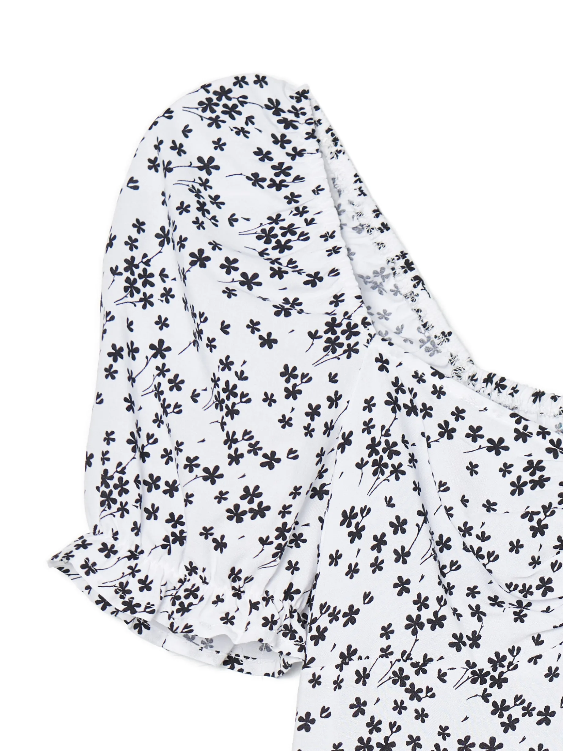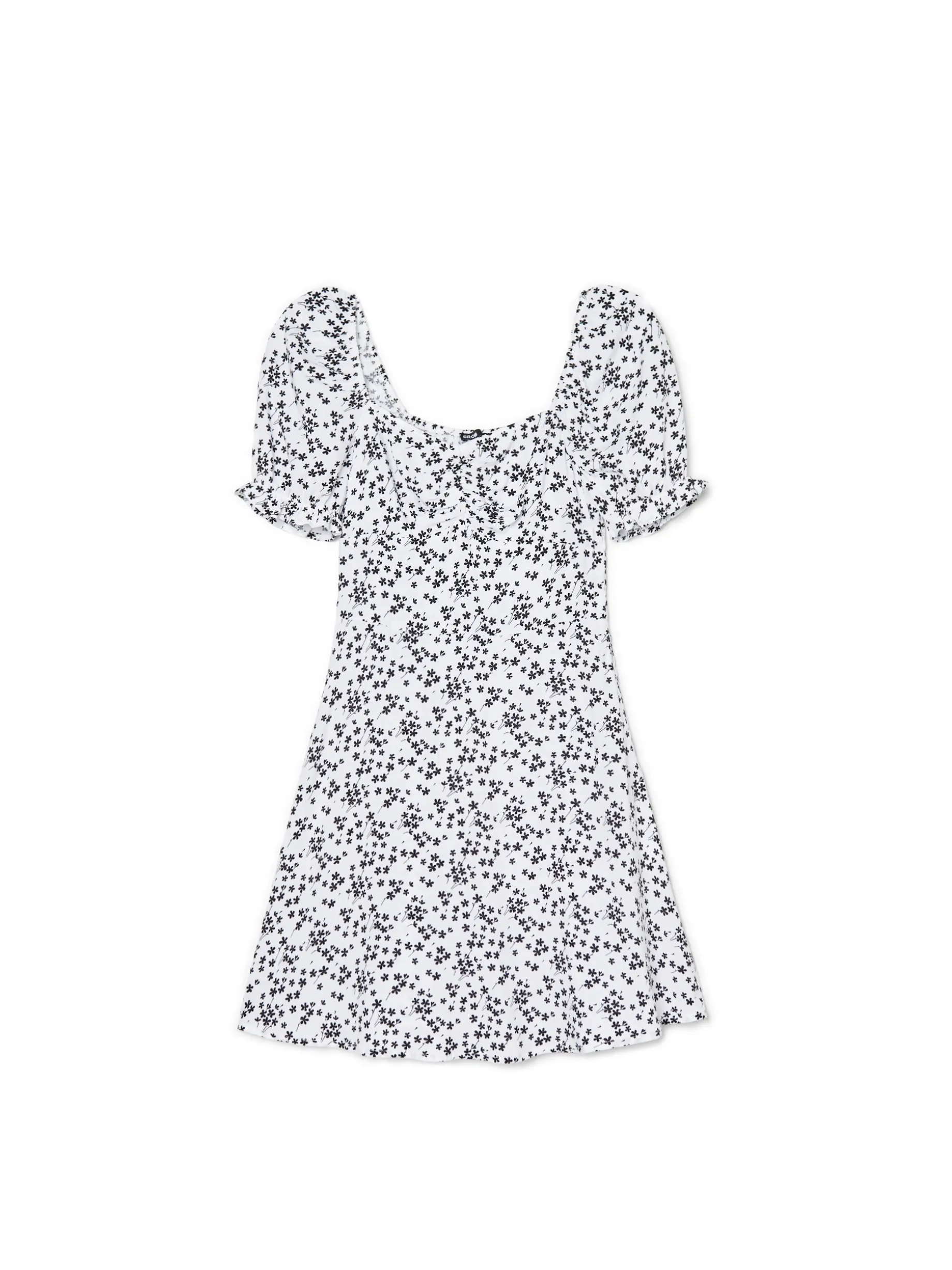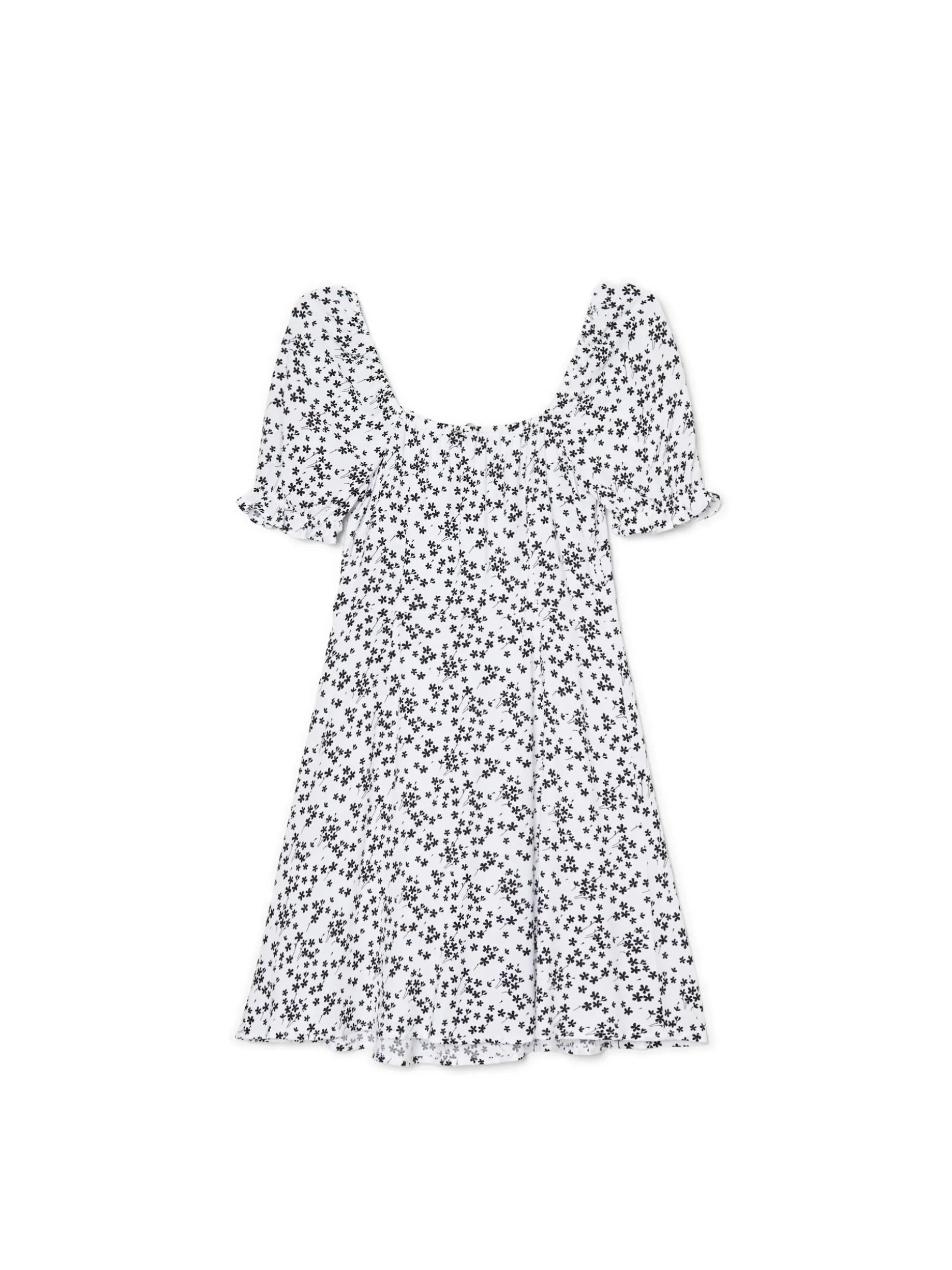 Krótka damska sukienka o swobodnym kroju, uszyta z wiskozy. Dostępna w różnych wersjach kolorystycznych. 100% wiskozy swobodny krój krótkie, bufiaste rękawy dekoracyjne marszczenie pod biustem autorski, kwiatowy print na całości zapięcie na kryty zamek produkt występuje w kilku kolorach Wzrost modelki: 170 cm