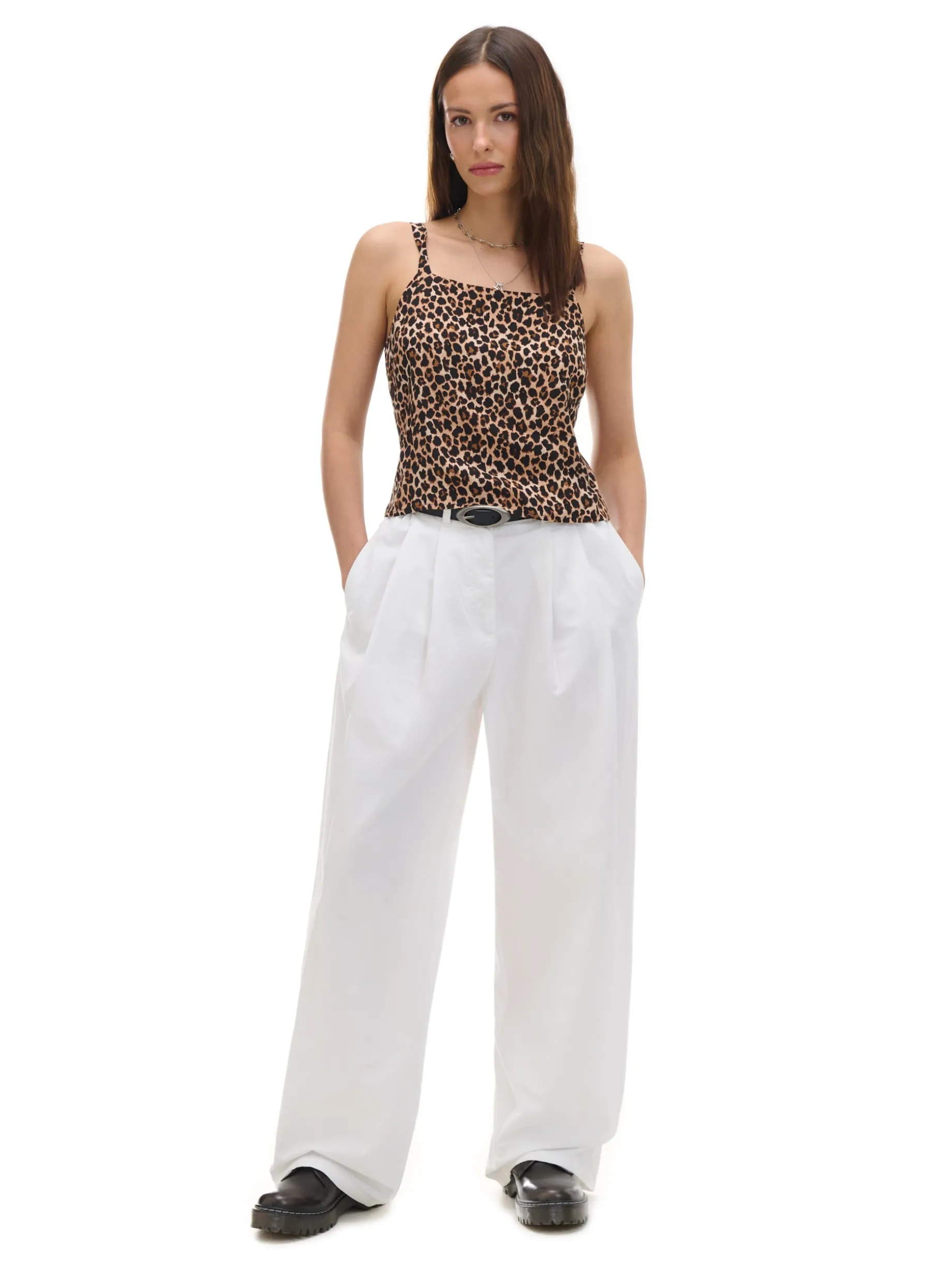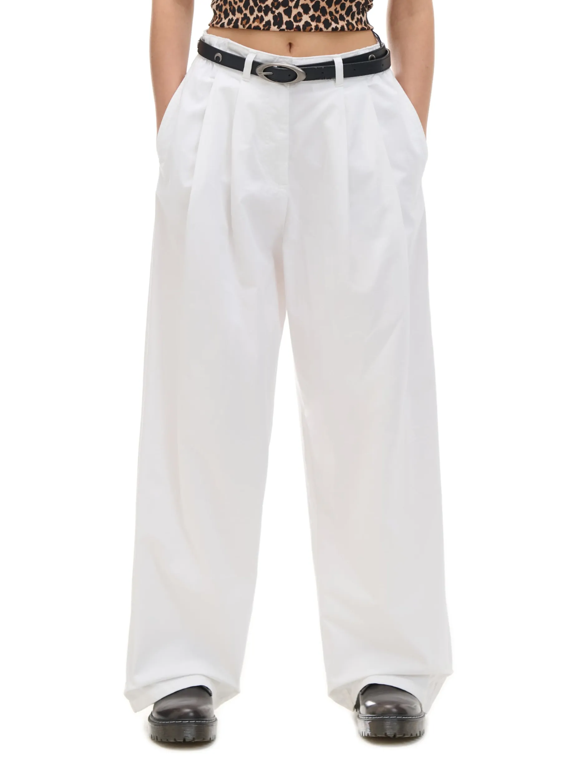 Damskie spodnie o kroju wide leg, uszyte z bawełny. Dzięki specjalnym zakładkom modelującym, ten item będzie się pięknie prezentował. 100% bawełny długie, szerokie nogawki zapięcie na zamek i guzik elastyczna gumka w pasie dwie kieszenie z przodu dwie naszyte kieszenie tylnie modelujące zakładki z przodu szlufki na pasek