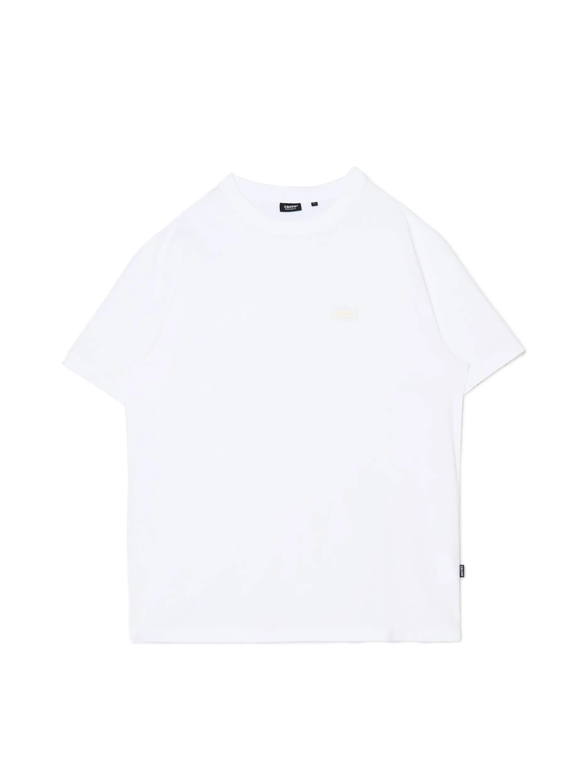 Męska koszulka w kolorze białym, uszyta w 100% z bawełny. regularny krój krótkie rękawy uniwersalny basicowy styl naszywka z napisem Cropp Wzrost modela: 185 cm