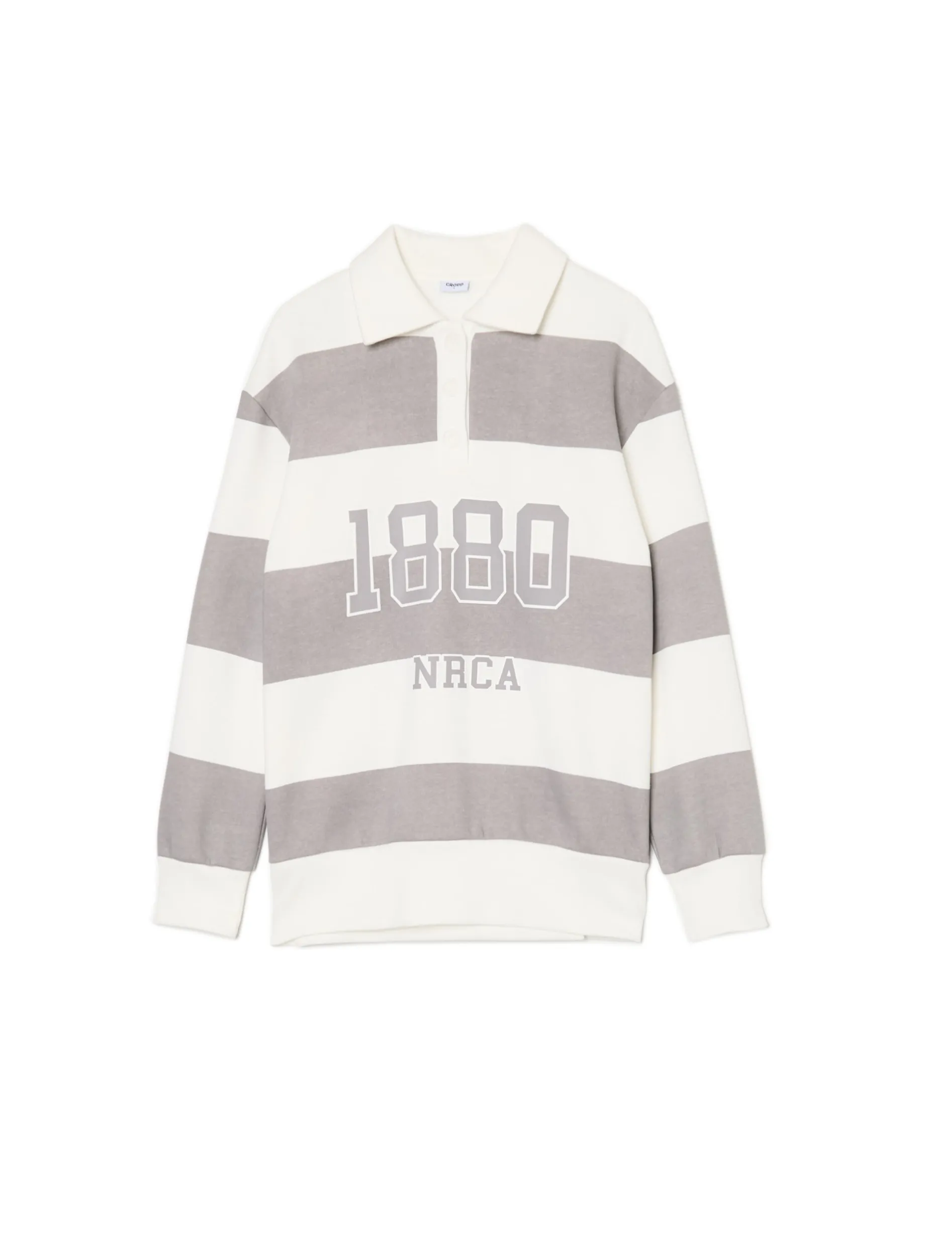 Damska bluza w wyjątkowym fasonie koszuli polo z klasycznym kołnierzykiem, uszyta z mieszanki dzianin z miękkim meszkiem. Na przodzie aplikacja w collegowym stylu. Klasyczny look w nowoczesnym designie, sprawdź! bluza o regularnym kroju uszyta z miękkiej dzianiny z bawełną góra zapinana na guziki klasyczny kołnierzyk długie rękawy z obniżoną linią ramion dół i rękawy wykończone ściągaczem wzór w paski na całości z przodu aplikacja