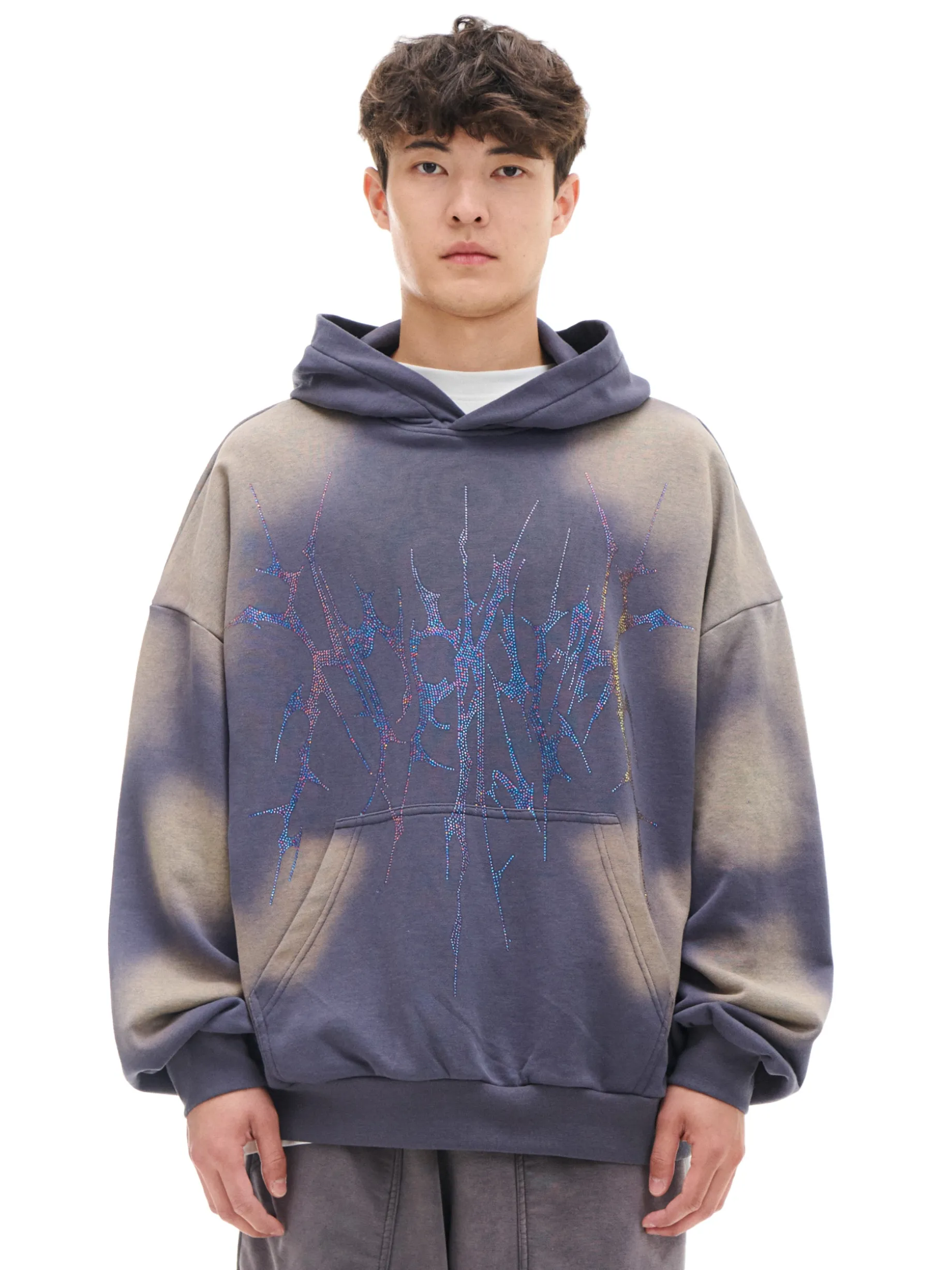 Ta męska bluza w oryginalnym kolorze dzianiny z pomysłową aplikacją z przodu wyróżni Cię w tłumie! uszyta z miękkiej dzianiny z bawełną luźny krój boxy duży kaptur ściągacze na mankietach i w pasie kieszeń typu kangur ozdobna aplikacja Model prezentuje produkt w rozmiarze M. Wzrost modela: 185 cm