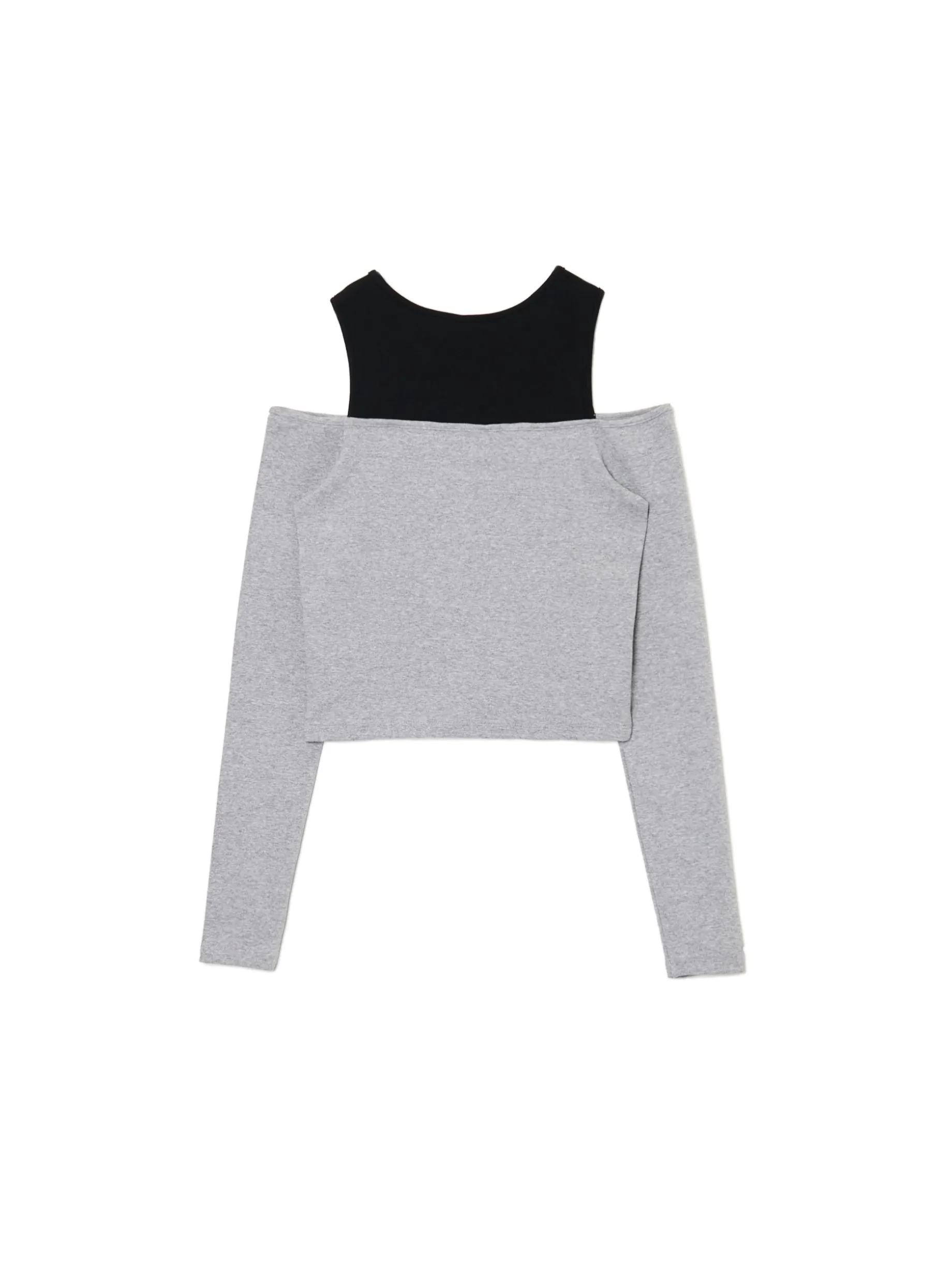 Szara bluzka z wszytym wewnątrz topem w czarnym kolorze. Ponadczasowy fason w stylu Y2K! bawełna z dodatkiem elastycznych włókien dopasowany krój podkreślający sylwetkę okrągły dekolt długie, dopasowane rękawy opadające ramiona gładkie wykończenie brzegów