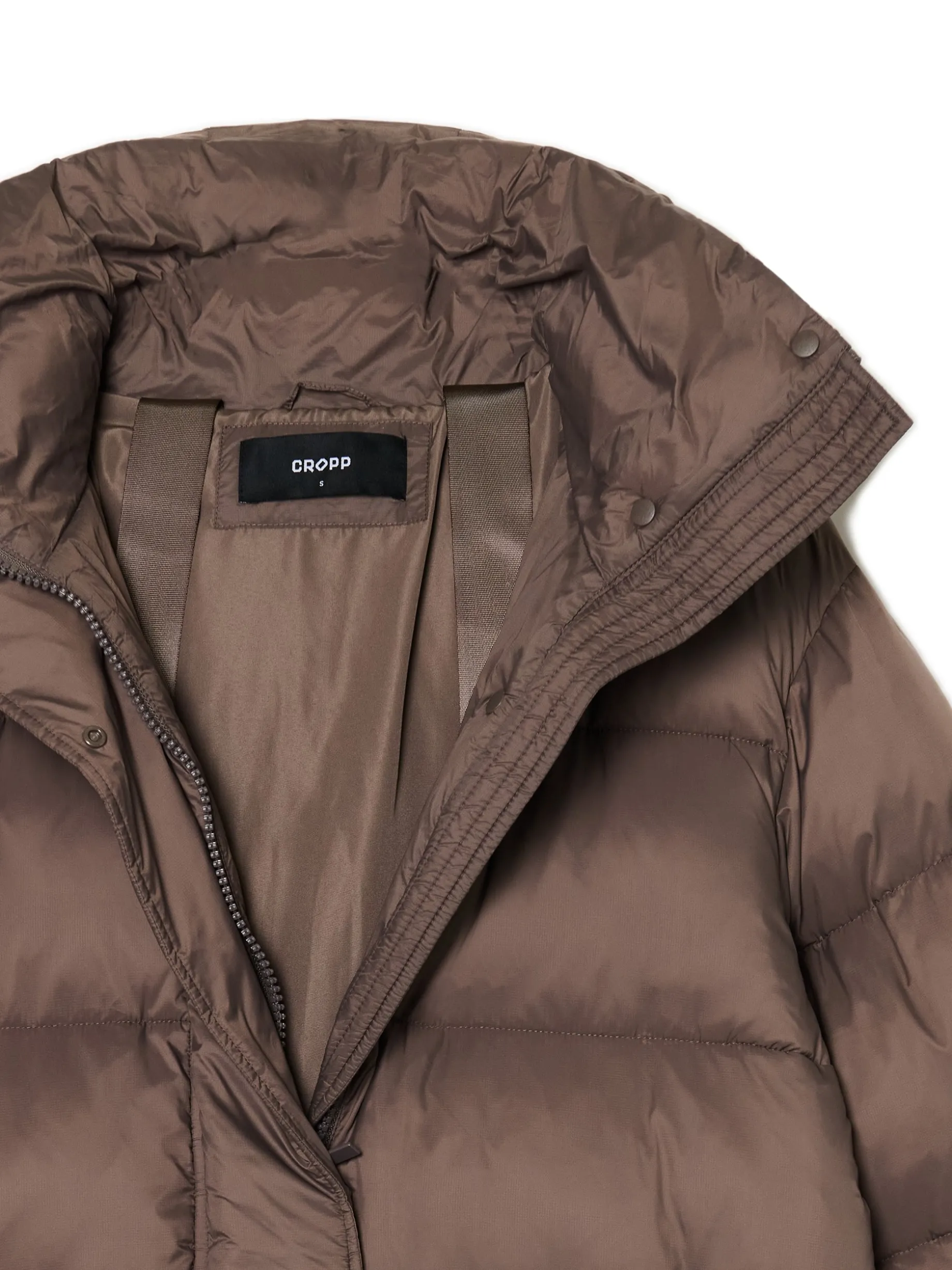 Brązowy pikowany płaszcz z kapturem