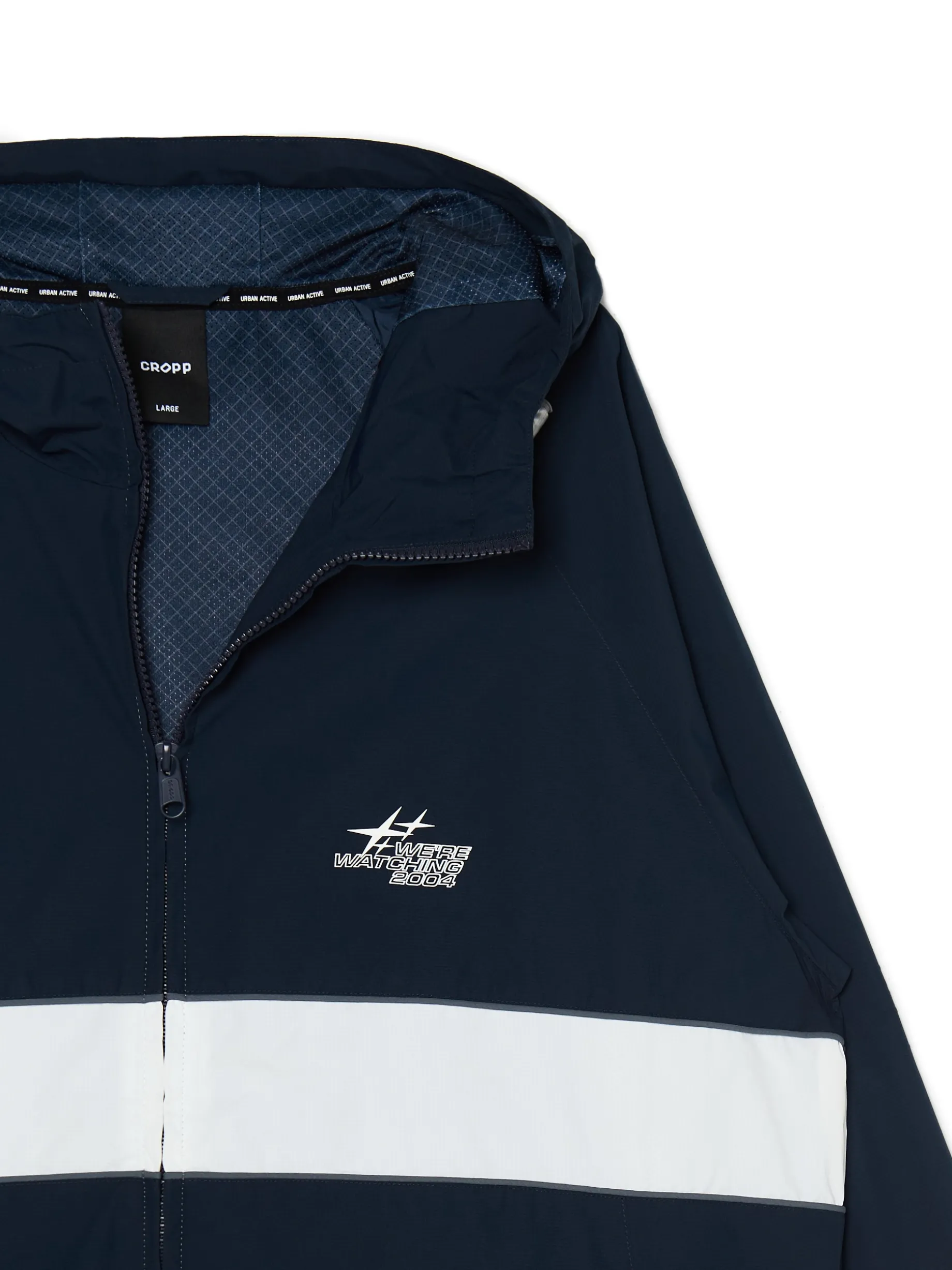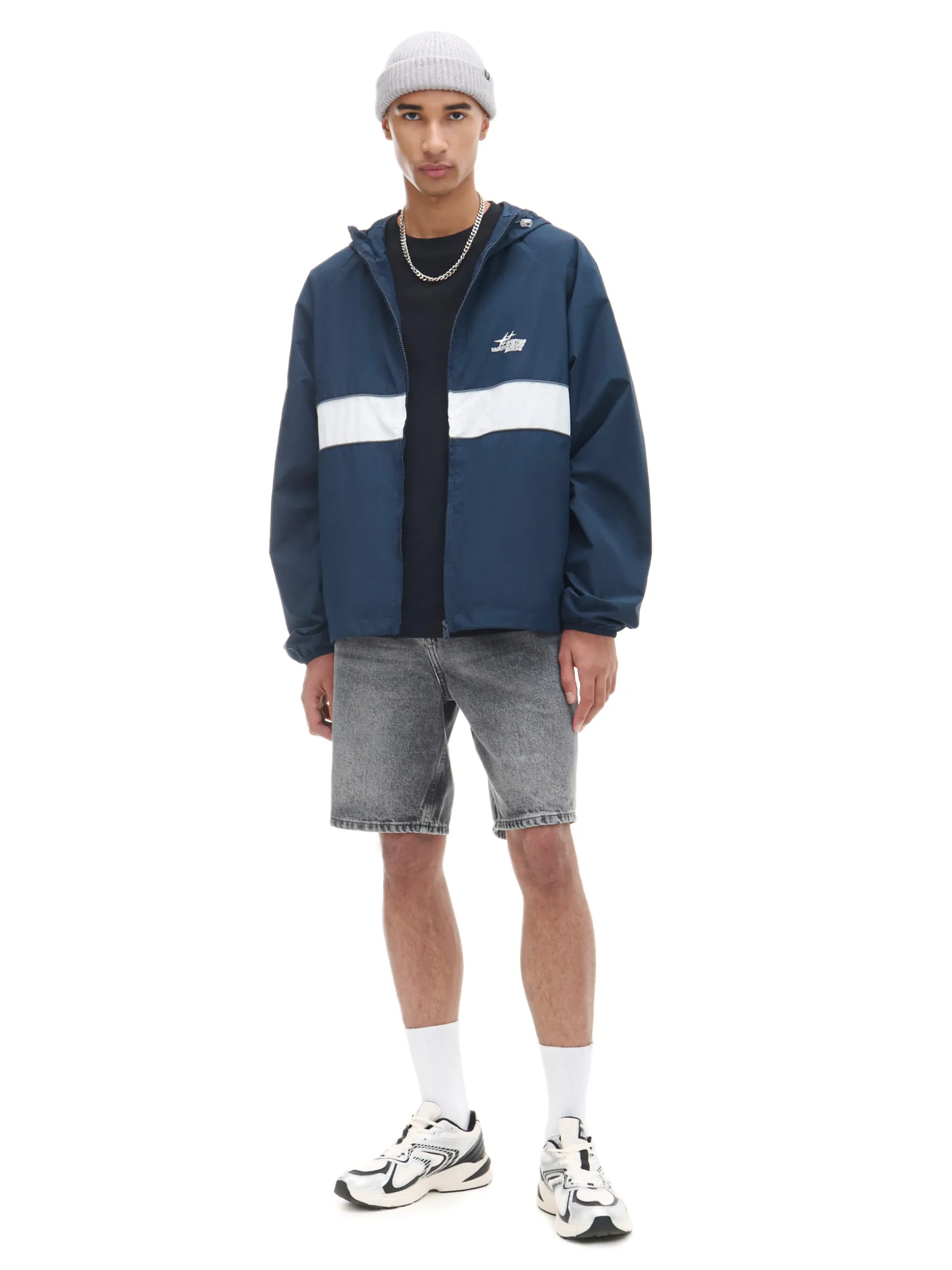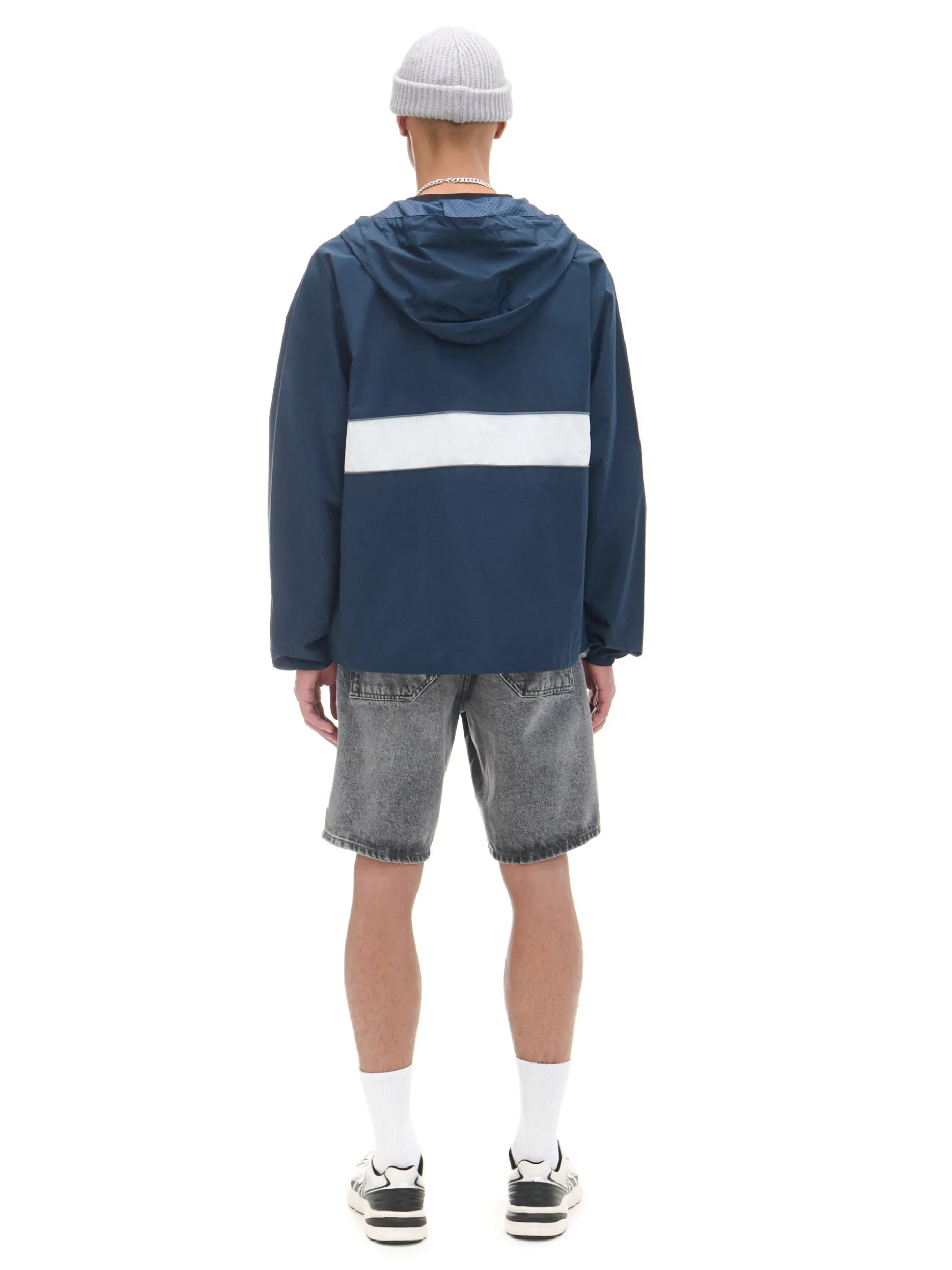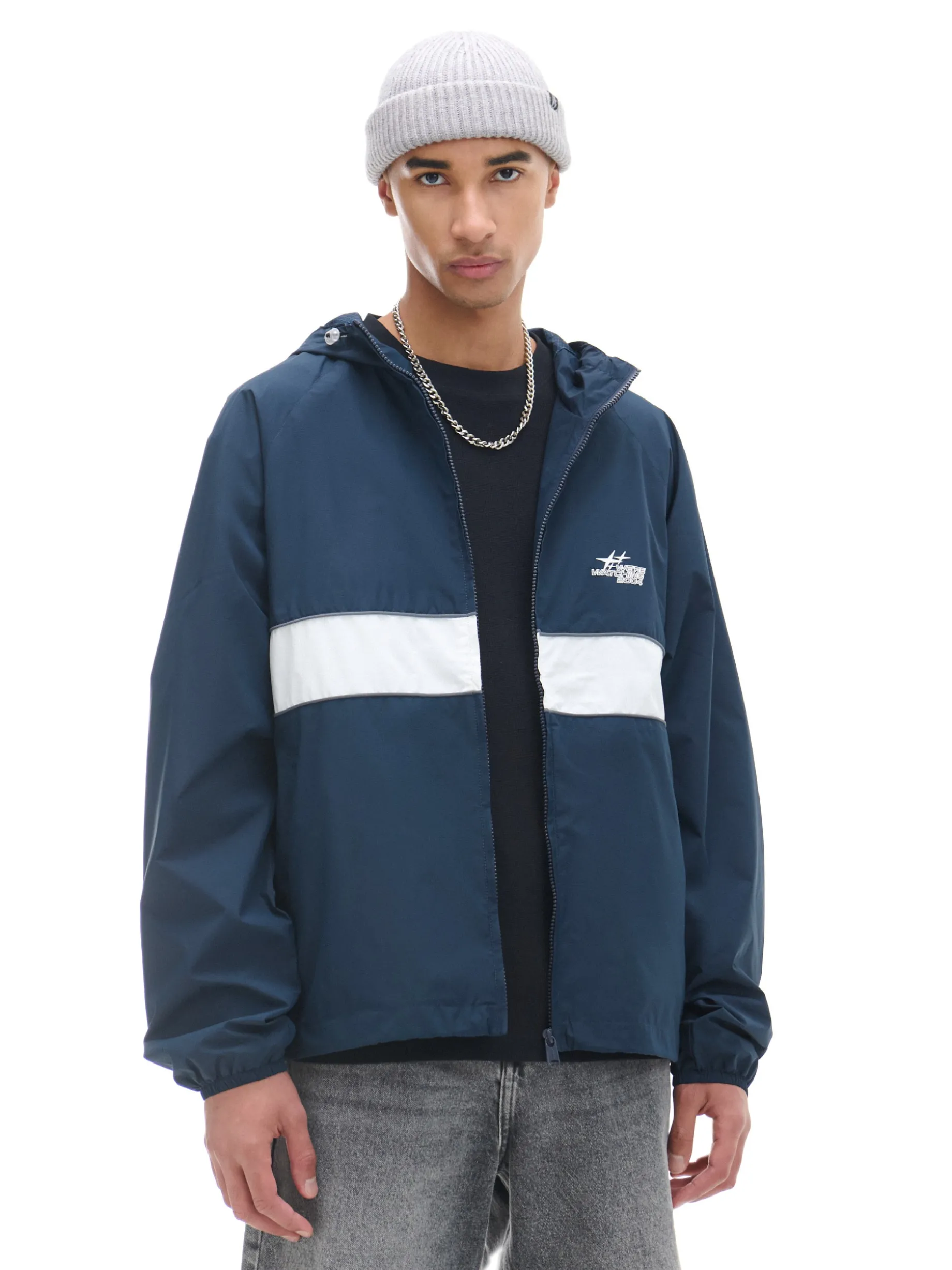 Męska lekka kurtka z kapturem, uszyta z gładkiej granatowej tkaniny. zapięcie na suwak kaptur regulowany za pomocą elastycznych gumek ze stoperami długie rękawy zakończone ściączem z wszytą elastyczną gumką mały nadruk na piersi dolny brzeg regulowany za pomocą elastycznych gumek ze stoperami dwie kieszenie zewnętrzne wewnętrzna kieszeń zapinana na rzep podszewka z lekkiej siateczki mesh Wzrost modela: 185 cm PROTECTION LEVEL 1rn rnKurtka uszyta z tkaniny, której właściwości zapewnią Ci ochronę przed wiatrem. Możesz ją nosić jako lekkie okrycie wierzchnie i łączyć z cieplejszymi ubraniami.