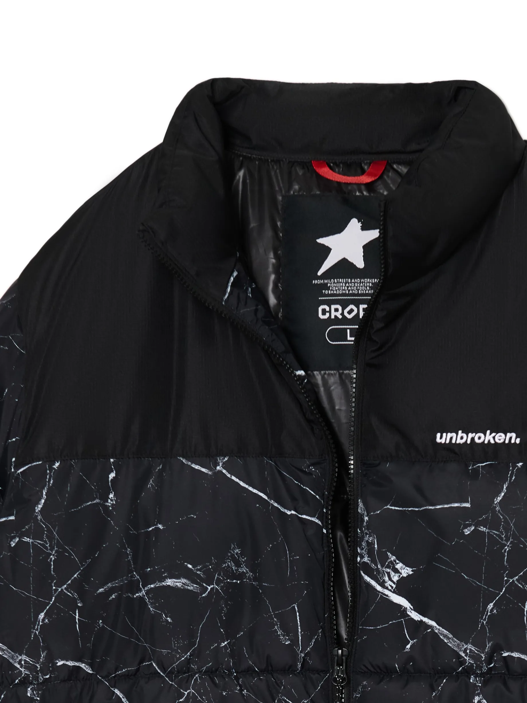 Ciepła męska kurtka typu puffer z nadrukiem all over i karczkiem w jednolitym, czarnym kolorze. Zapinana na zamek błyskawiczny z pullerem. Przejściówka z nowoczesnym designem, która ochroni Cię przed wiatrem i jesiennym deszczem. basicowa kurtka typu puffer materiał z wodoodpornym wykończeniem wewnątrz lekkie ocieplenie i podszewka zapięcie na zamek na całej długości wysoki kołnierz długie rękawy z gumką przy mankietach kieszenie boczne z zamkami wewnątrz kieszeń zapinana na rzep regulacja dołu za pomocą gumek ze stoperami nadruk all over PROTECTION LEVEL 3rn Kurtka uszyta z tkaniny z większym ociepleniem, której właściwości zapewnią Ci nie tylko ochronę przed wiatrem i deszczem, ale też niskimi temperaturami.