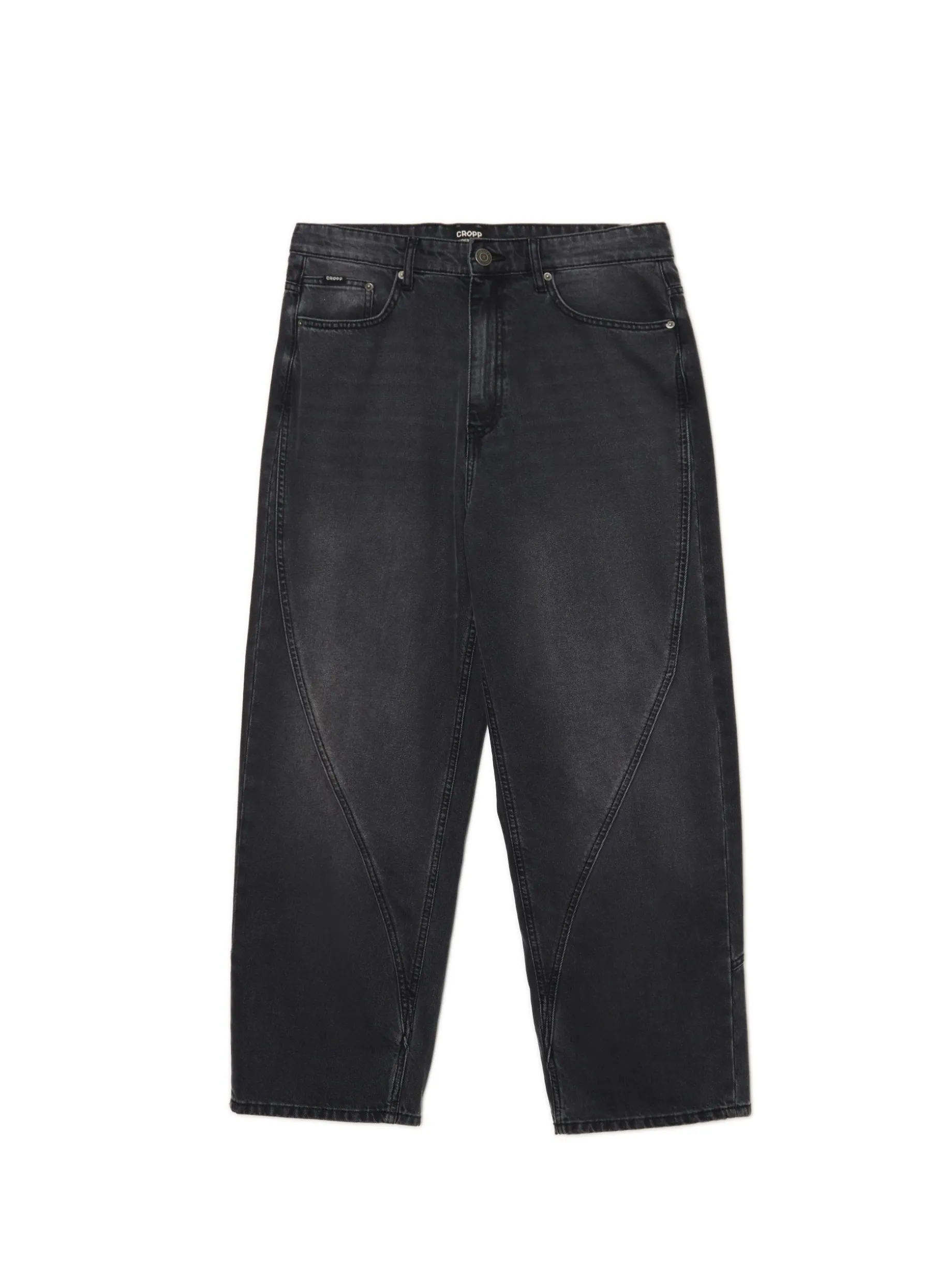 Męskie spodnie o poszerzonych nogawkach, uszyte z bawełnianej tkaniny w odcieniu szarego. Ozdobą tego modelu są przeszycia po obu stronach. Bardzo luźno i bardzo stylowo na spontaniczne wypady z ekipą. 100% bawełny obszerny krój super baggy długie, szerokie nogawki zapięcie na zamek i guzik cztery kieszenie jedna mała kieszeń na drobniaki szlufki na pasek ozdobne przeszycia efekt sprania na całości