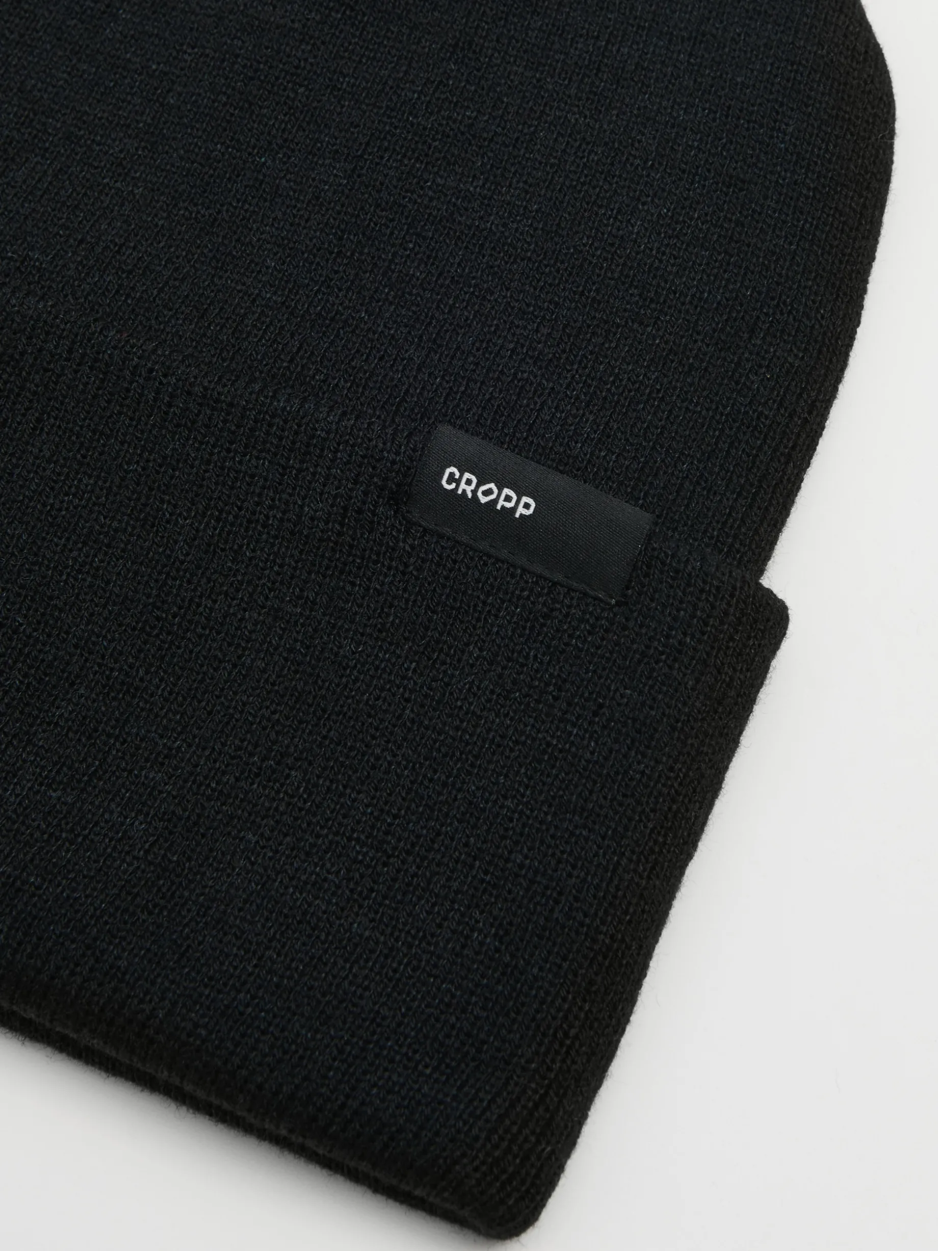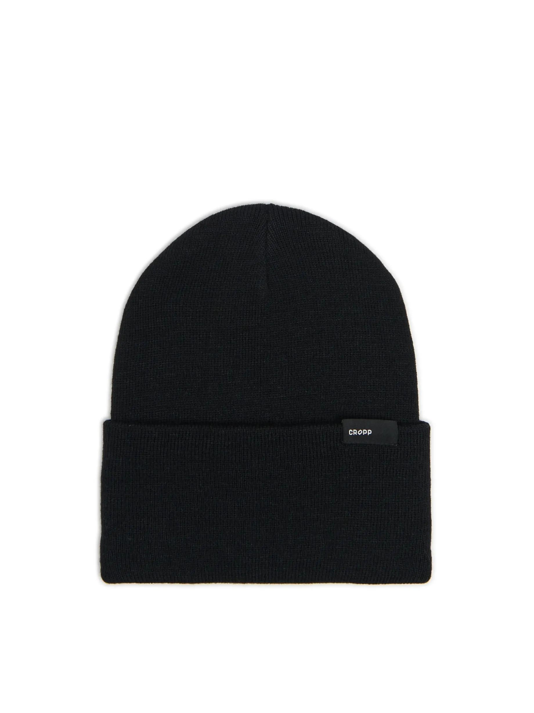 Warto wyposażyć się w tę basicową czapkę beanie z przyjemnej w dotyku dzianiny w kolorze czarnym. Dopasujesz ją do każdego typu odzieży wierzchniej. uszyta z dzianiny o drobnym, ryżowym splocie prosty krój szeroka zakładka naszywka Cropp