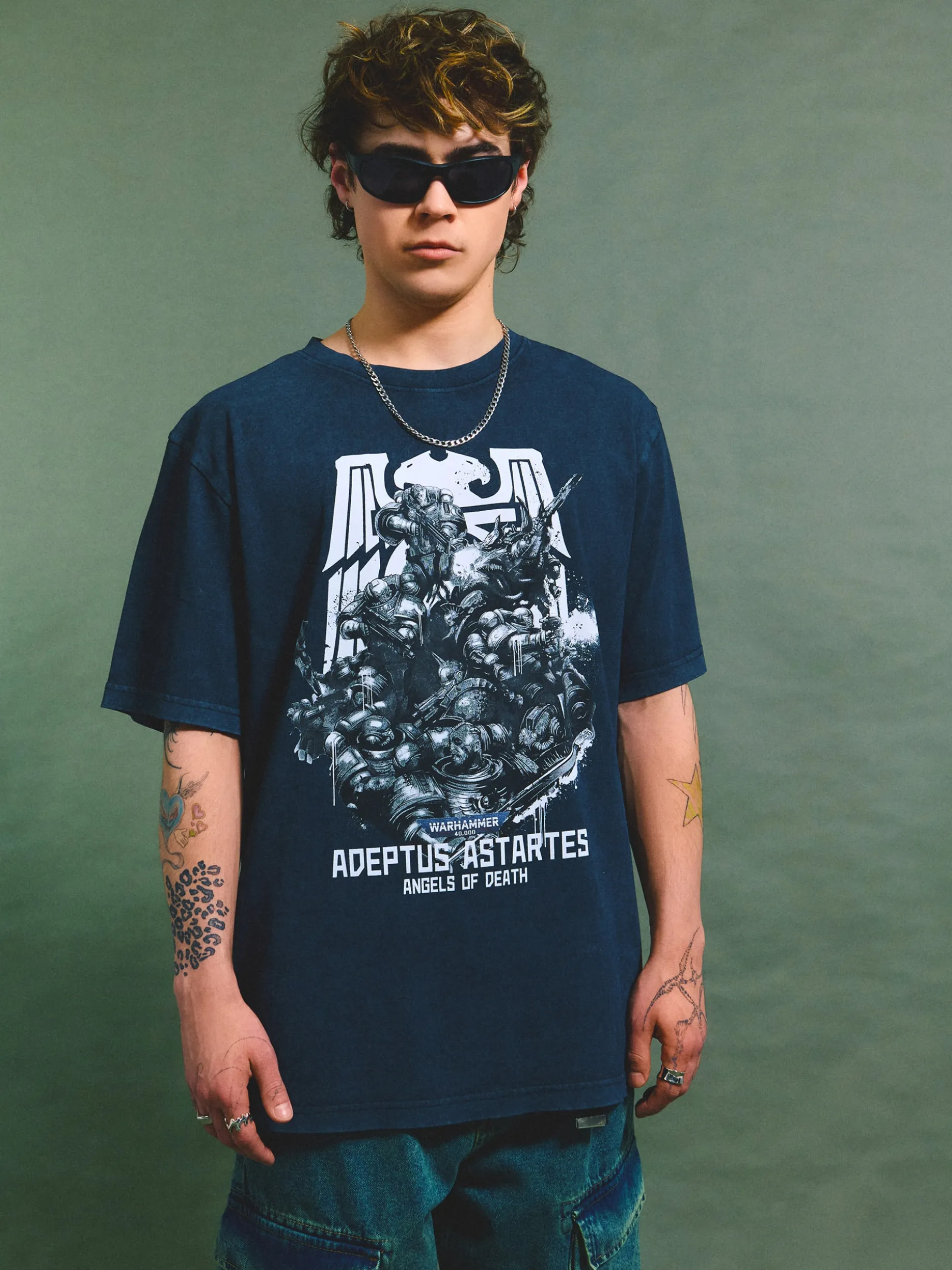 Męska czarna koszulka, uszyta w 100% z bawełny. Idealny pomysł na prezent dla fanów gier komputerowych. regularny krój krótkie rękawy z przodu duży nadruk z Warhammera Warhammer 40,000 © Copyright Games Workshop Limited. All rights reserved.