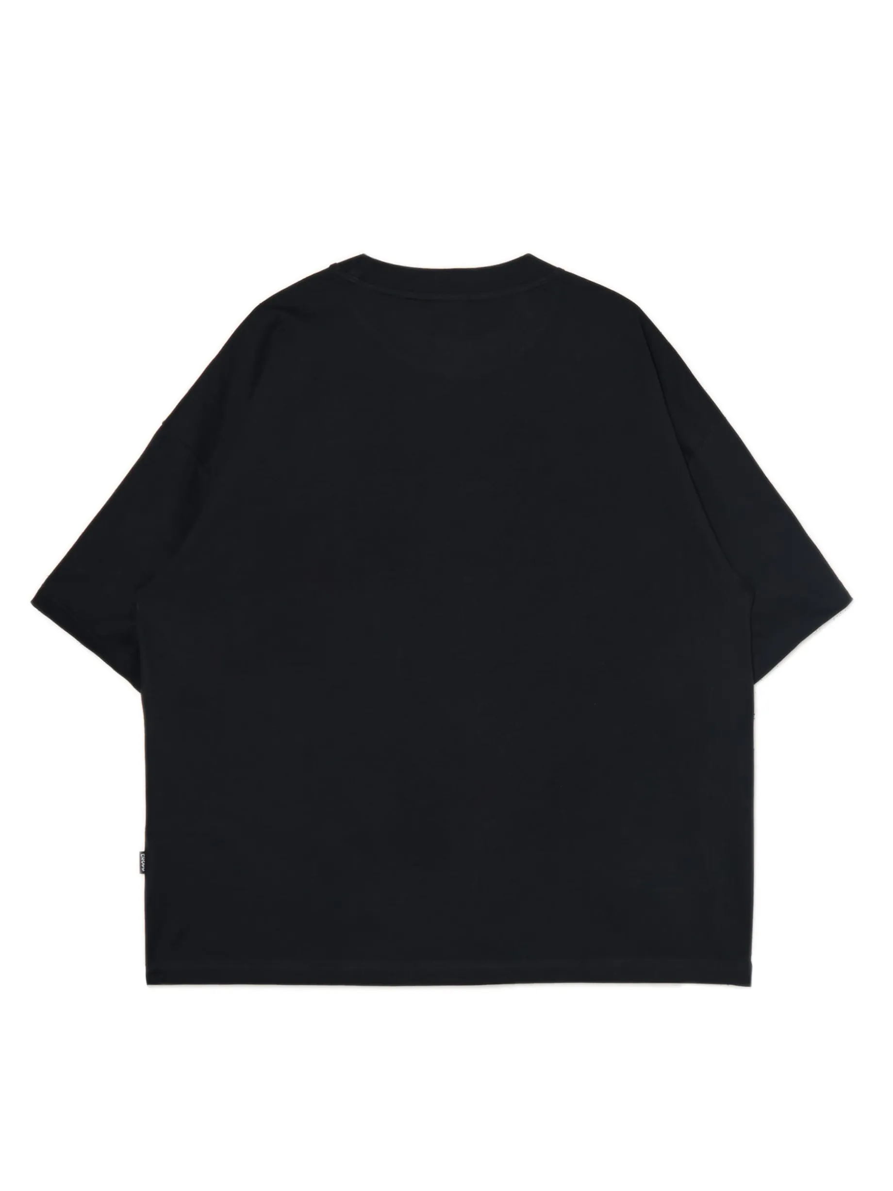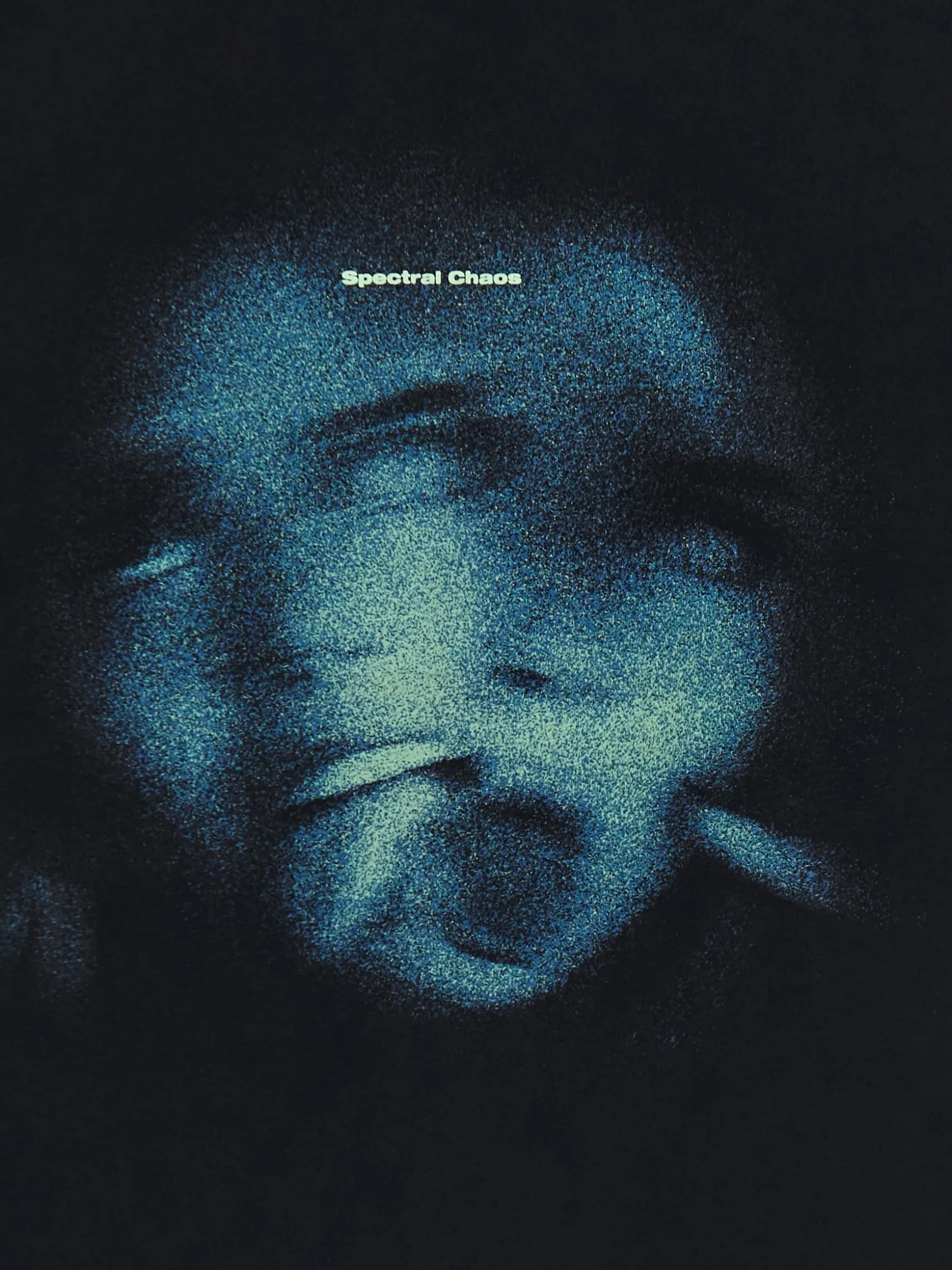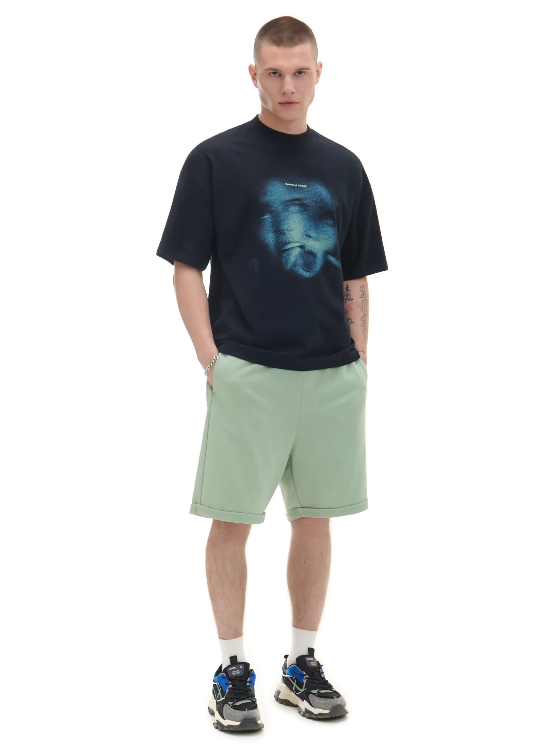 Męska bawełniana koszulka w kolorze czarnym z artystycznym nadrukiem. 100% bawełny obszerny krój boxy krótkie rękawy oryginalny print Model prezentuje produkt w rozmiarze M/L. Wzrost modela: 185 cm