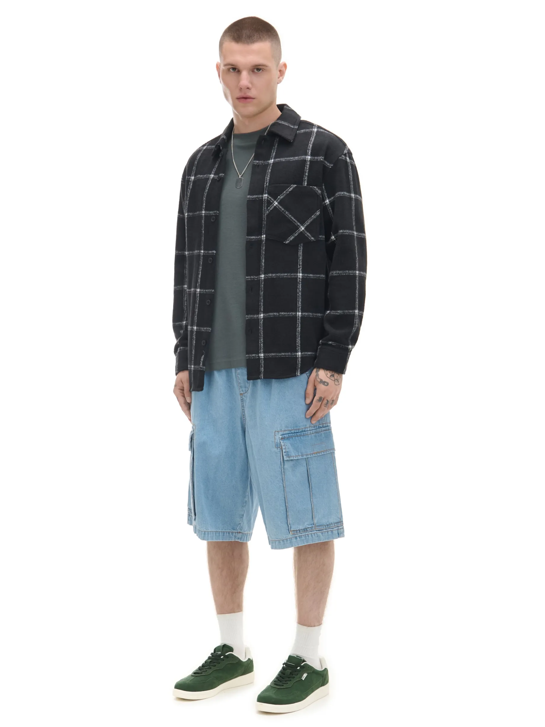 Koszula męska ze wzorem w kratę, uszyta z dzianiny zawierającej bawełnę, wiskozę oraz wełnę. Idealna na spontaniczne wypady! wykonana z łączonych materiałów wygodny krój comfort jednorzędowe zapięcie na guziki klasyczny kołnierzyk długie rękawy zakończone mankietem z guzikiem kieszeń piersiowa wzór w kratę Model prezentuje produkt w rozmiarze M/L. Wzrost modela: 185 cm