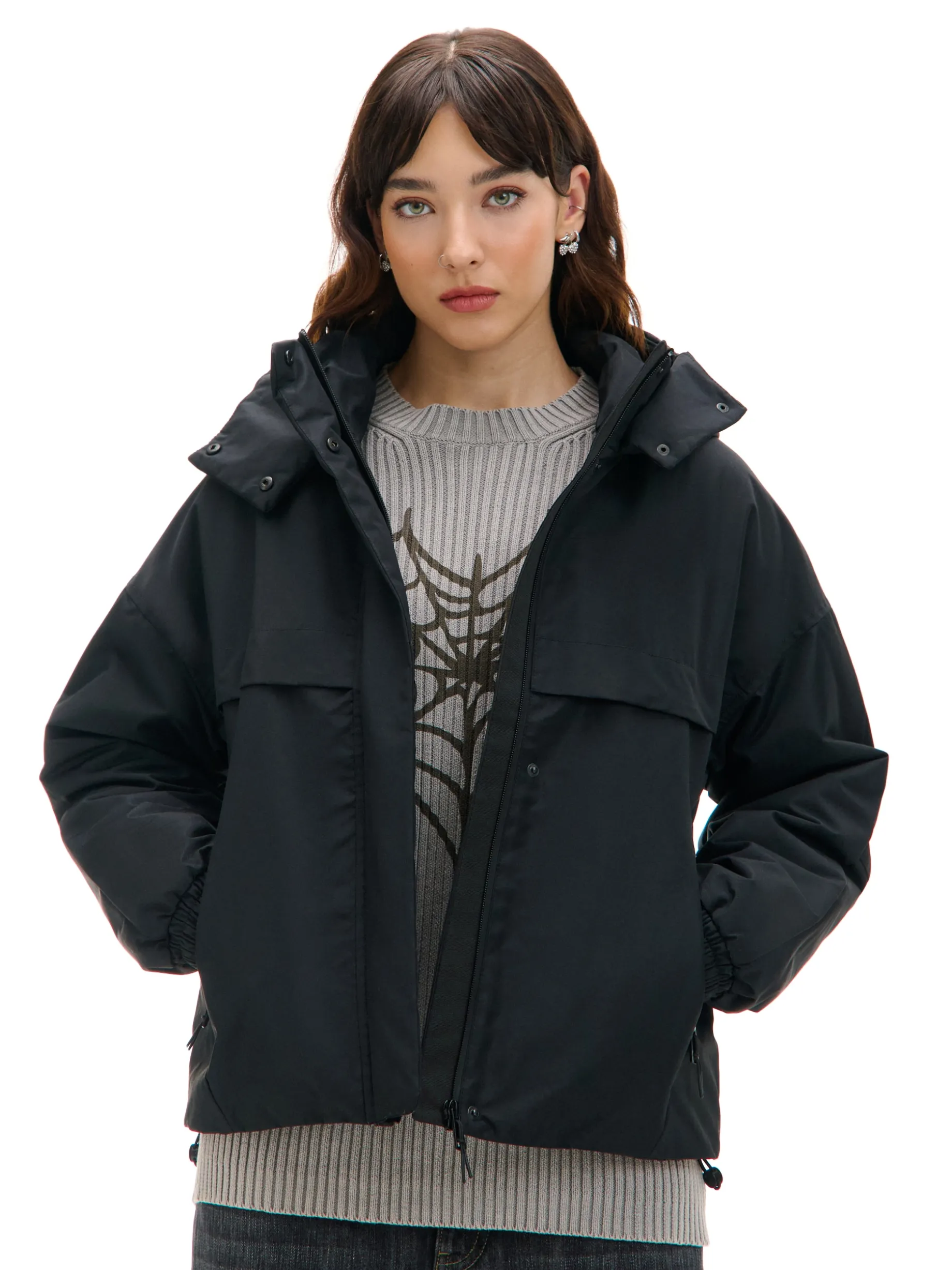 Damska kurtka przeciwdeszczowa uszyta z tkaniny z delikatnym ociepleniem. Dodatkowe regulacje zapewniają dopasowanie i chronią przed wiatrem. Idealny item na nieprzewidywalną, jesienną pogodę! ocieplana kurtka o regularnym kroju uszyta z gładkiej tkaniny o wodoodpornym wykończeniu zapięcie na zamek ukryty pod listwą z napami kaptur z regulacją szerokości za pomocą gumek ze stoperem wysoka stójka na suwak długie rękawy zakończone gumką kieszenie boczne z zamkami dół zakończony gumką ze stoperem
