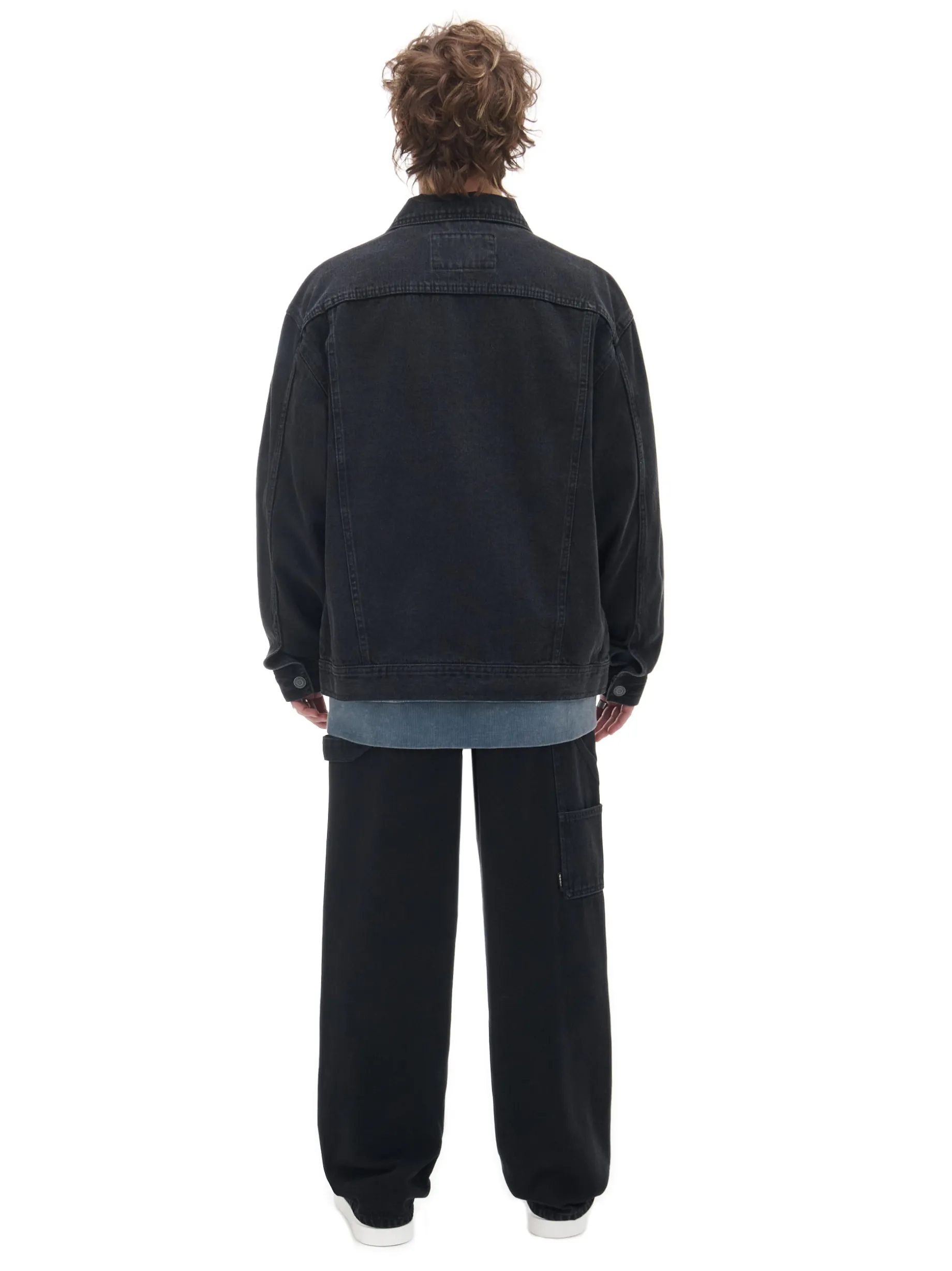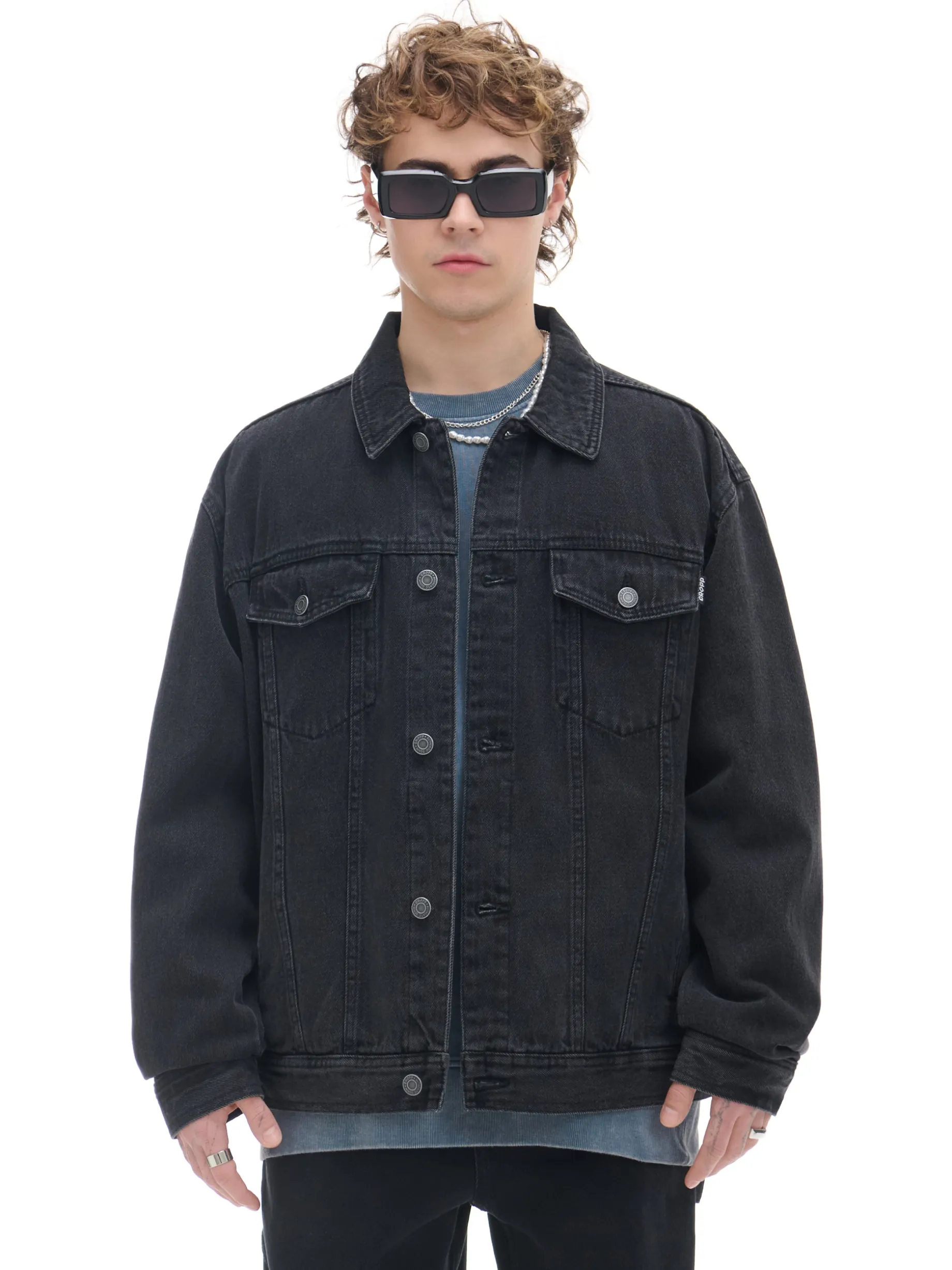 Czarna jeansowa kurtka męska o regularnym kroju, uszyta z bawełny. Kołnierzyk, zapięcie na guziki, kieszenie boczne i piersiowe. Dostępne inne warianty kolorystyczne.