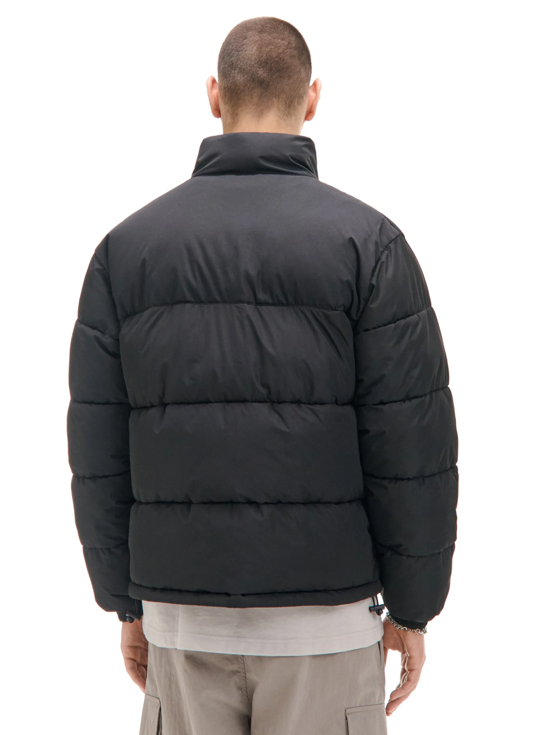 Ciepła męska kurtka typu puffer w jednolitym, czarnym kolorze. Zapinana na zamek błyskawiczny z pullerem. Przejściówka z nowoczesnym designem, która ochroni Cię przed wiatrem i jesiennym deszczem. basicowa kurtka typu puffer materiał z wodoodpornym wykończeniem wewnątrz lekkie ocieplenie i podszewka zapięcie na zamek na całej długości wysoki kołnierz długie rękawy z gumką przy mankietach kieszenie boczne z zamkami wewnątrz kieszeń zapinana na rzep regulacja dołu za pomocą gumek ze stoperami nadruk all over PROTECTION LEVEL 3rn Kurtka uszyta z tkaniny z większym ociepleniem, której właściwości zapewnią Ci nie tylko ochronę przed wiatrem i deszczem, ale też niskimi temperaturami.