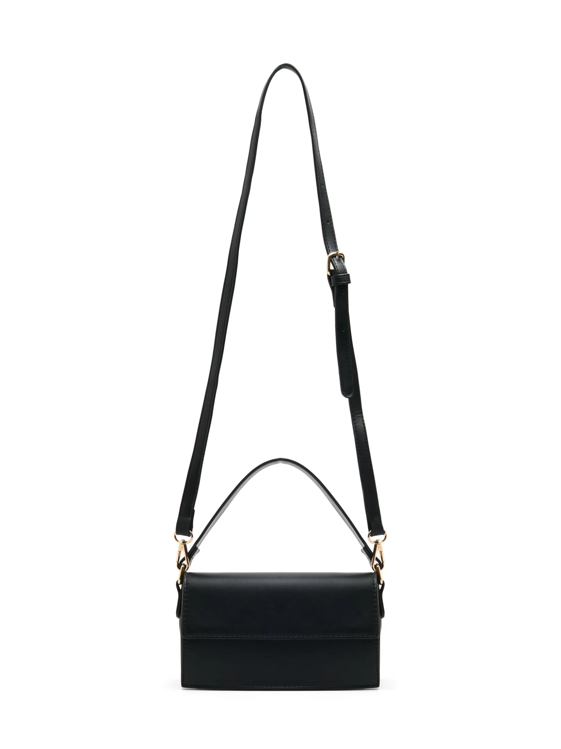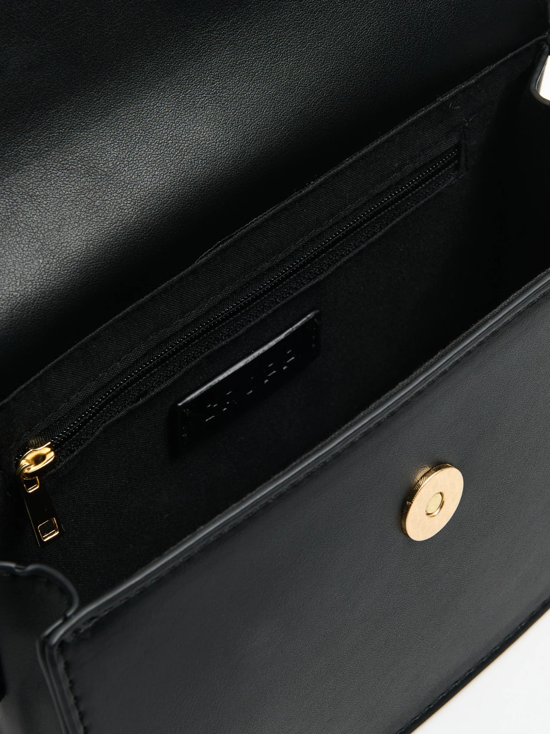Damska mała torebka uszyta z mieszanki tkanin w kolorze czarnym. Wyposażona w praktyczne zapięcie na magnes i dodatkową kieszeń z zamkiem. Możesz ją nosić w ręku lub na ramieniu, dzięki dodatkowemu paskowi z regulacją. Uniwersalna i szykowna! mała torebka typu camera bag wykonana z łączonych materiałów zapięcie na klapę z magnesem pasek w zestawie dodatkowy pasek z regulacją długości wewnątrz kieszeń zapinana na zamek