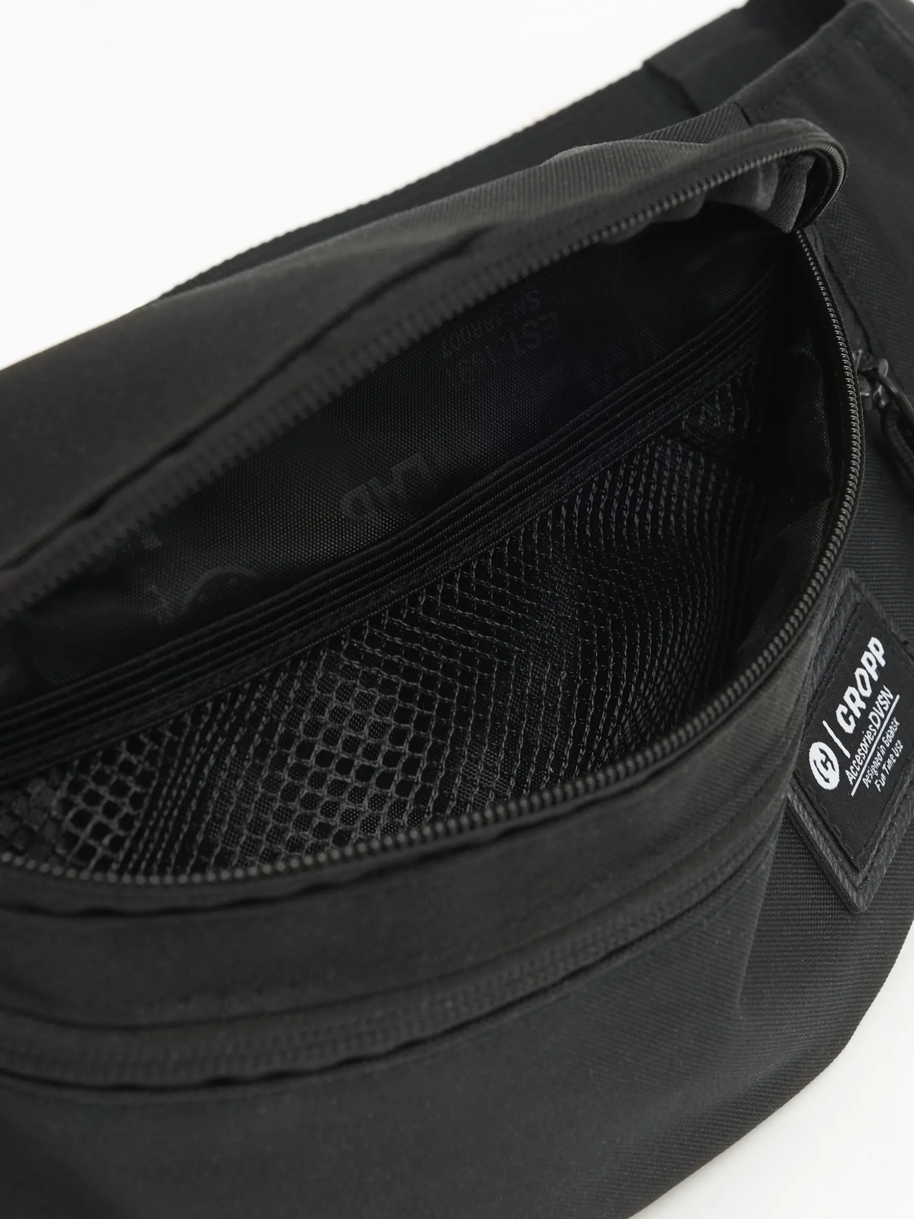 Czarna męska nerka, uszyta z wytrzymałej tkaniny. regulowany pasek, zapinany na plastikową klamrę dwie komory zapinane na zamek niewielka naszywka z przodu w środku dodatkowa kieszonka z siateczki mesh Wymiary produktu 14 x 31 x 8 cm