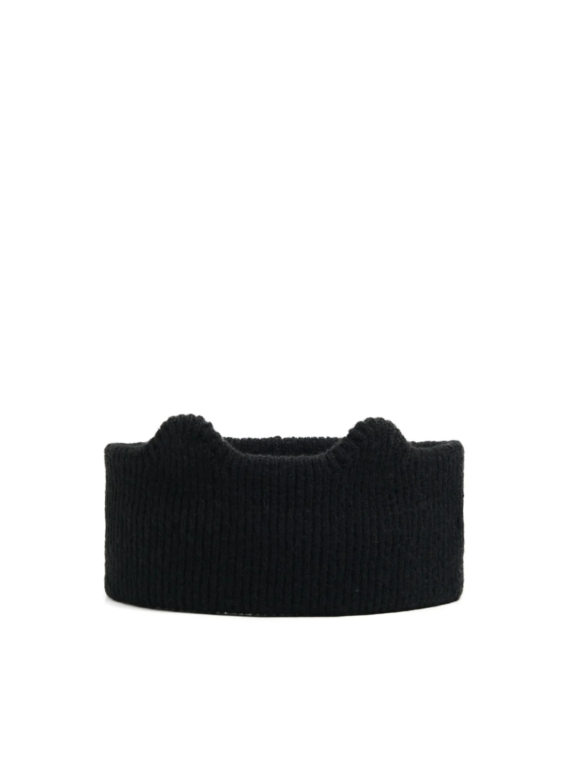 Zimowa opaska na głowę uszyta z przyjemnej w dotyku dzianiny w kolorze czarnym. Wyróżnikiem tego modelu są urocze uszy na przodzie.