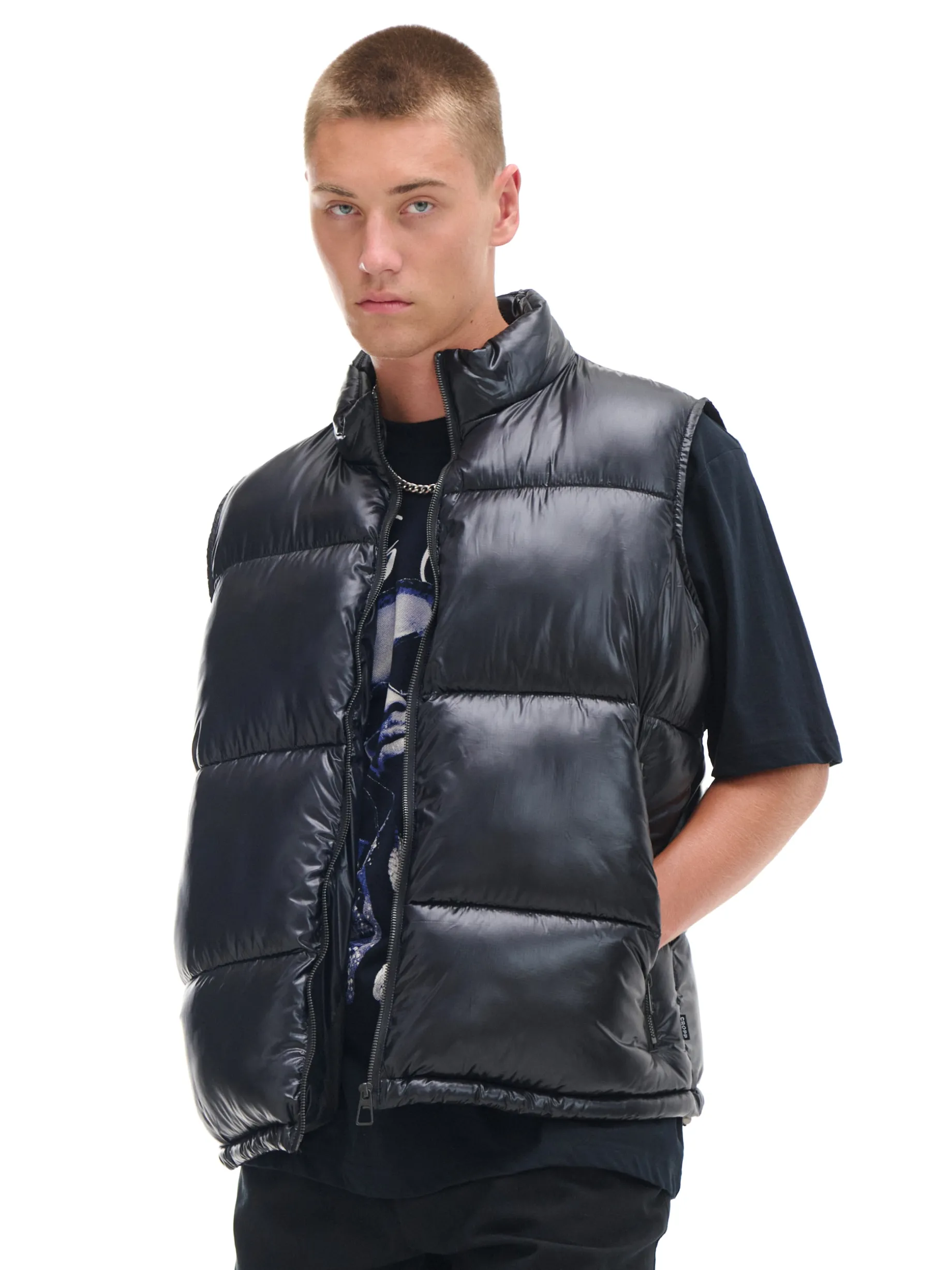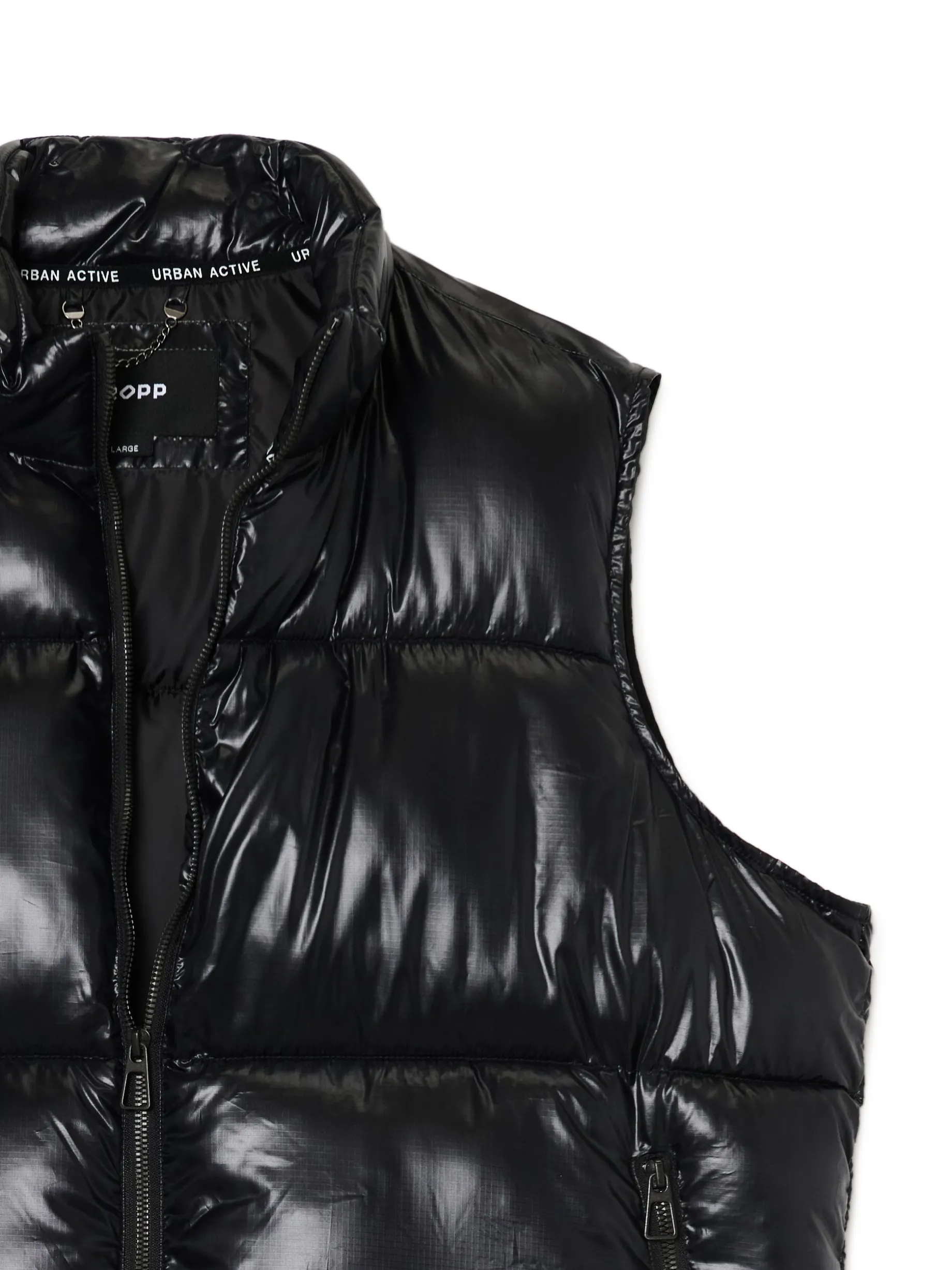 Kamizelka męska na sezon przejściowy, uszyta z pikowanej tkaniny w kolorze czarnym. pikowanie na całości zapinana na zamek na całej długości regulacja dołu za pomocą gumki ze ściągaczem dwie kieszenie z zamkami po bokach wewnątrz kieszeń zapinana na rzep Wzrost modela: 185 cm PROTECTION LEVEL 3 Kamizelka uszyta z tkaniny z większym ociepleniem, której właściwości zapewnią Ci nie tylko ochronę przed wiatrem i deszczem, ale też niskimi temperaturami.