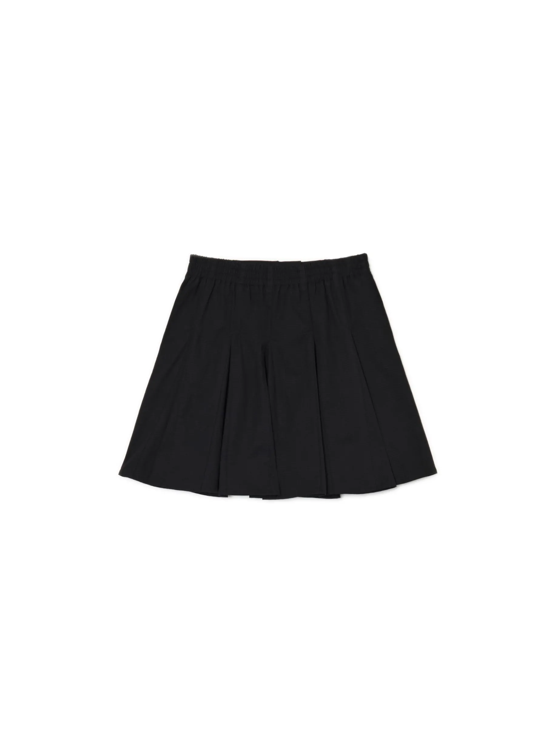 Damska spódnica o długości mini, uszyta z materiału o dużej zawartości bawełny w kolorze czarnym. Wyjątkowy model z dodatkowymi wstawkami dla zwiększenia komfortu ruchu. dzianinowy materiał z bawełną długość mini zapięcie na zamek i guzik w pasie od wewnątrz wszyta gumka