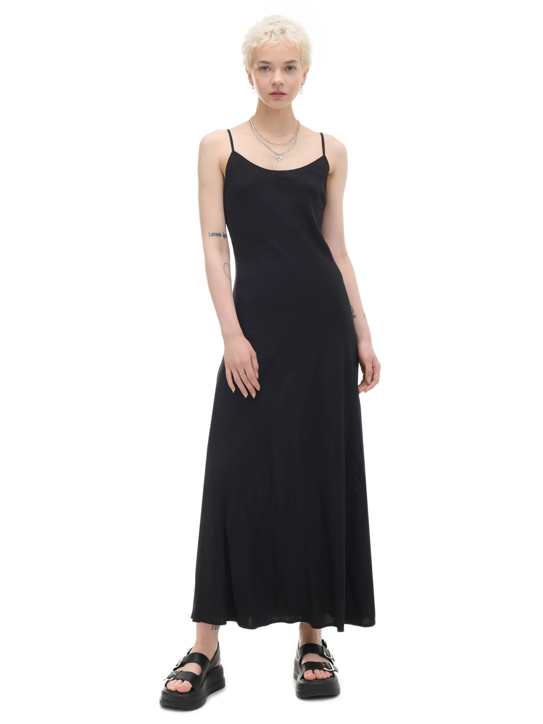 Sukienka na ramiączkach o długości maxi z półokrągłym dekoltem, uszyta z lekkiej wiskozowej tkaniny. Idealna na letnie dni! 100% wiskozy długość maxi i dopasowany krój delikatne taliowanie półokrągły dekolt wąskie ramiączka z regulacją długości