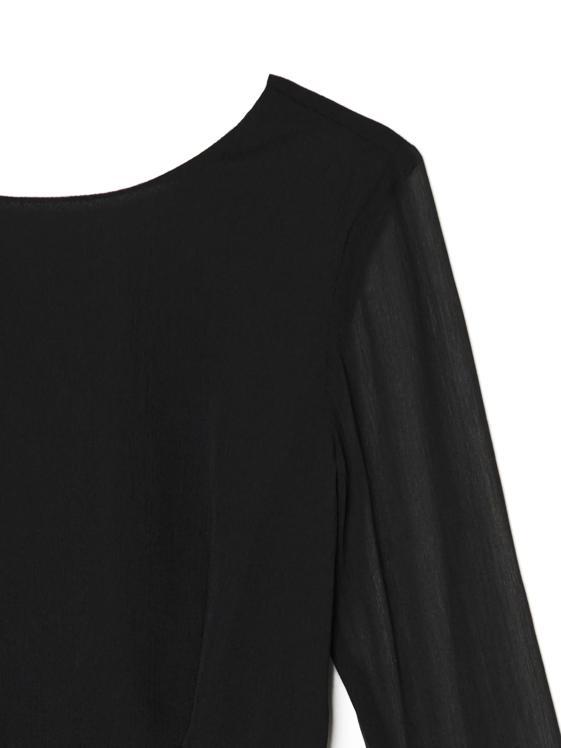 Łap szyfonową damską sukienkę z delikatnymi falbanami na dole i przy rękawach. Ten klasyczny czarny kolor będzie wyglądał sztosowo podczas świątecznych meetingów z rodziną i nie tylko. uszyta z szyfonowej tkaniny długość mini i dopasowany krój lekko rozkloszowany dół odcięcie w talii zapięcie na kryty zamek z boku dekolt w łódkę rękawy z gumką i efektowną falbanką ozdobne wiązanie na plecach ozdobne marszczenia
