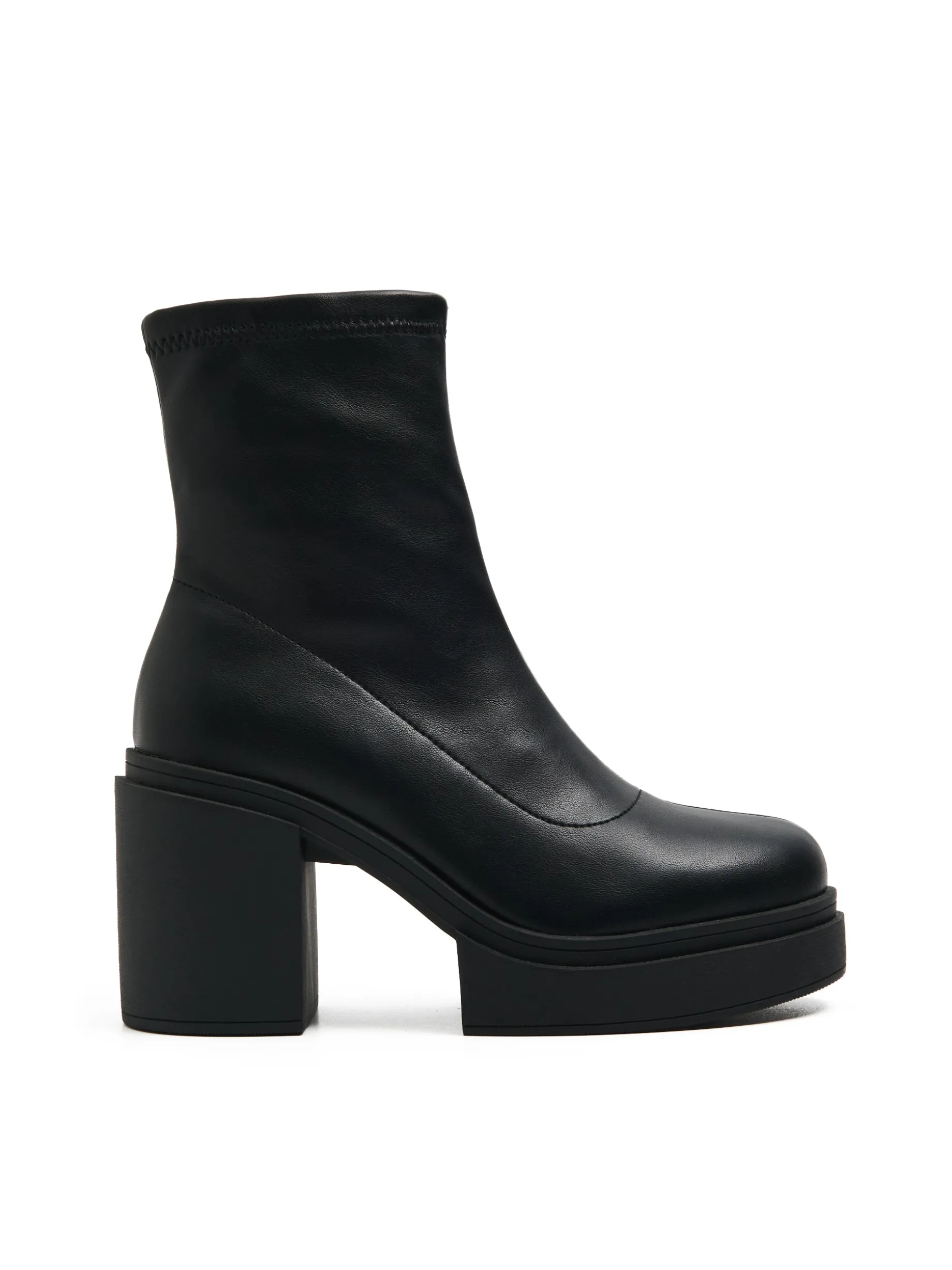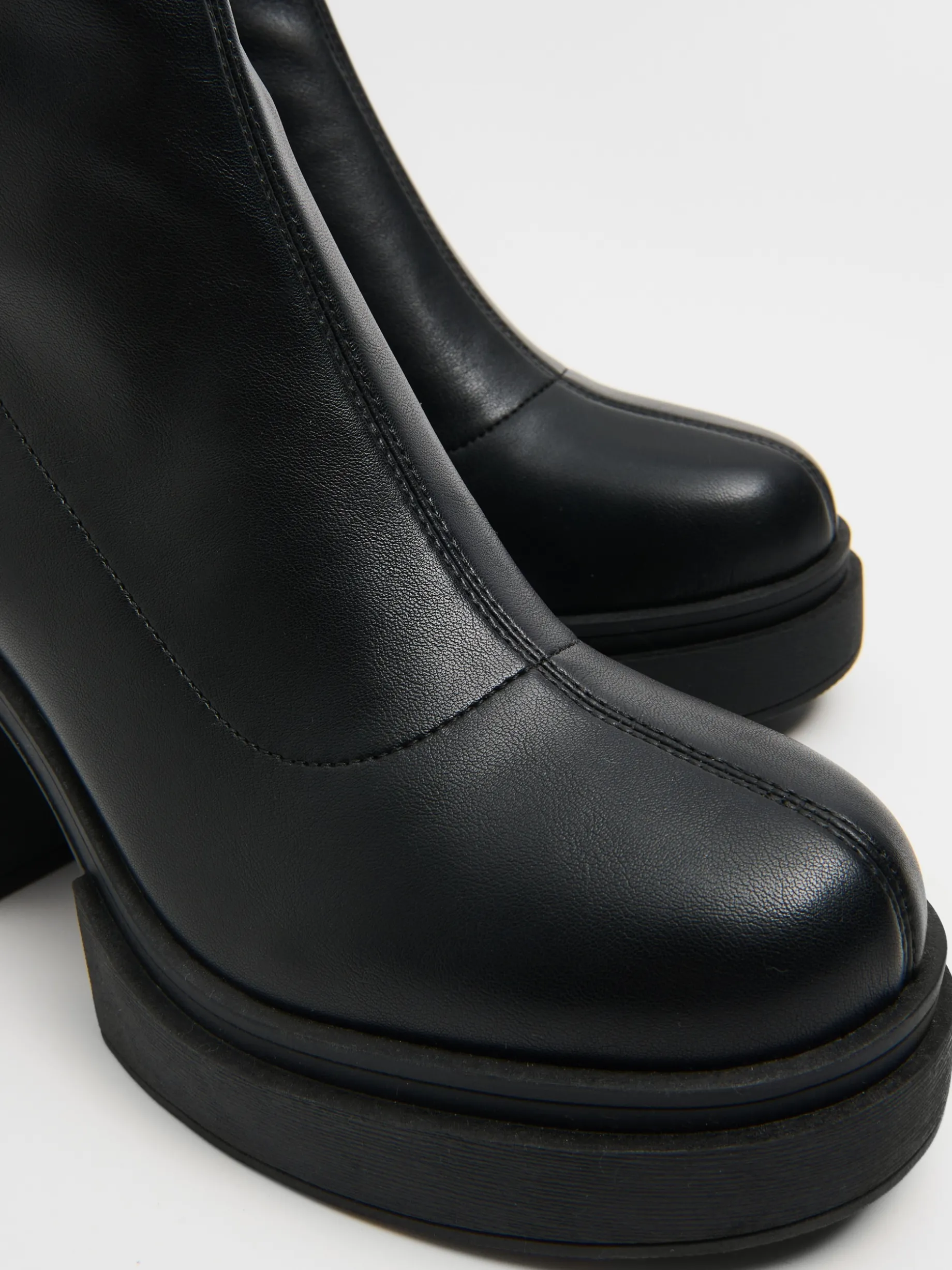 Polecamy te damskie botki uszyte w czarnym kolorze z wysoką cholewką. Są stworzone zadań specjalnych, dzięki wytrzymałemu materiałowi ze sztucznej skóry. Poza tym genialnie prezentują się z długimi płaszczami i futerkami. botki za kostkę cholewka z imitacji skóry traperowa, masywna podeszwa i obcas obcas w formie słupka ozdobne przeszycia