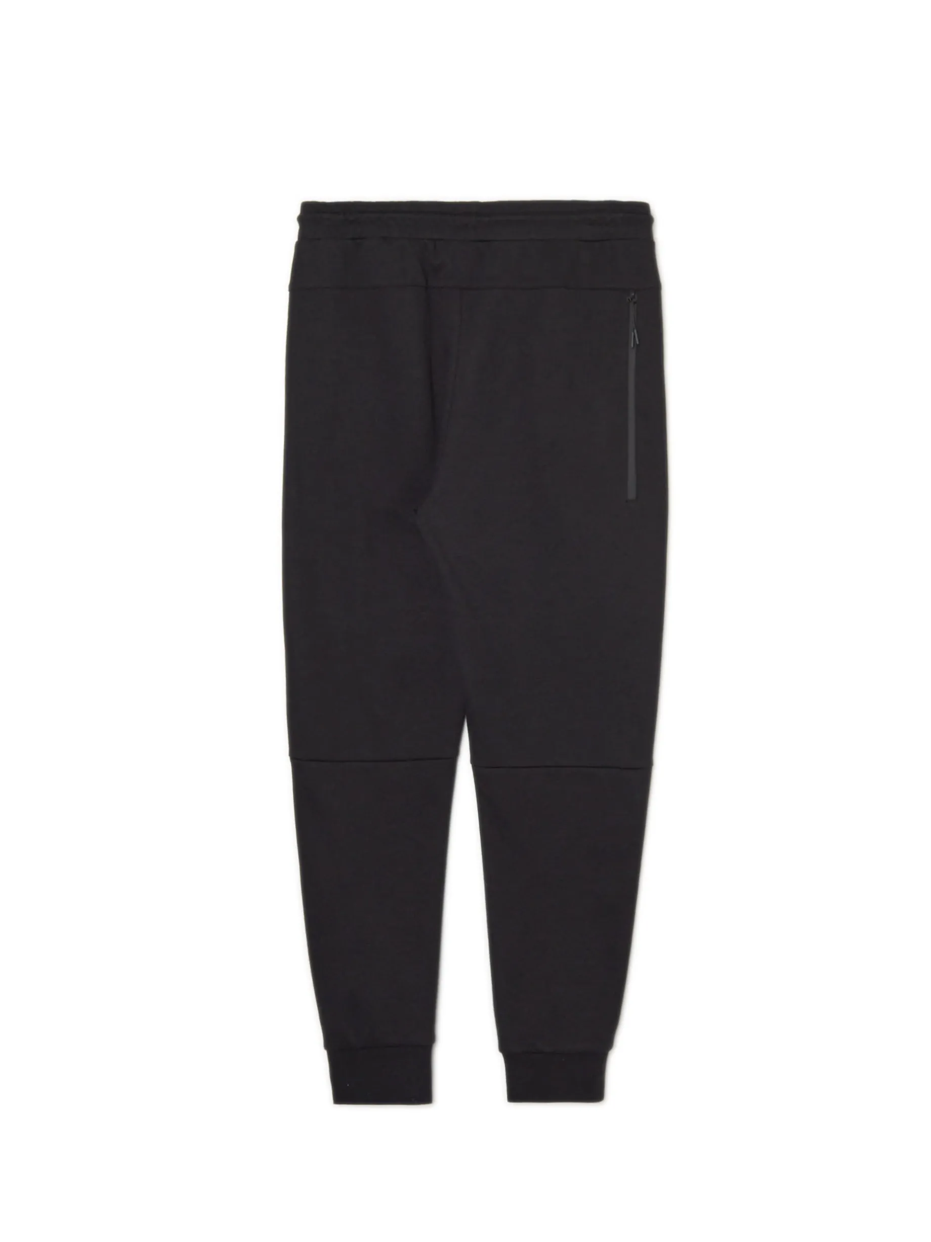 Męskie spodnie dresowe o kroju typu jogger slim, wykonane z dzianiny zawierającej bawełnę. regularny stan w pasie elastyczna gumka oraz sznurek do regulacji długa nogawka, zakończona ściągaczem z gumką trzy kieszenie, jedna zapinana na suwak przeszycia na nogawkach