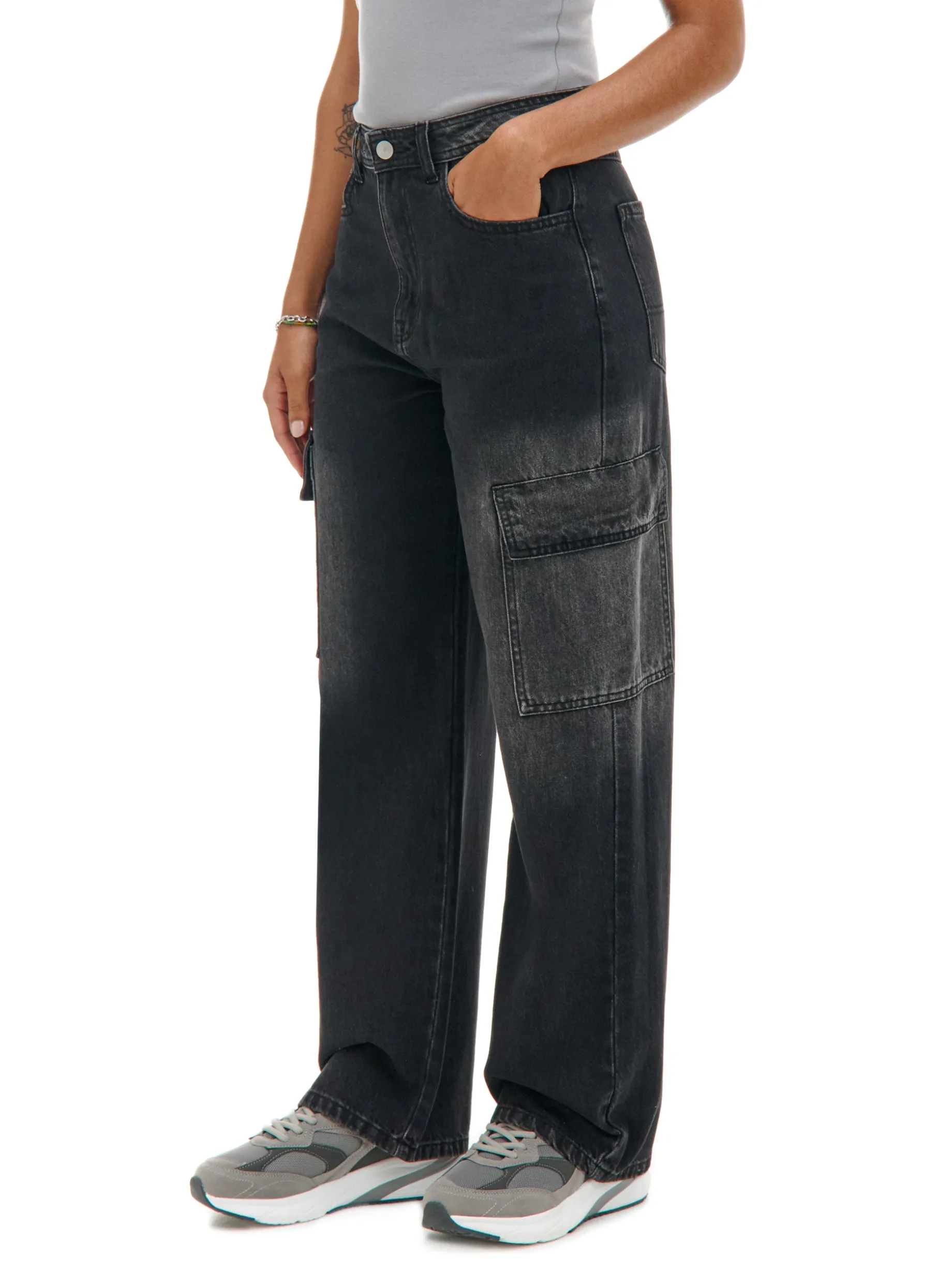 Damskie spodnie jeansowe o kroju baggy, uszyte z bawełnianej tkaniny z miejscowym efektem sprania. Luźne i wygodne, sprawdź! 100% bawełny obszerny krój baggy model petite – odpowiedni dla niższych osób zapięcie na zamek i guzik długie, szerokie nogawki pięć kieszeni dodatkowe kieszenie cargo na nogawkach szlufki na pasek delikatny efekt sprania Szukasz wersji tall? Kliknij tutaj: 733AQ-99M . Czekasz na wersję regular? Już jest: 748AQ-99M .