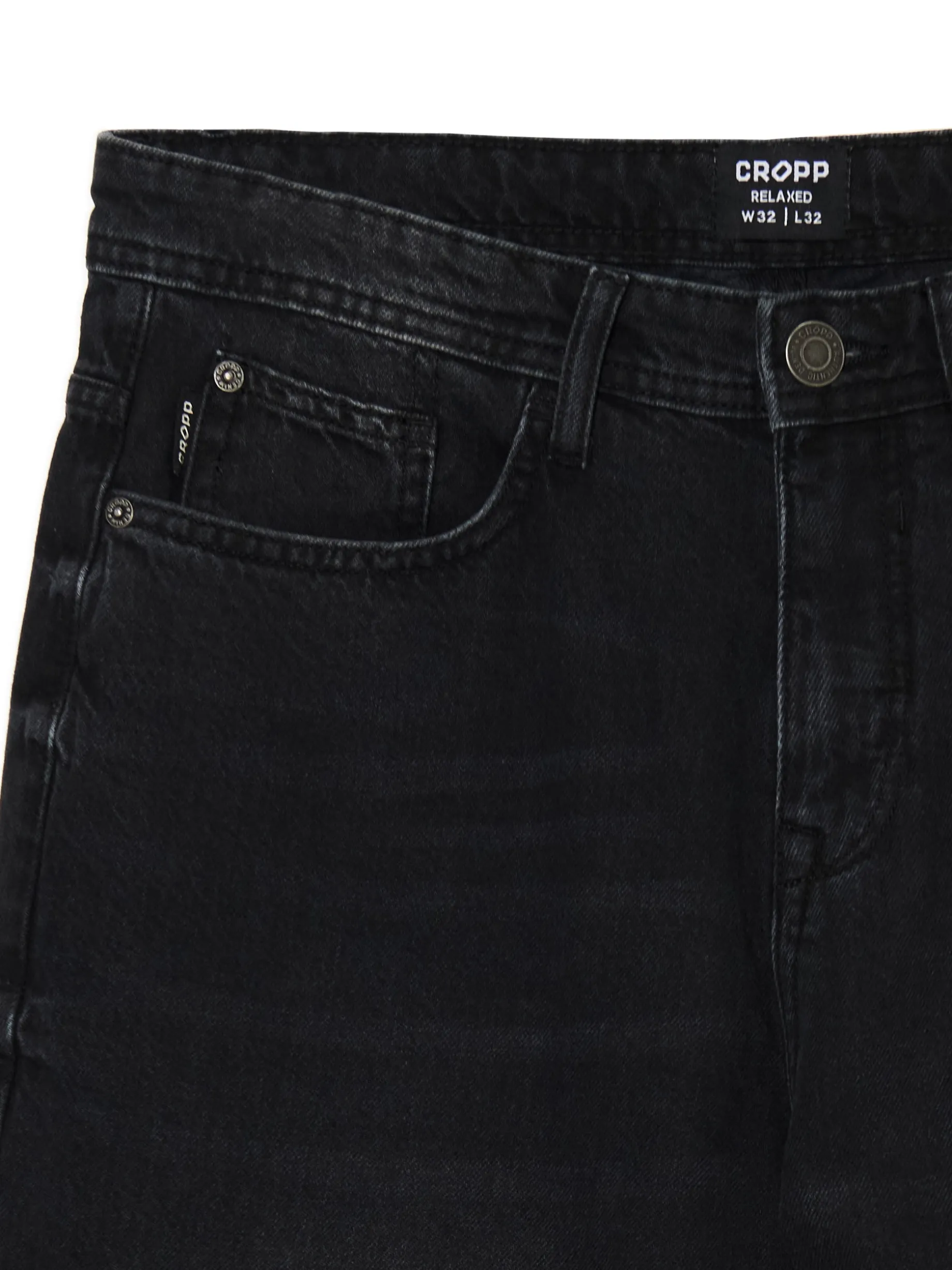 Męskie spodnie jeansowe typu relaxed, uszyte z bawełnianej tkaniny w czarnym kolorze. Szlufki blisko siebie to praktyczne rozwiązanie na zmęczone ręce po całym dniu. Zrelaksuj się! 100% bawełny prosty krój zapięcie na zamek i guzik wąskie szlufki na pasek pięć kieszeni delikatny efekt sprania