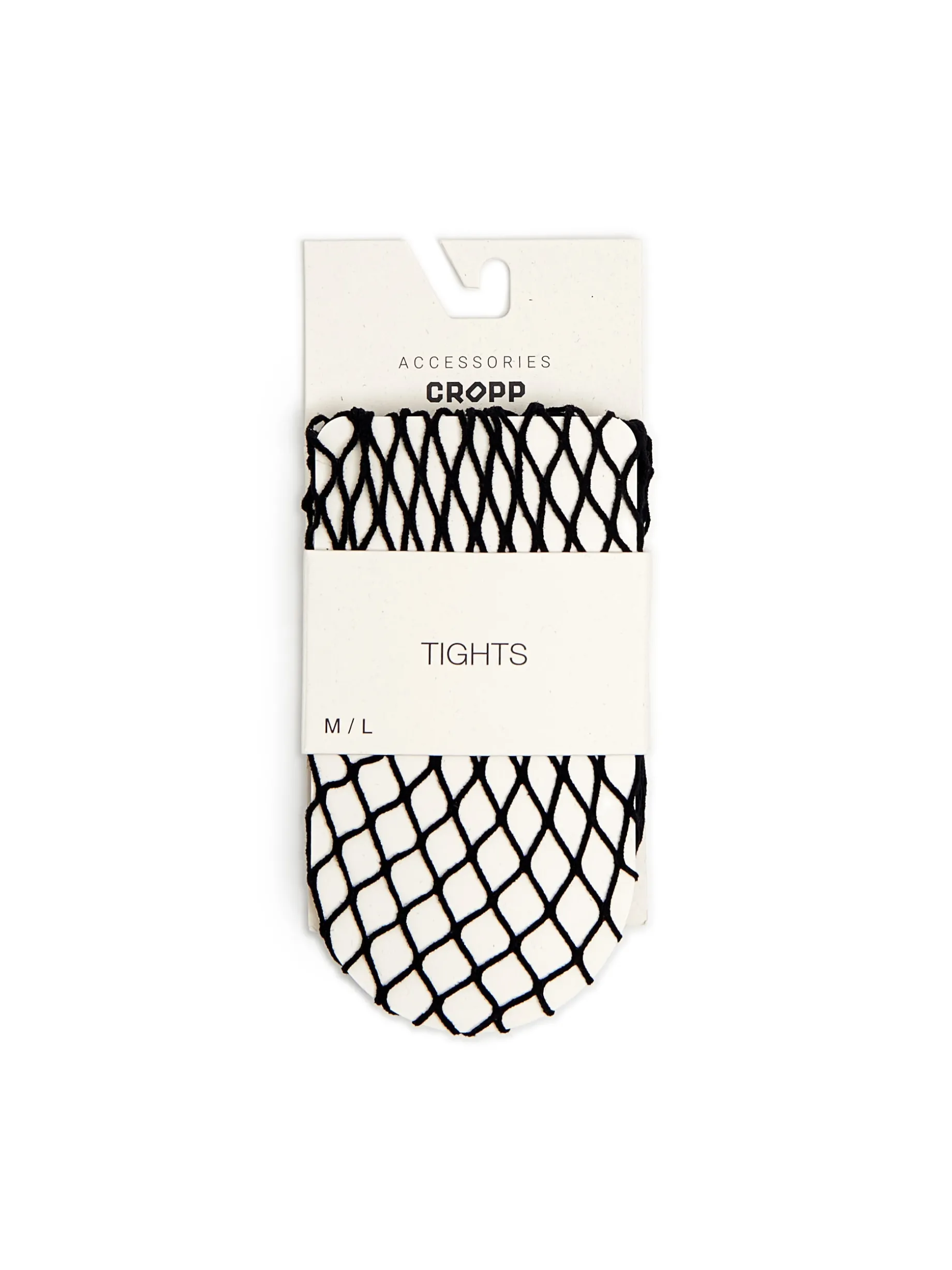 Para damskich rajstop typu kabaretki z dużymi oczkami uszyte z dzianiny w czarnym kolorze.