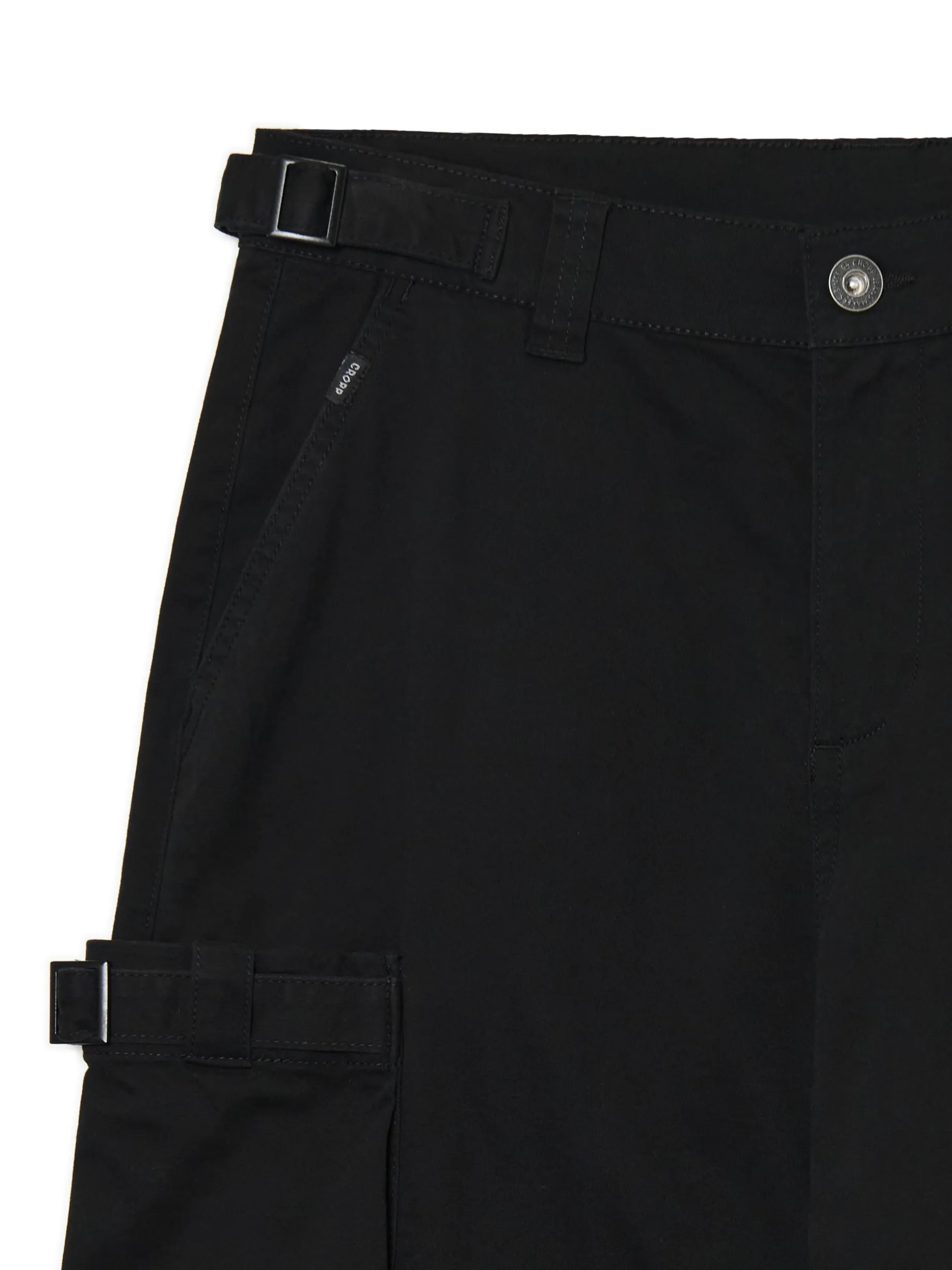 Spodnie męskie o luźnym kroju, uszyte z mieszanki tkaniny. Dodatkowe regulacje w pasie i przy kieszeniach zapewnią komfort i dopasują item do każdej sylwetki. bawełna z dodatkiem elastycznych włókien swobodny, luźny krój zapięcie na zamek i guzik w talii paski z mini klamrami wąskie szlufki na pasek skośne kieszenie po bokach naszywane kieszenie z tyłu dodatkowe kieszenie cargo na nogawkach dwa wąskie, regulowane paski dodatkowa pętelka do zawieszania np. otwieracza do piwa