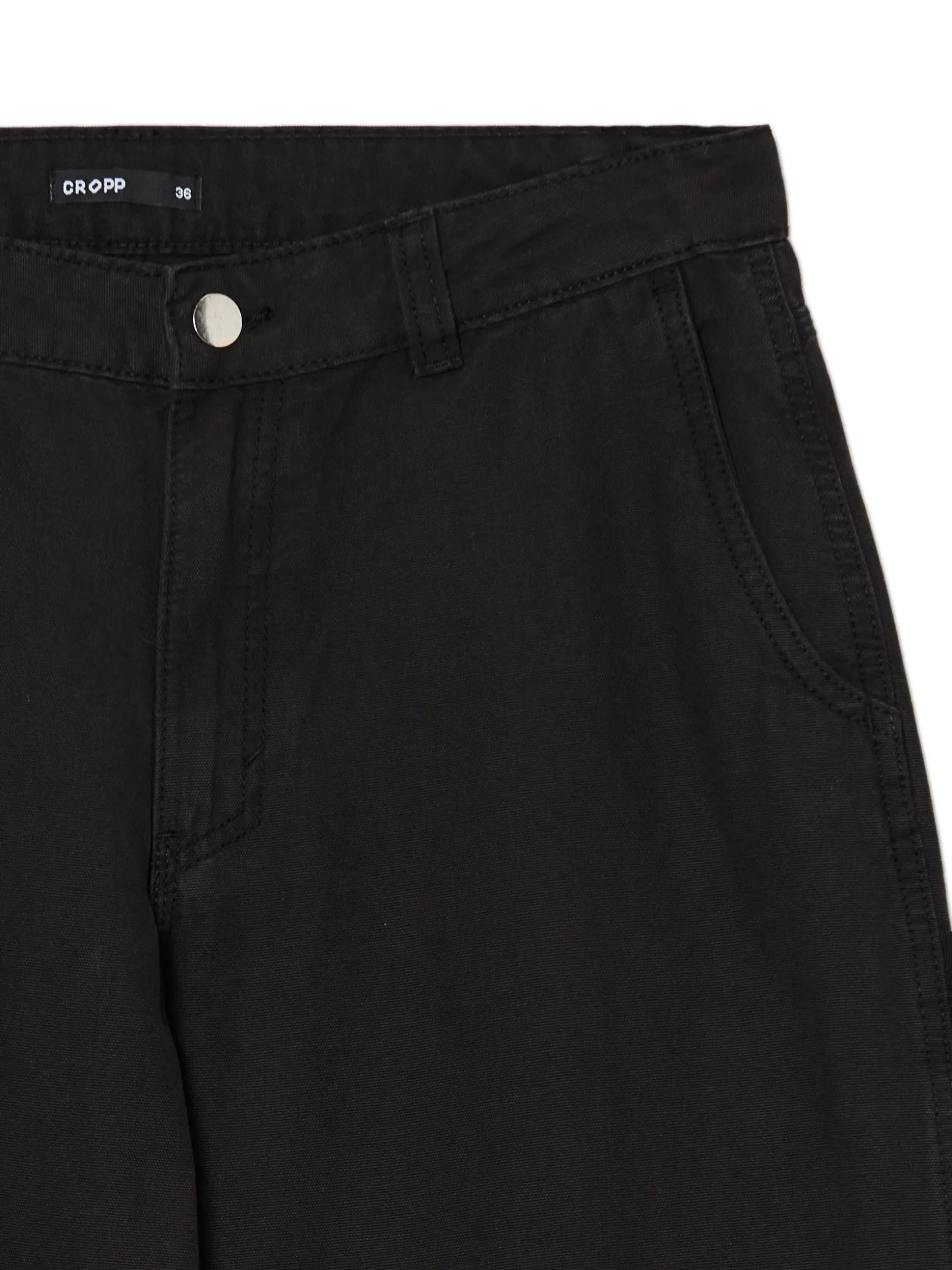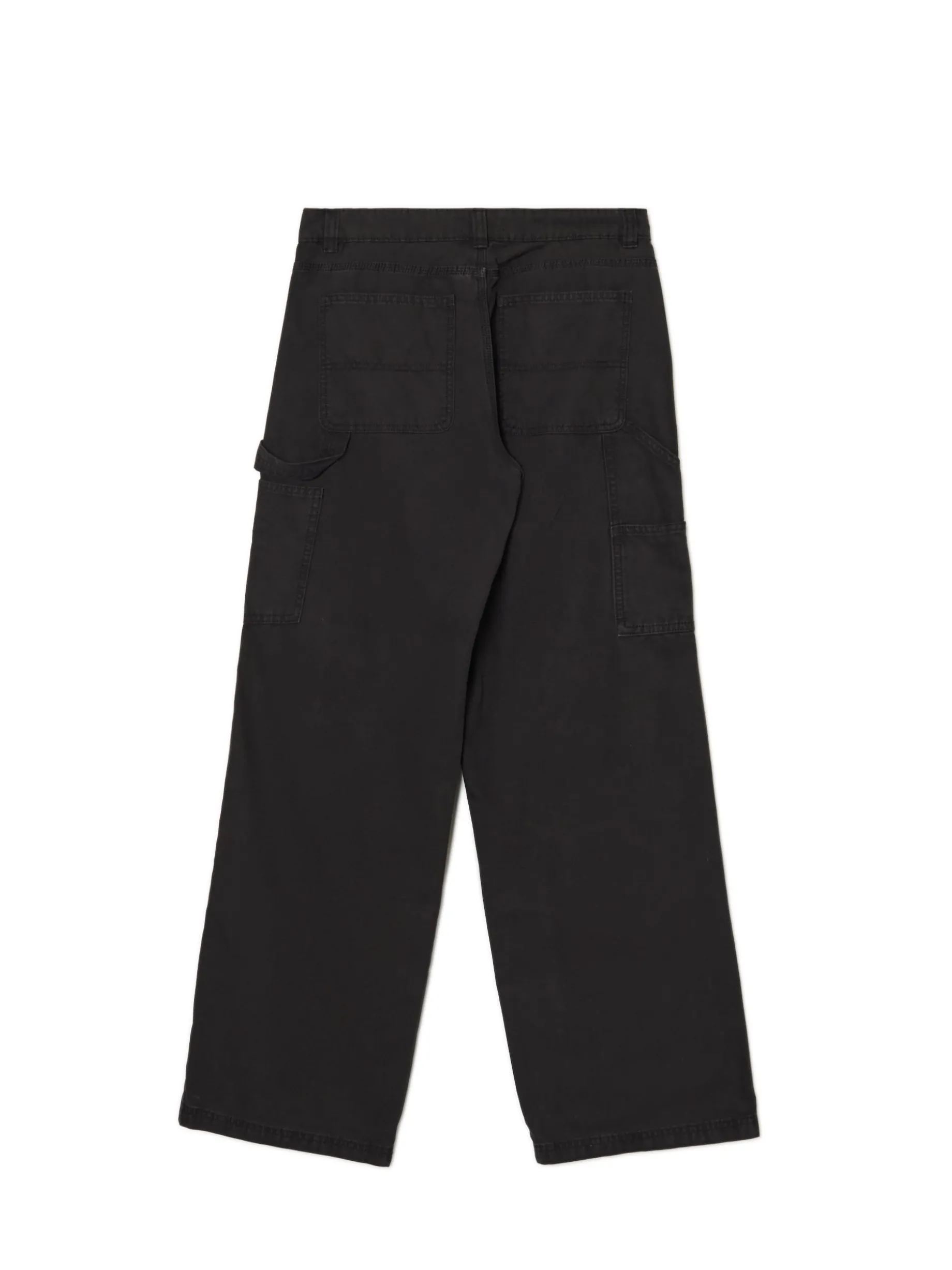 Damskie spodnie uszyte z grubego bawełnianego canvasu w gładkim, czarnym. Solidny, wygodny i stylowy item do zadań specjalnych. 100% bawełny niski stan zapięcie na zamek i guzik długie, proste nogawki dwie skośne kieszenie z przodu dwie naszyte kieszenie tylnie dodatkowe kieszenie carpenter hammer loop na lewej nogawce szlufki na pasek