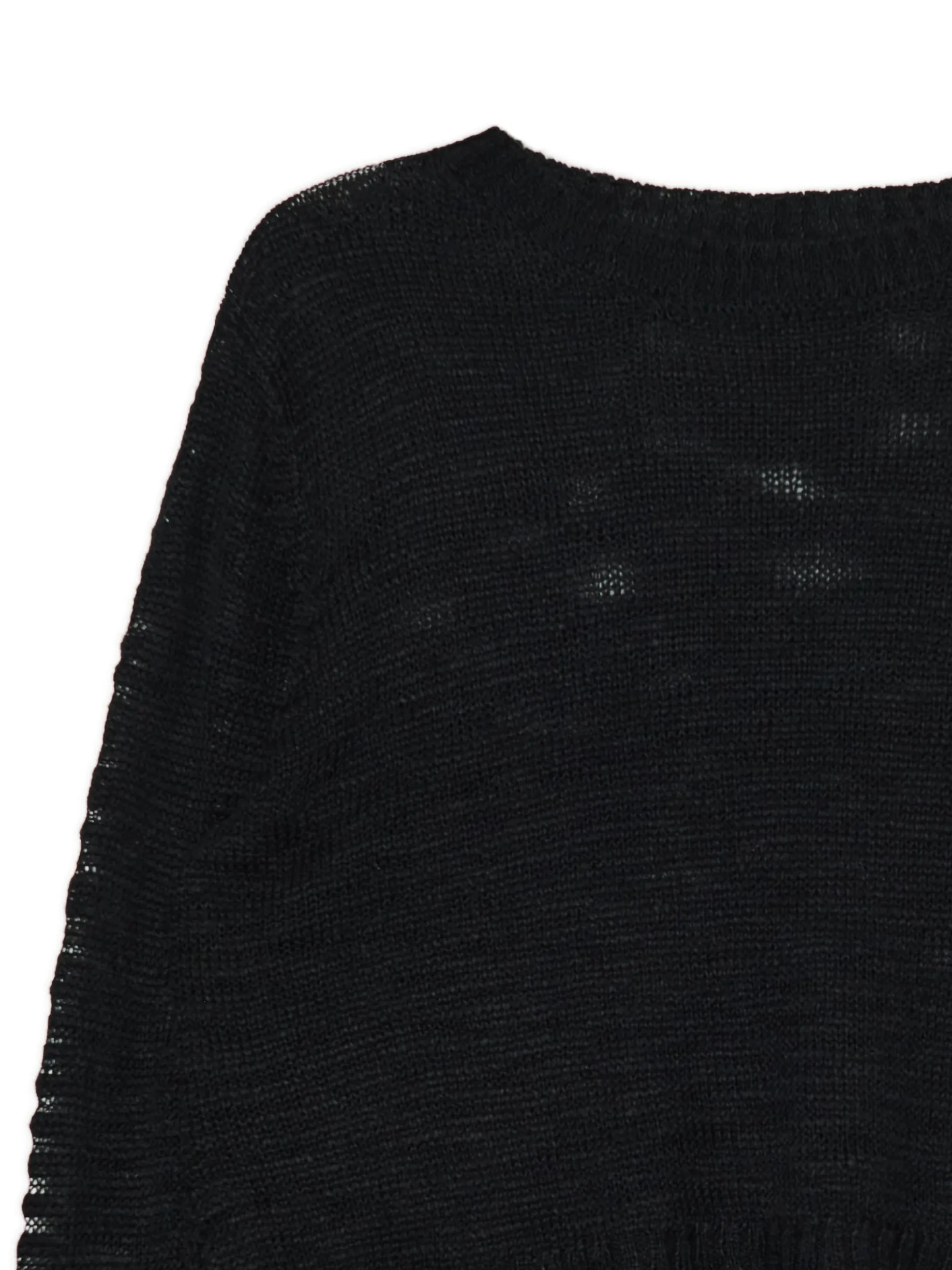 Damski sweter o krószym kroju z długimi rękawami, uszyty z prześwitującego materiału. Fituje z różnego typu koszulkami na ramiączkach i topami. wyjątkowo mocny, a jednocześnie wygodny materiał regularny krój półokrągły dekolt z lamówką długie, swobodne rękawy dekoracyjne rozcięcia po bokach
