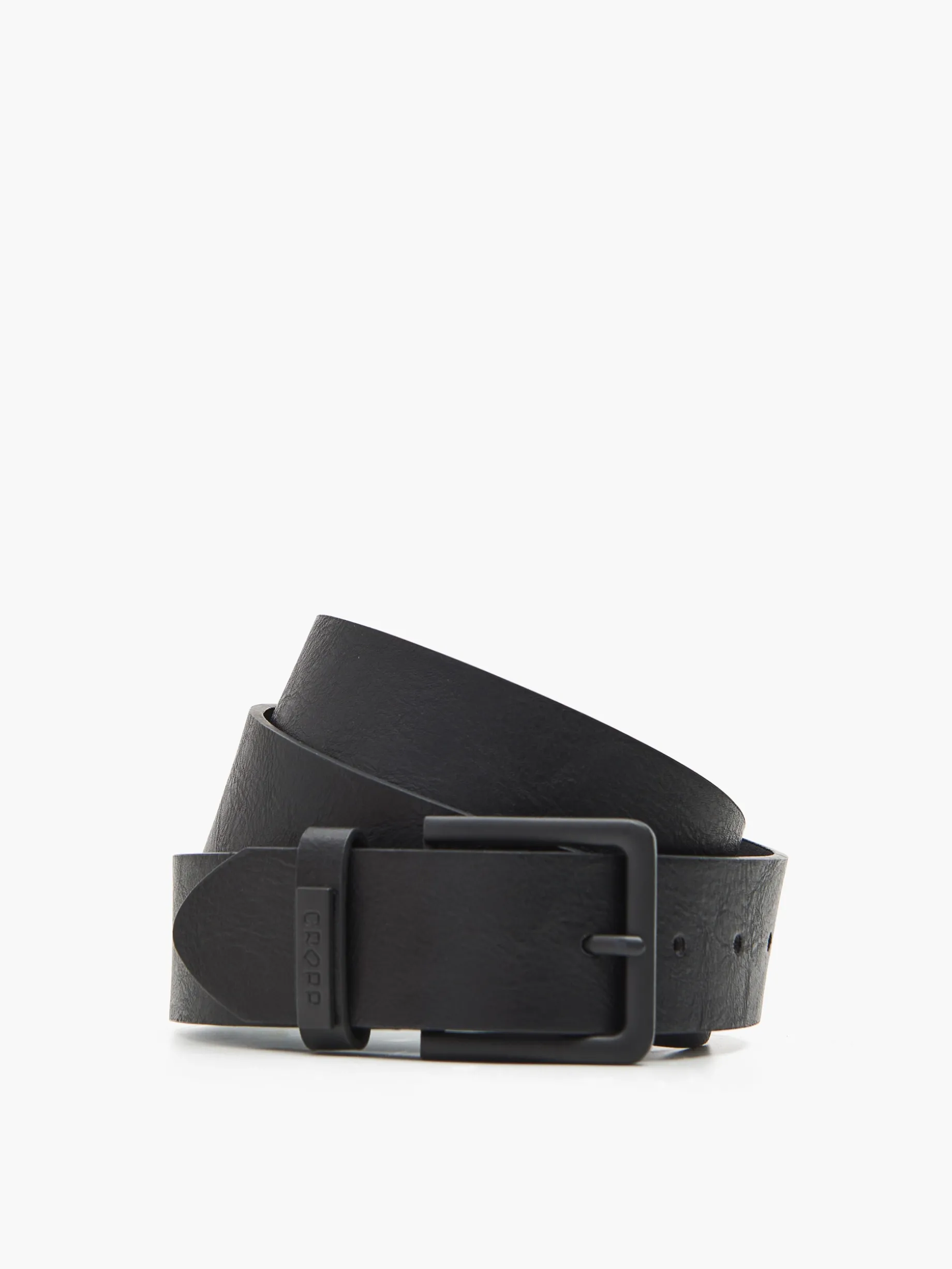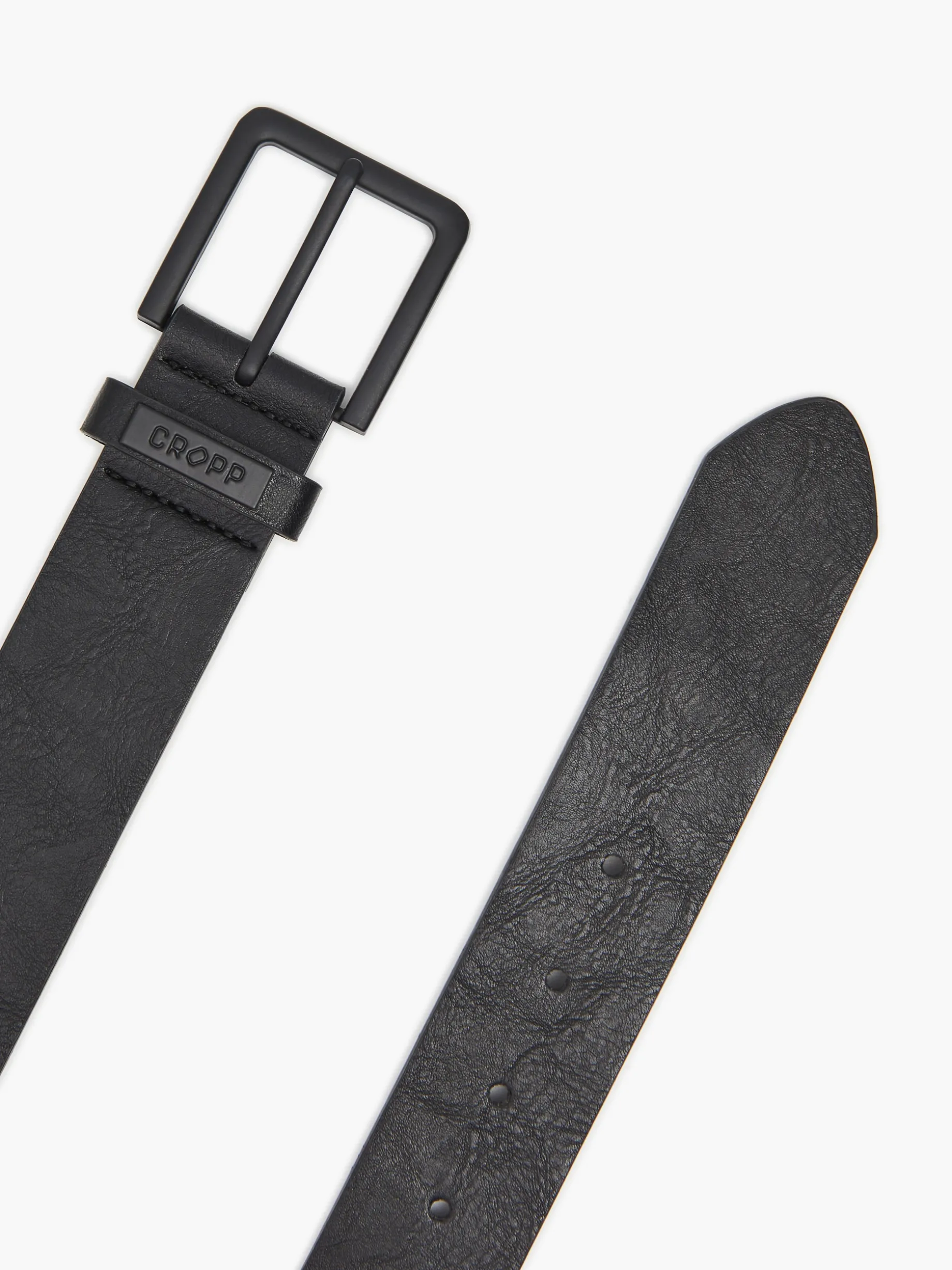Męski pasek do spodni w kolorze czarnym, wykonany z imitacji skóry.