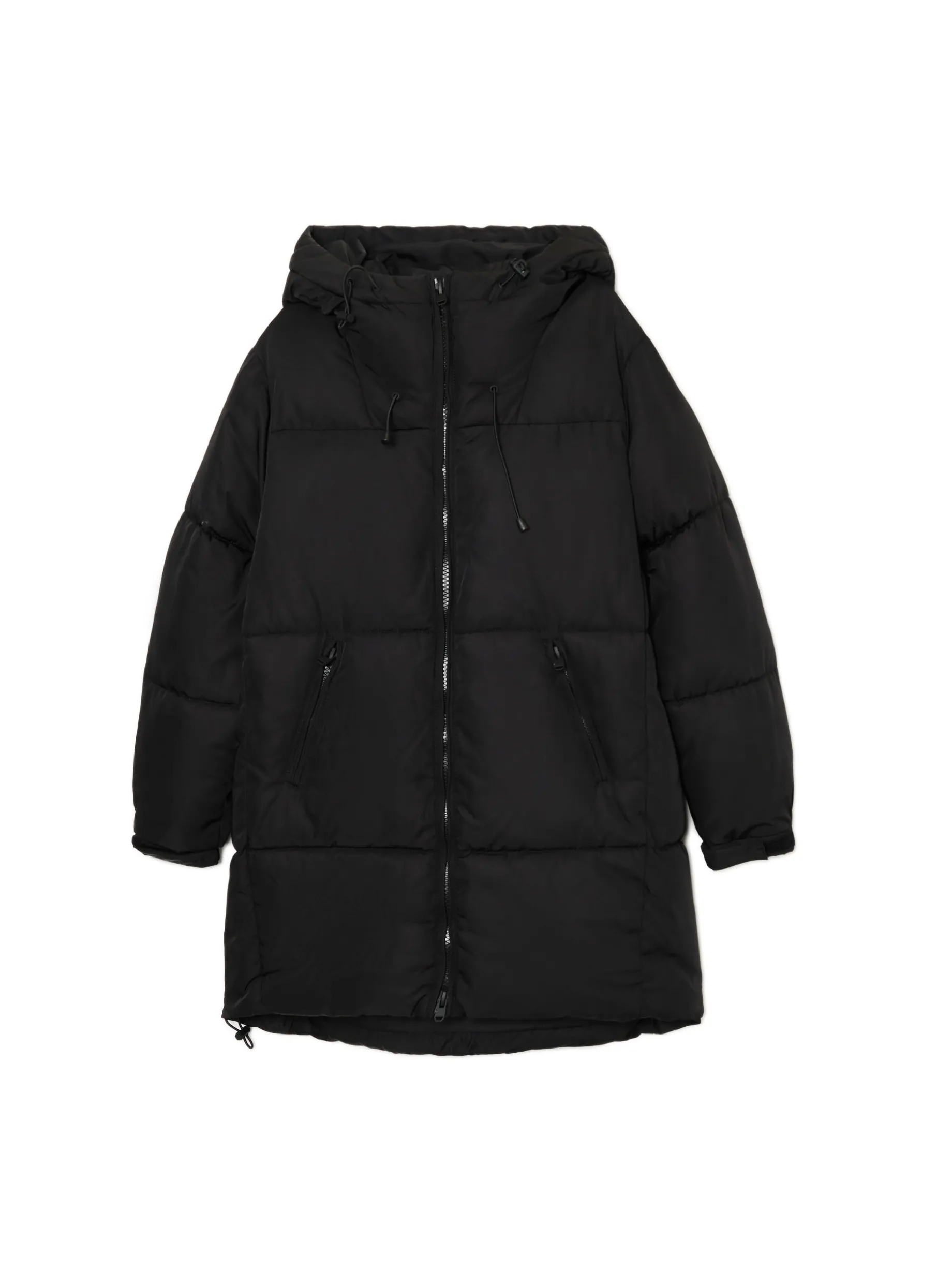 W życiu warto zachować balans. Oprócz nieszablonowych outerwearów na sezon przejściowy, proponujemy także nasze klasyki. Ten damski pikowany płaszcz o regularnym kroju uszyty z trwałej tkaniny, będzie idealnym dodatkiem do Twoich stylizacji. długi pikowany płaszcz typu puffer pikowanie na całości regularny krój miękka polarowa poszewka zapięcie na podwójny zamek praktyczny kaptur ze stójką, regulowany gumką ze stoperami tunel pod dekoltem z dekoracyjnymi troczkami długie rękawy z regulowanymi mankietami kieszenie boczne z zamkami dół wykończony gumką ze stoperami