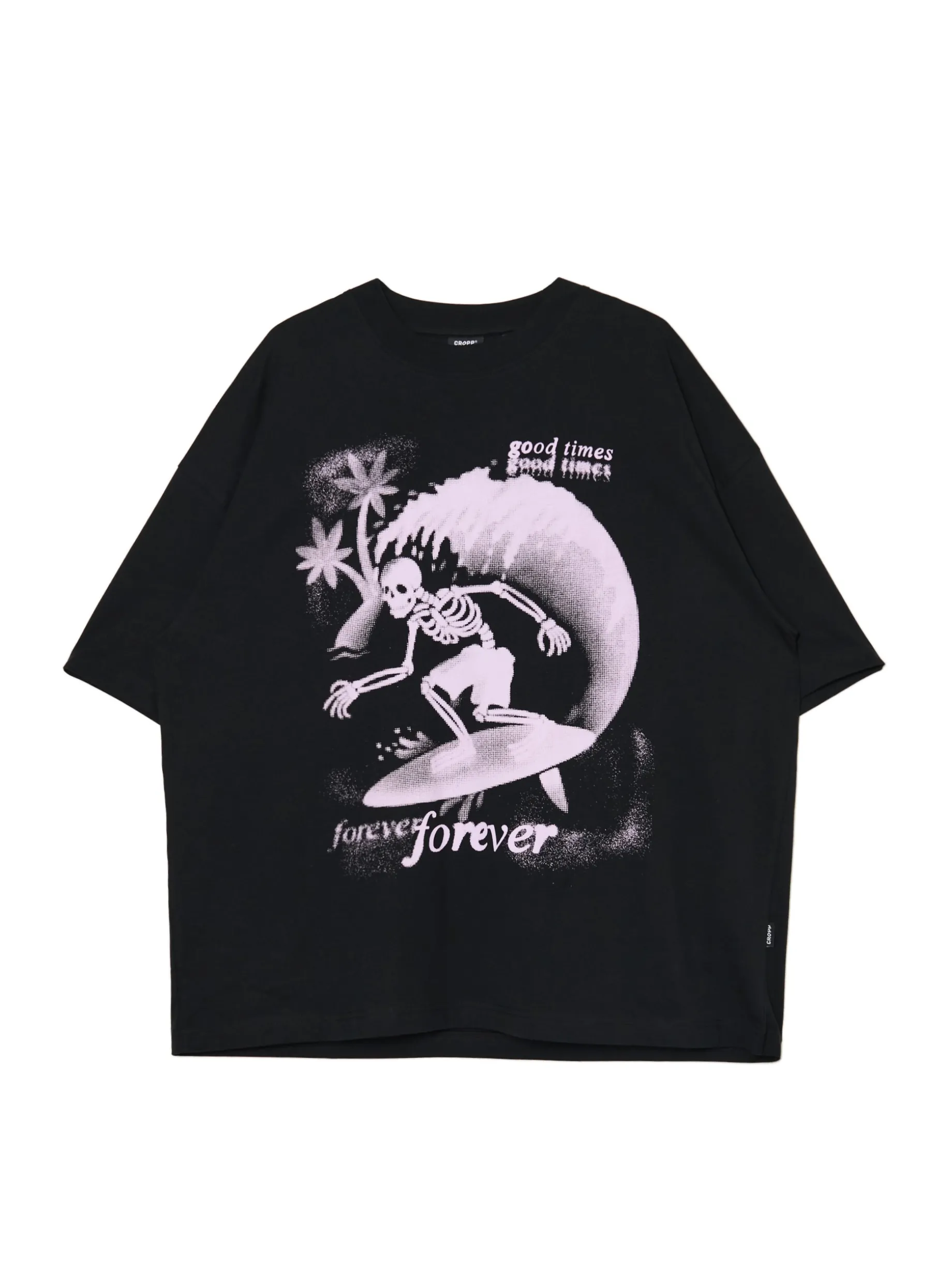 Ten męski T-shirt w czarnym kolorze, uszyty z bawełnianego materiału z kontrastowym nadrukiem wyróżni Cię w tłumie. 100% bawełny obszerny krój boxy krótkie, proste rękawy duży nadruk z przodu