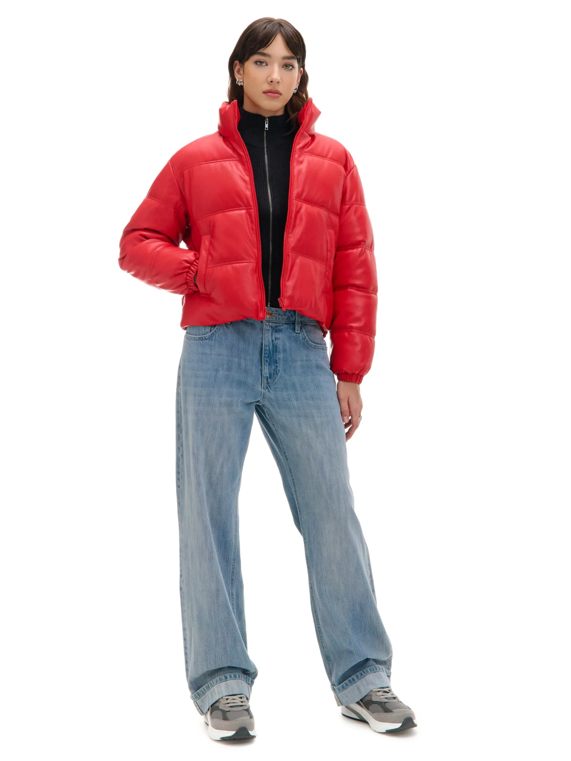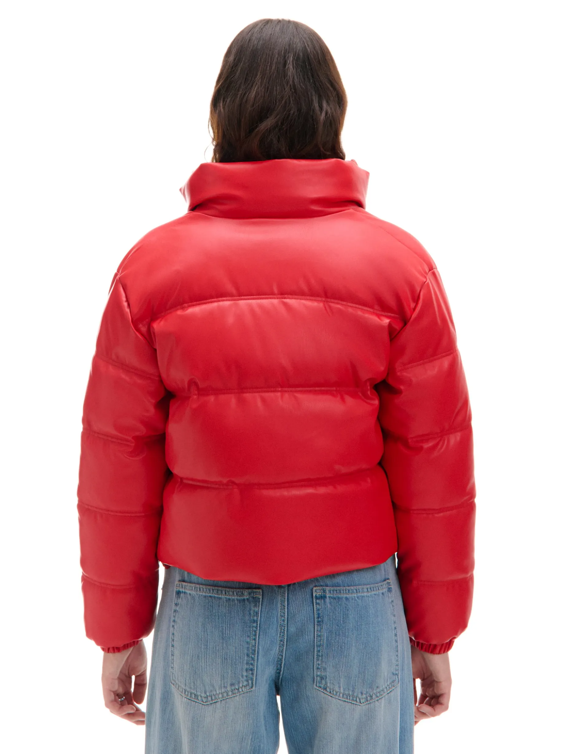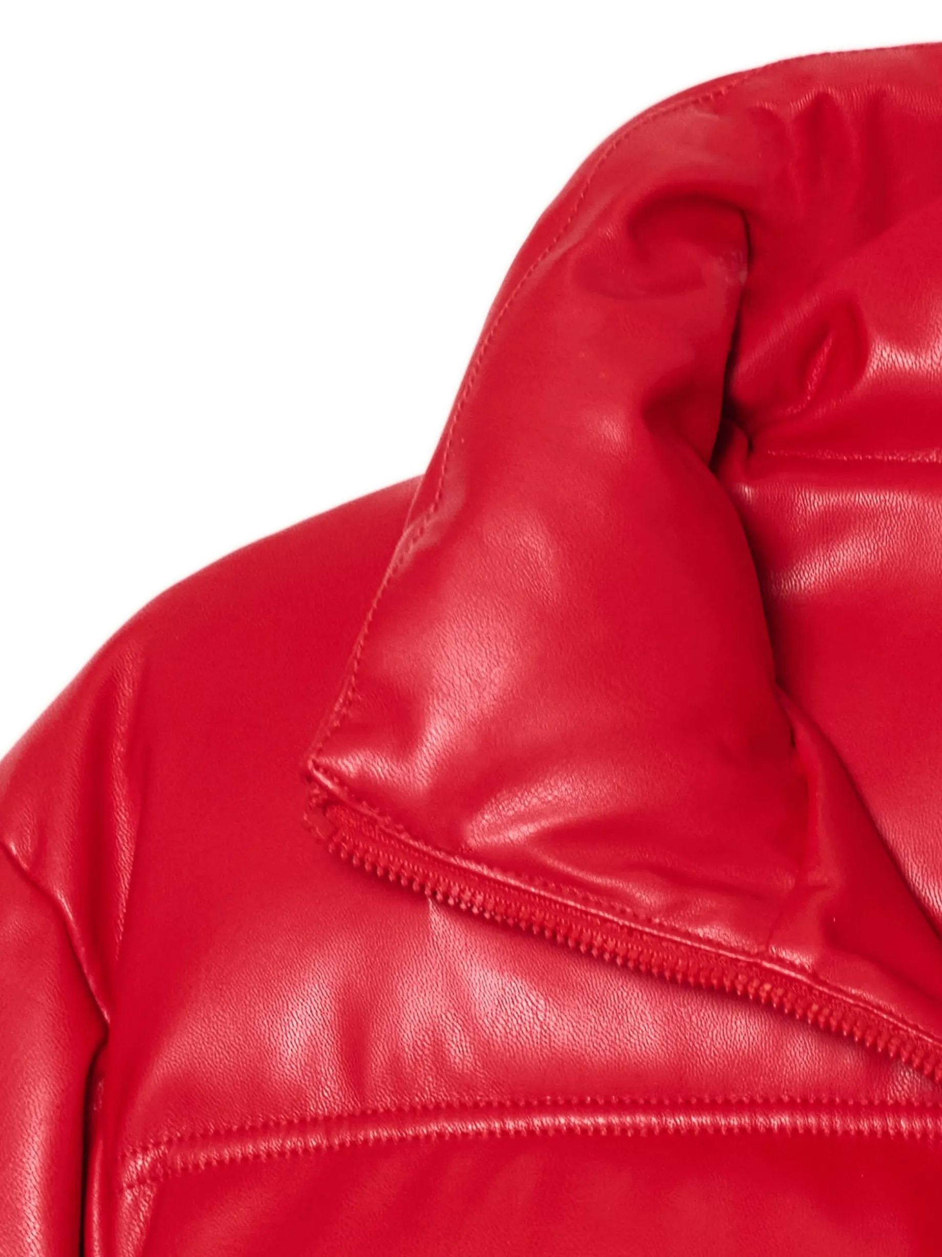 Czerwona kurtka puffer z efektem skóry